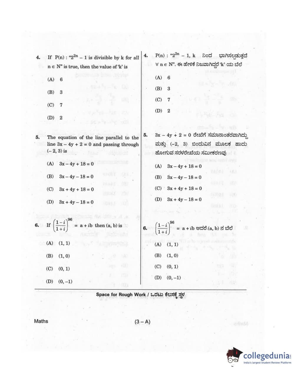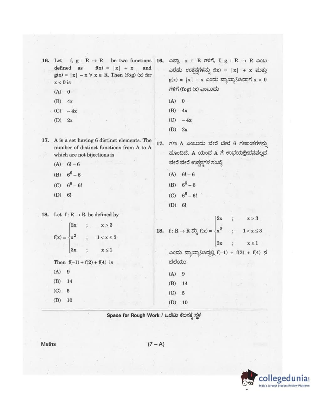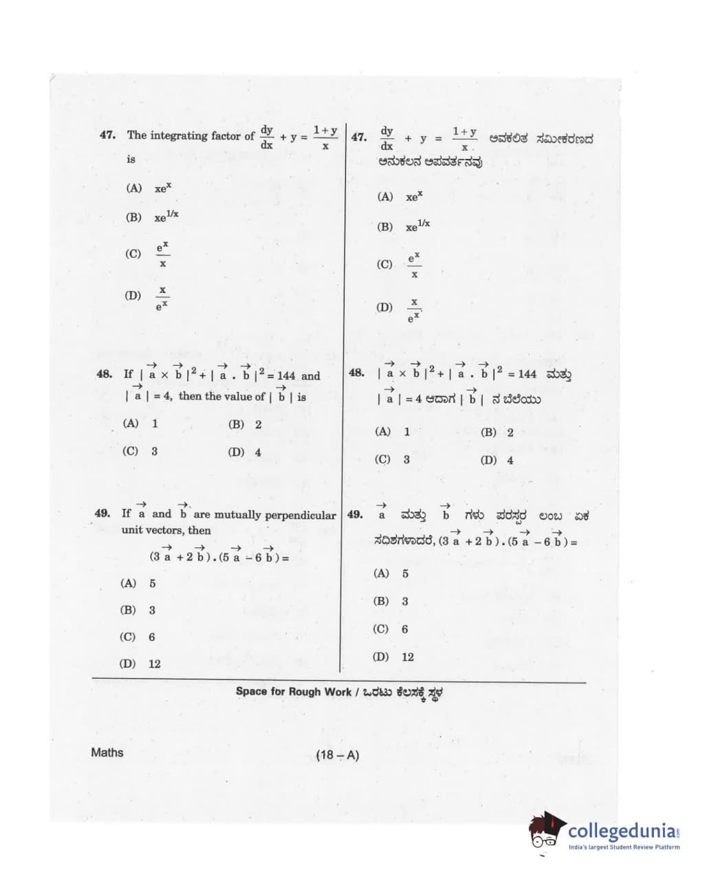 KCET 2018 Mathematics Question Paper with Answer Key PDF for Afternoon Session
