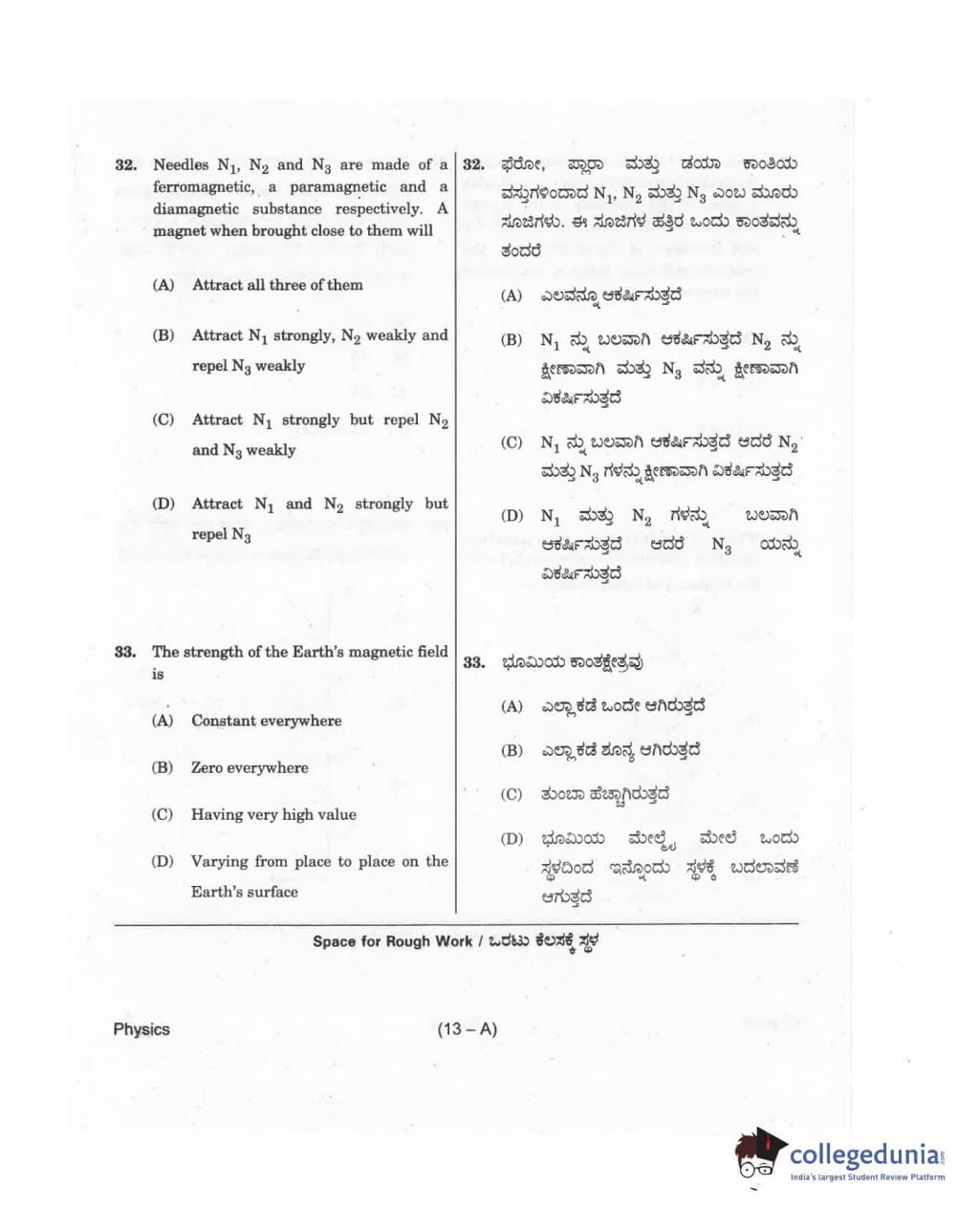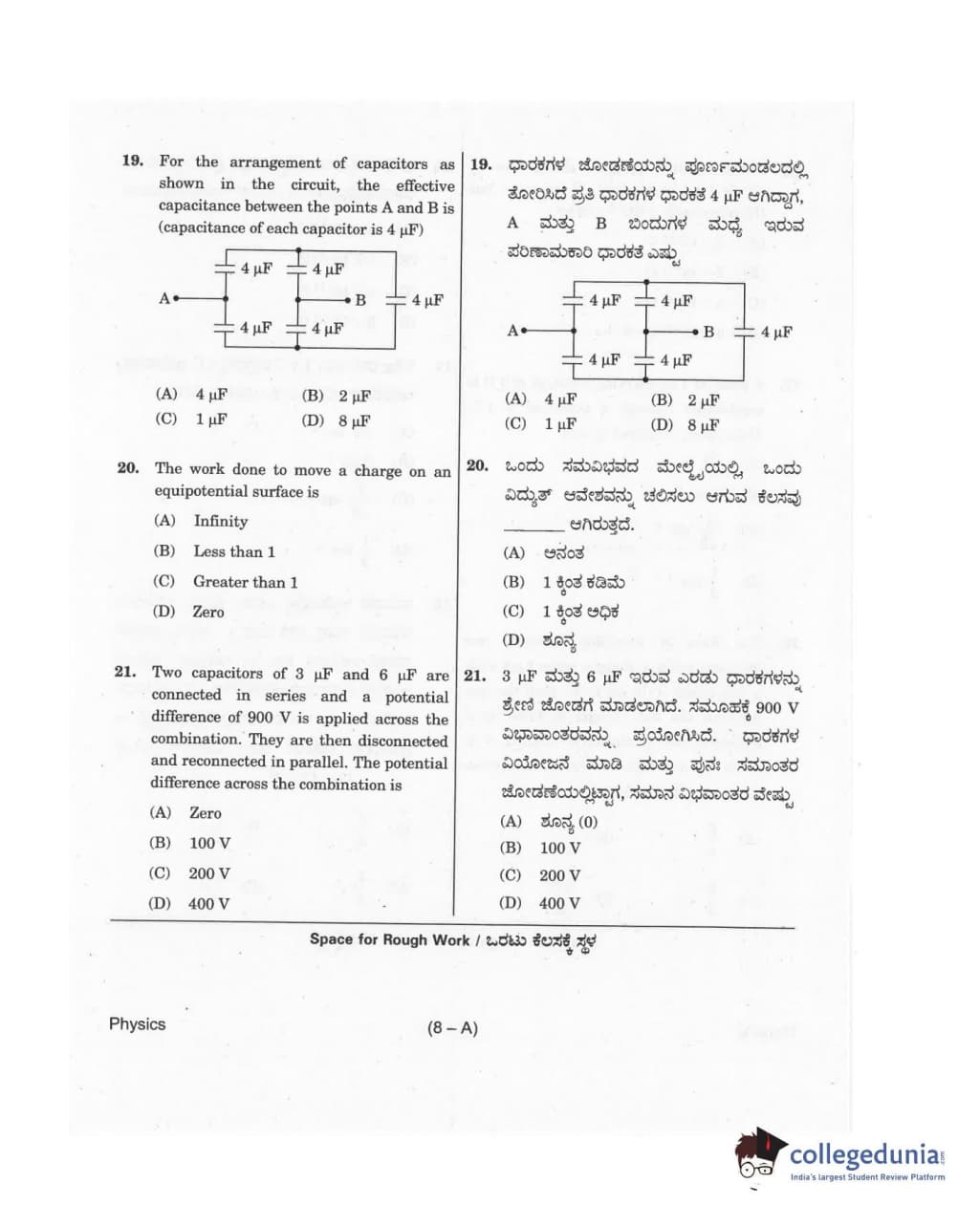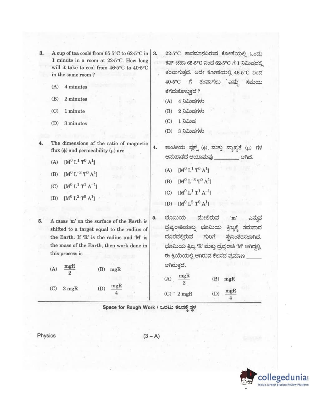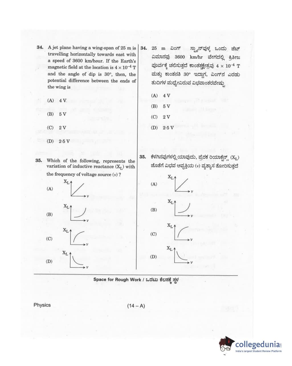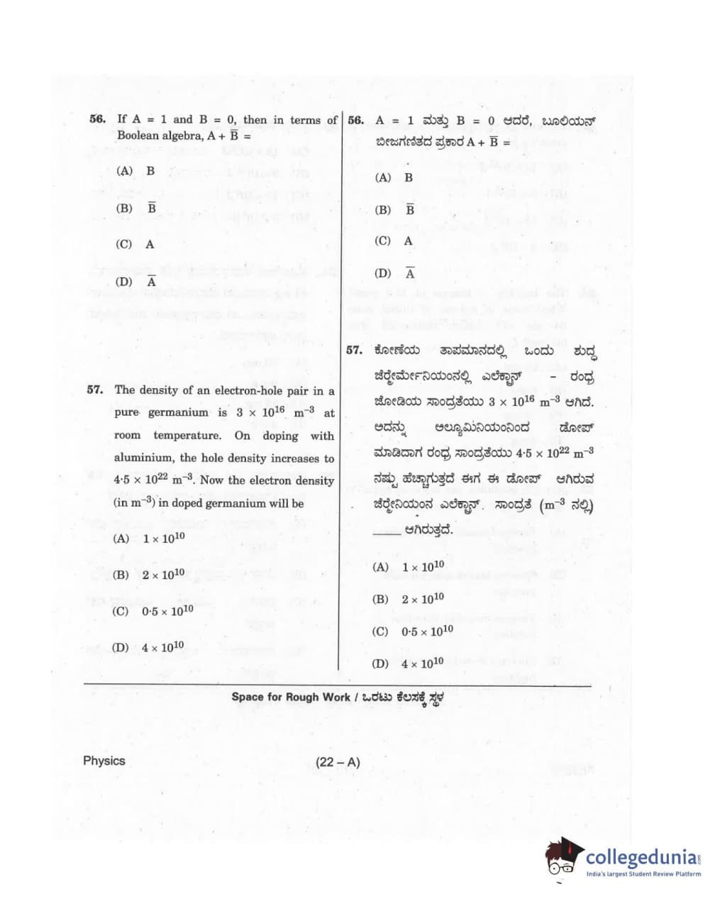 KCET 2018 Physics Question paper with answer key pdf conducted on April 19, 2018 in Morning Session 10:30 AM to 11:50 AM for A is available for download. The exam was successfully organized by Karnataka Examinations Authority (KEA). In terms of difficulty level, KCET was of Easy level. The question paper comprised a total of 60 questions.