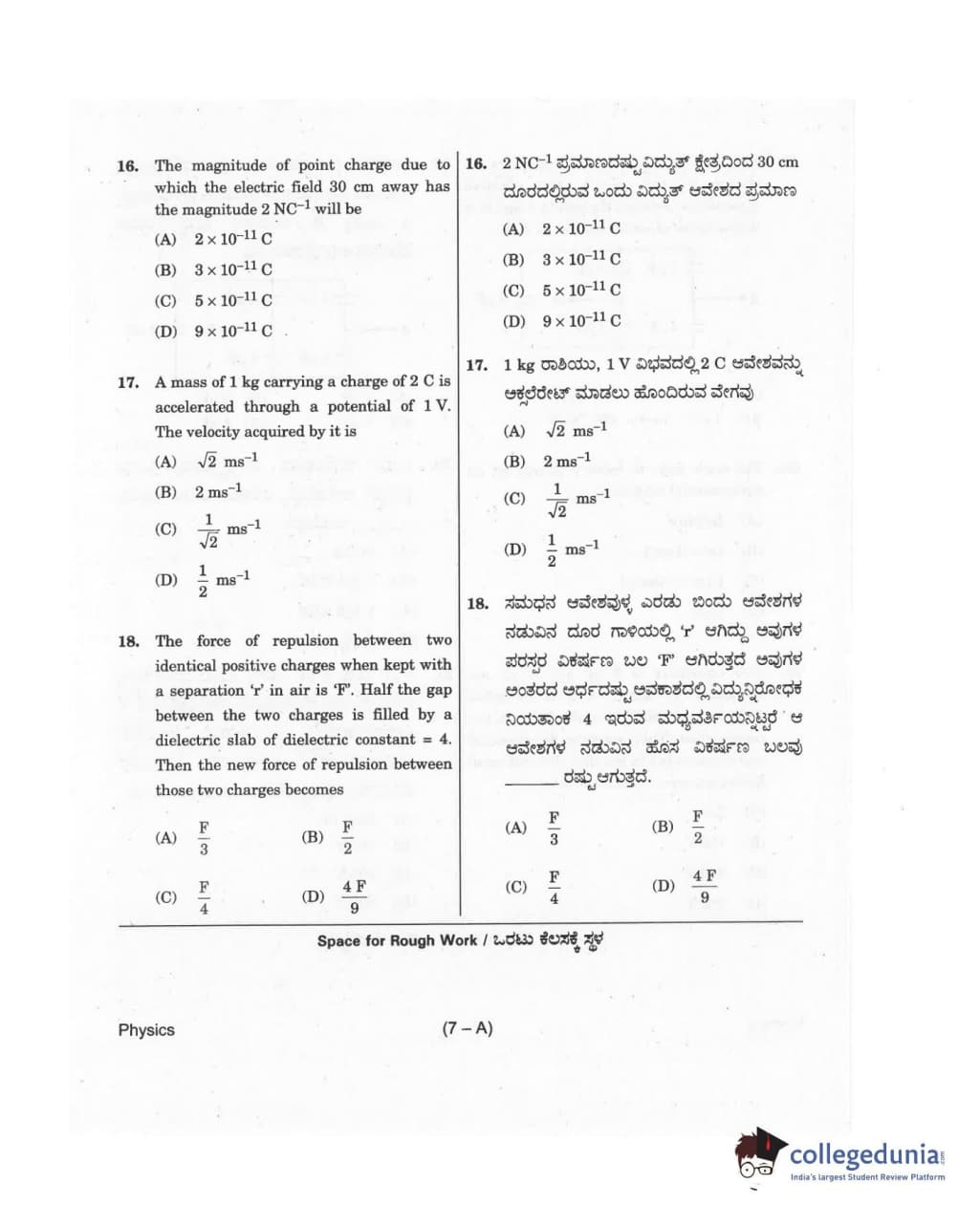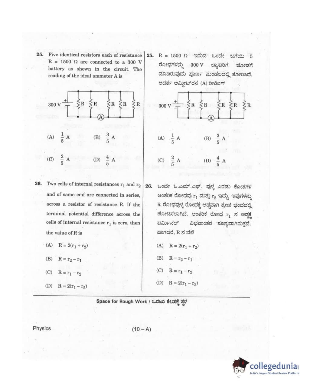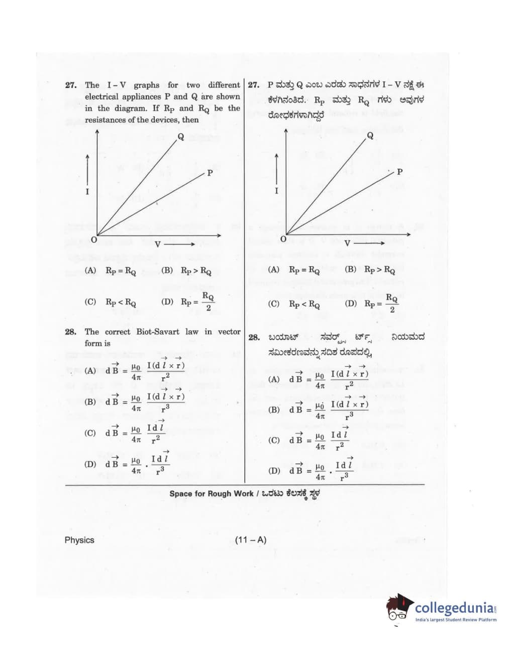 KCET 2018 Physics Question Paper with Answer Key PDF for Morning Session