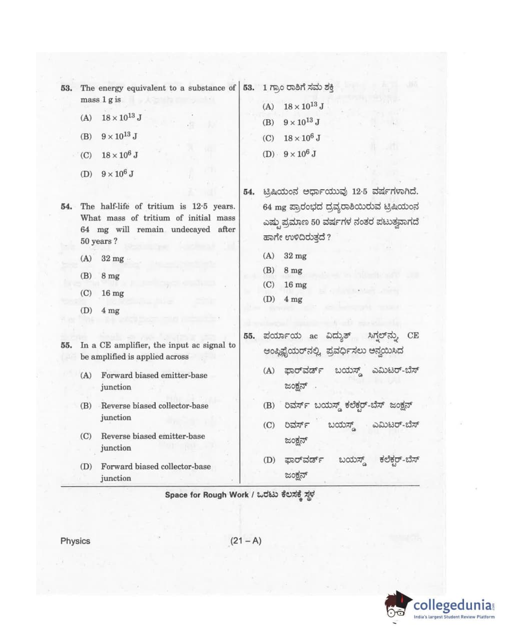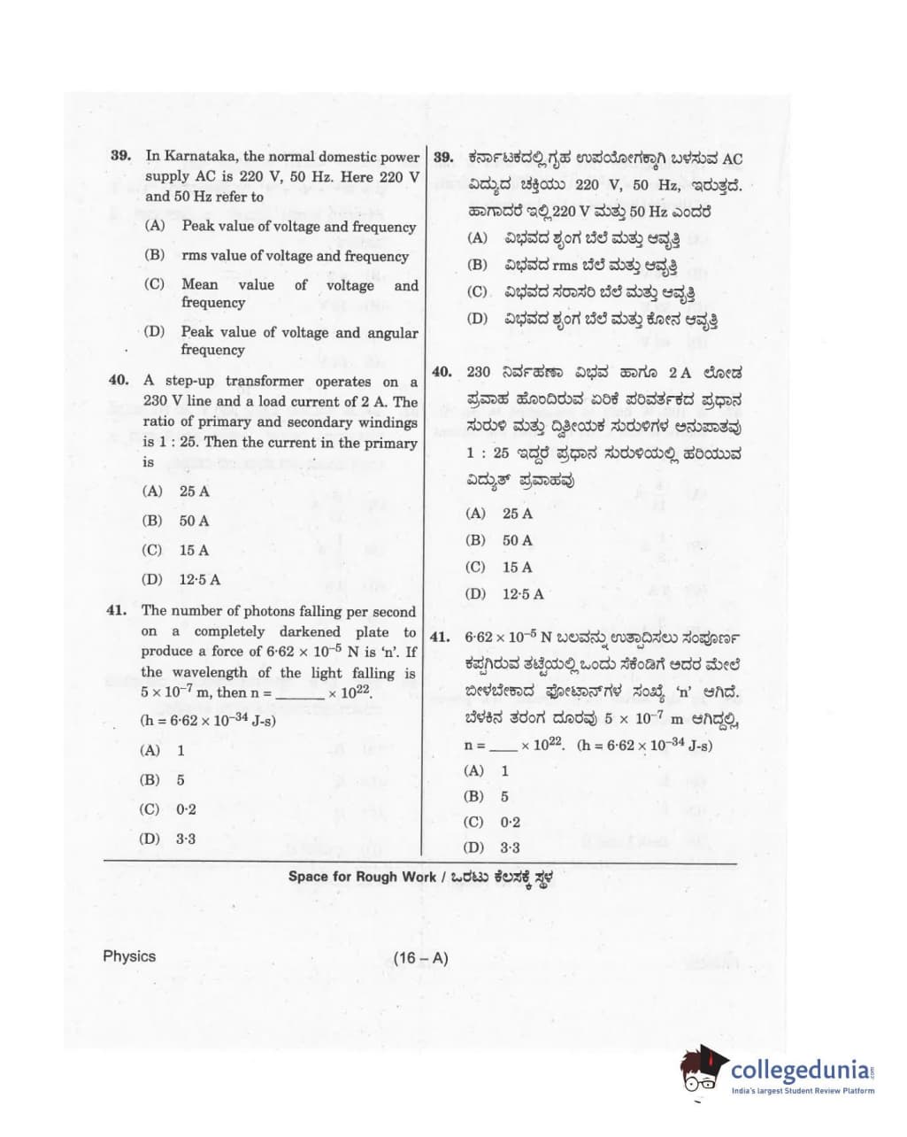 Collegedunia has provided KCET Previous Year Question paper pdf with answer key in the links given below: