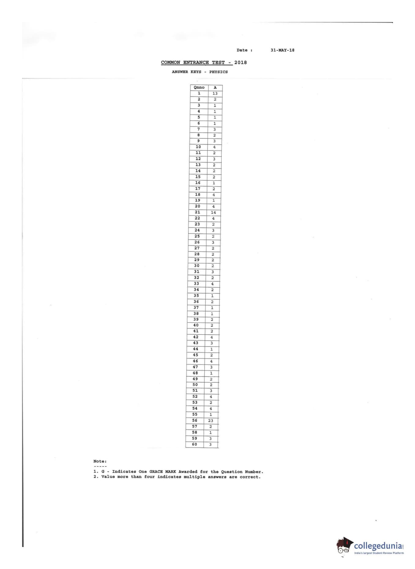 | KCET 2018 Physics Question Paper PDF | KCET 2018 Physics Answer Key PDF |