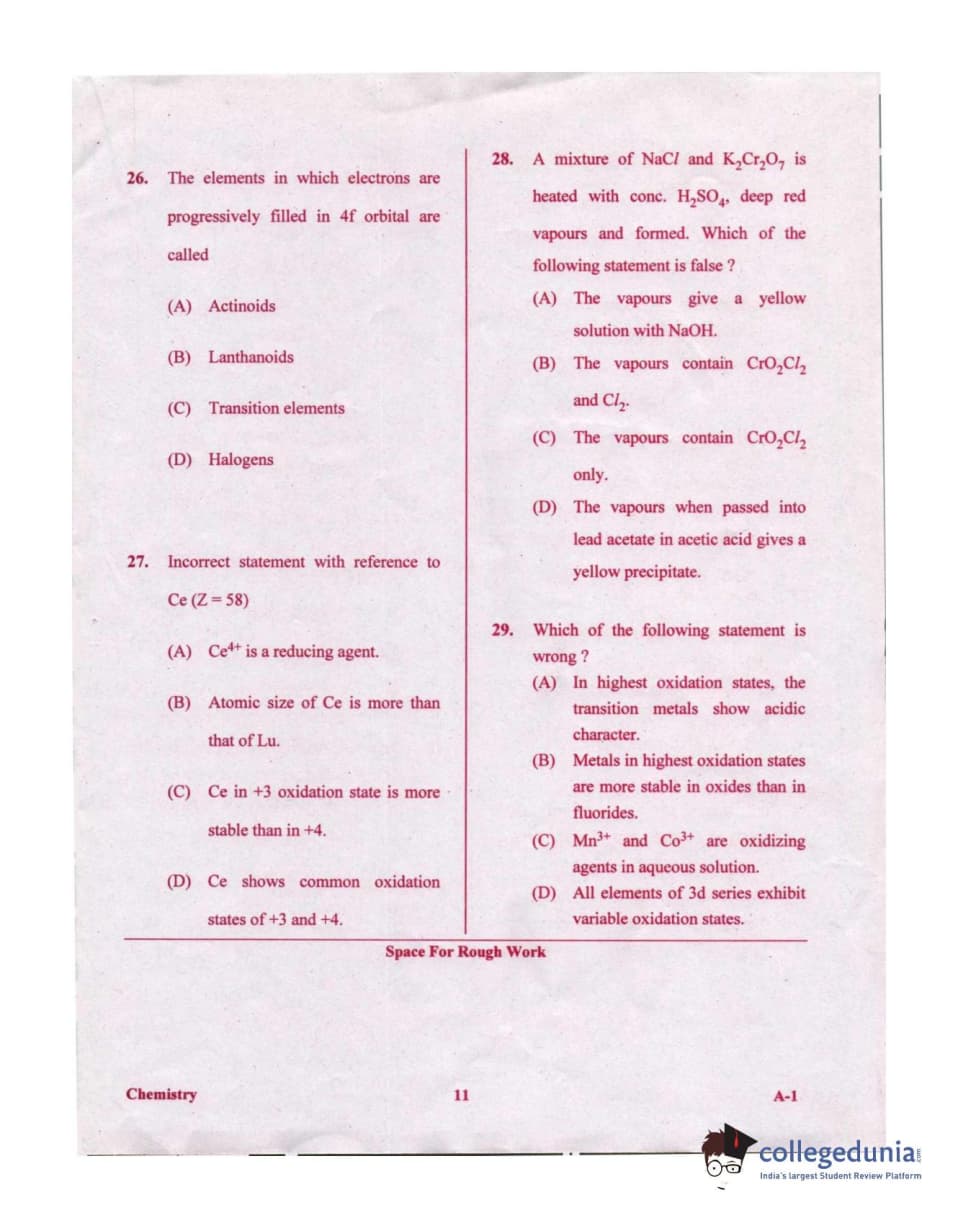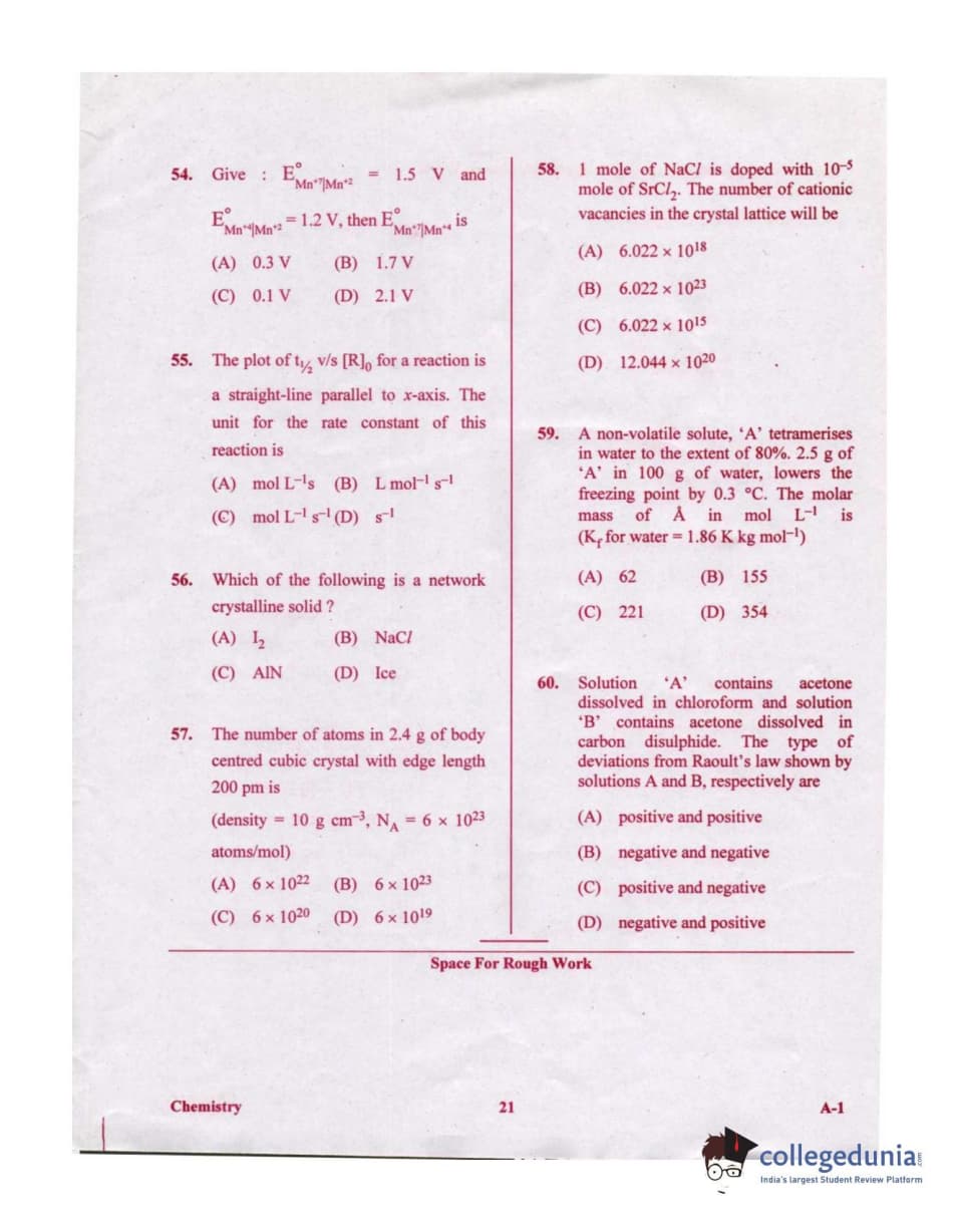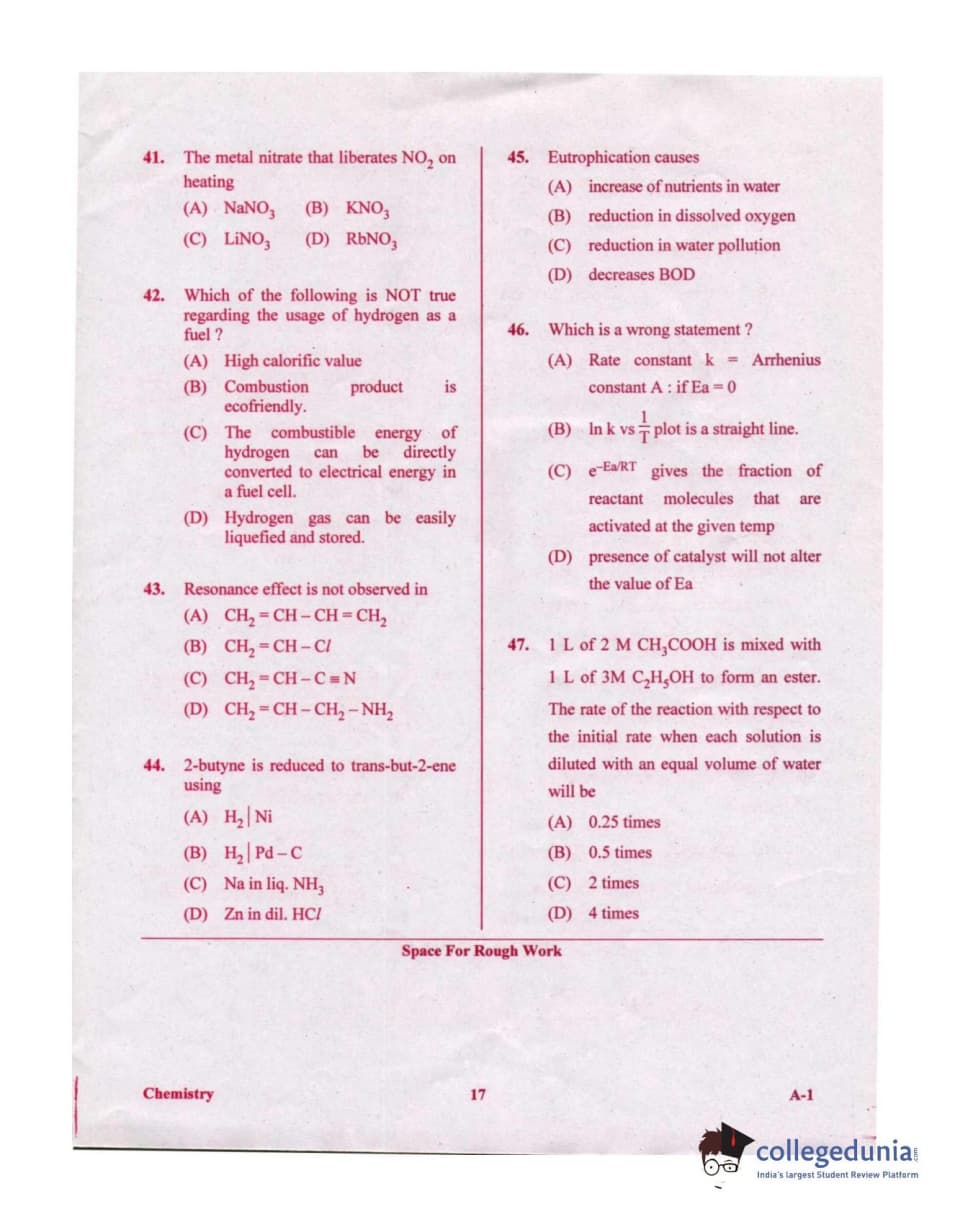 KCET 2019 Chemistry Question paper with answer key pdf conducted on April 30, 2019 in Afternoon Session 2:30 PM to 3:50 PM for A-1 is available for download. The exam was successfully organized by Karnataka Examinations Authority (KEA). In terms of difficulty level, KCET was of Moderate level. The question paper comprised a total of 60 questions.