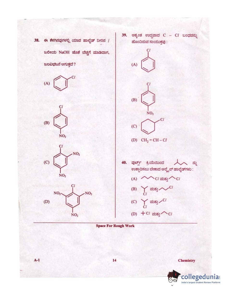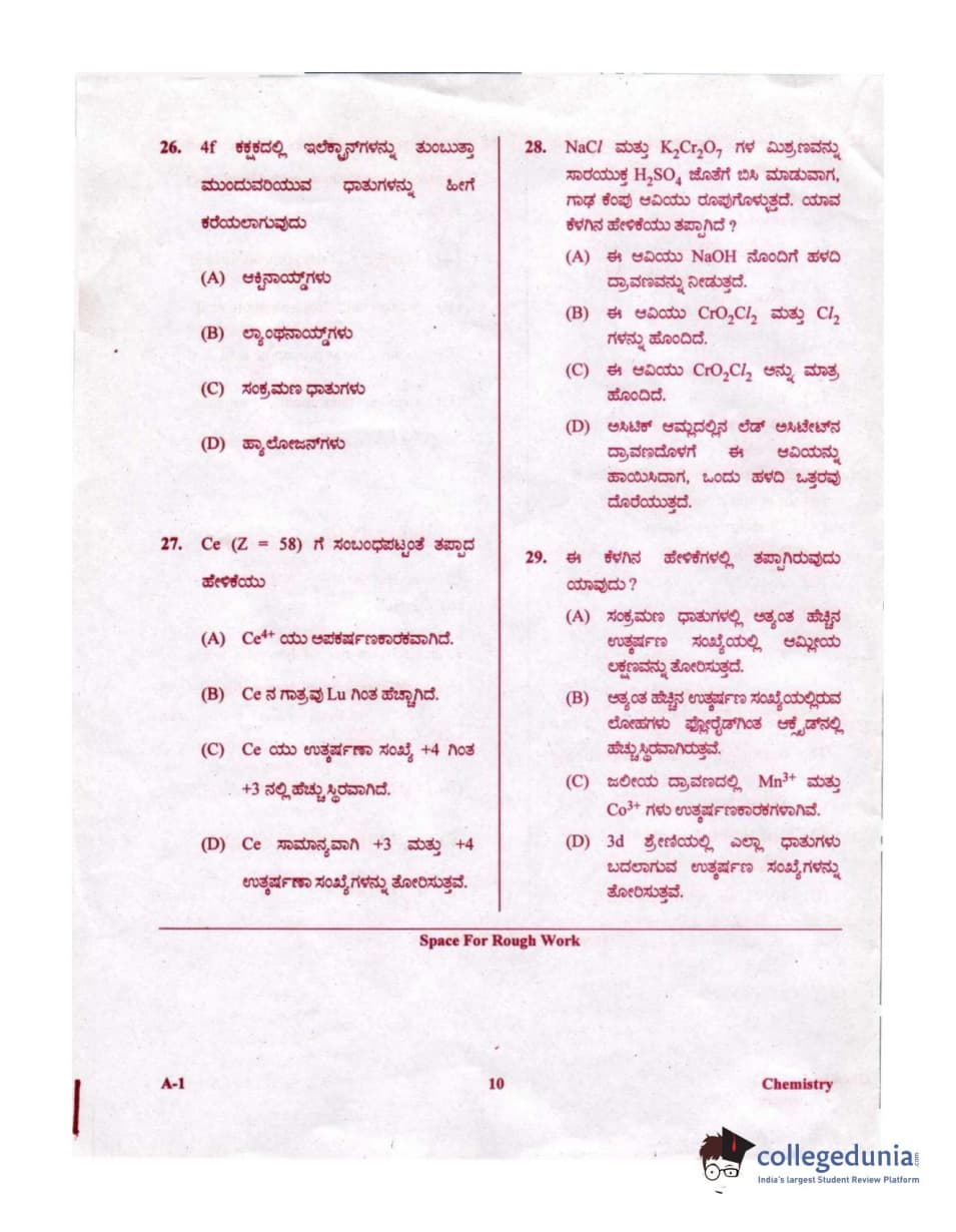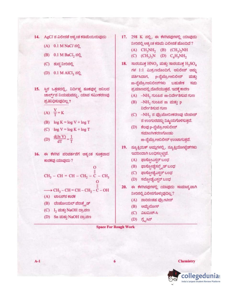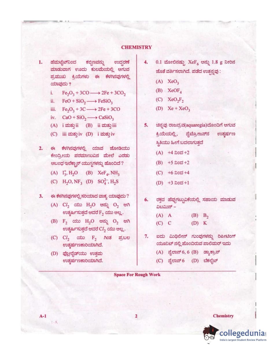 KCET 2019 Chemistry Question Paper with Answer Key PDF for Afternoon Session