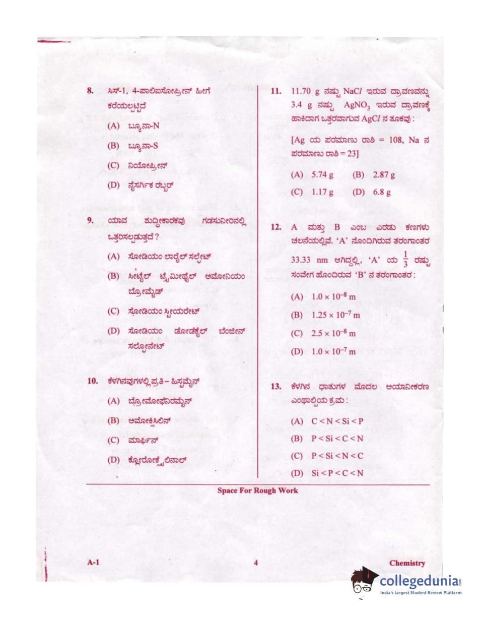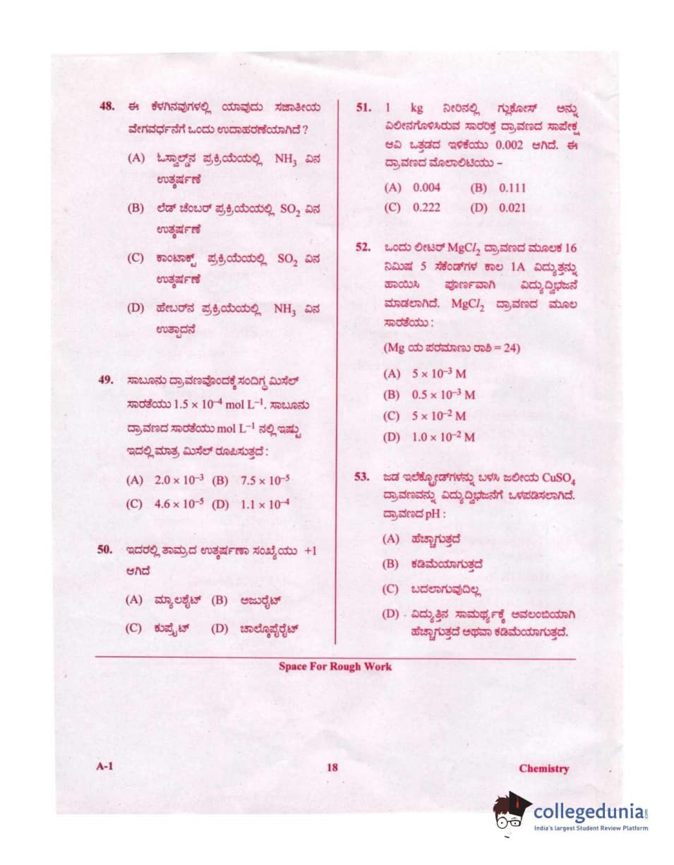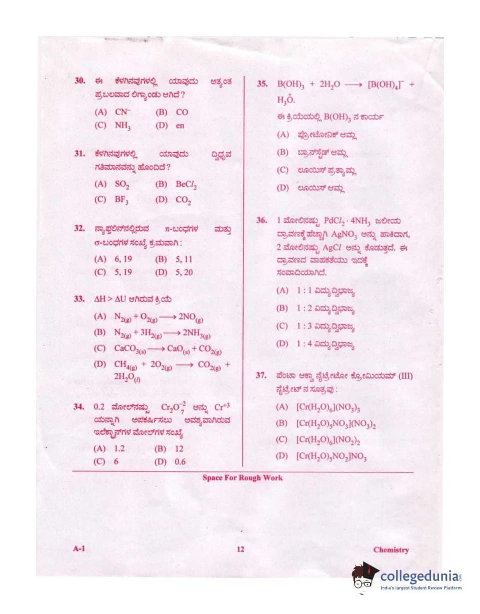 KCET 2019 Chemistry Question Paper with Answer Key PDF for Afternoon Session
