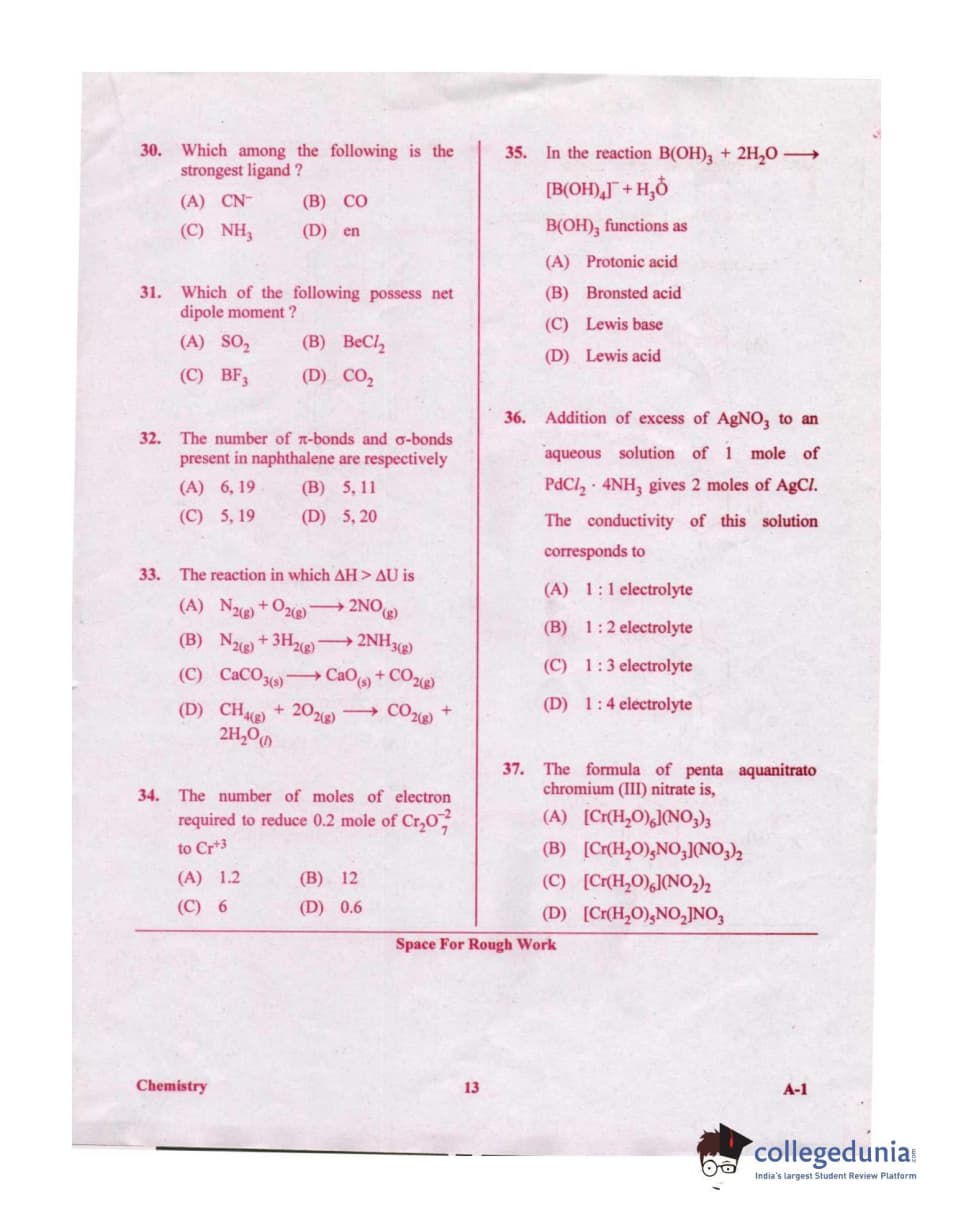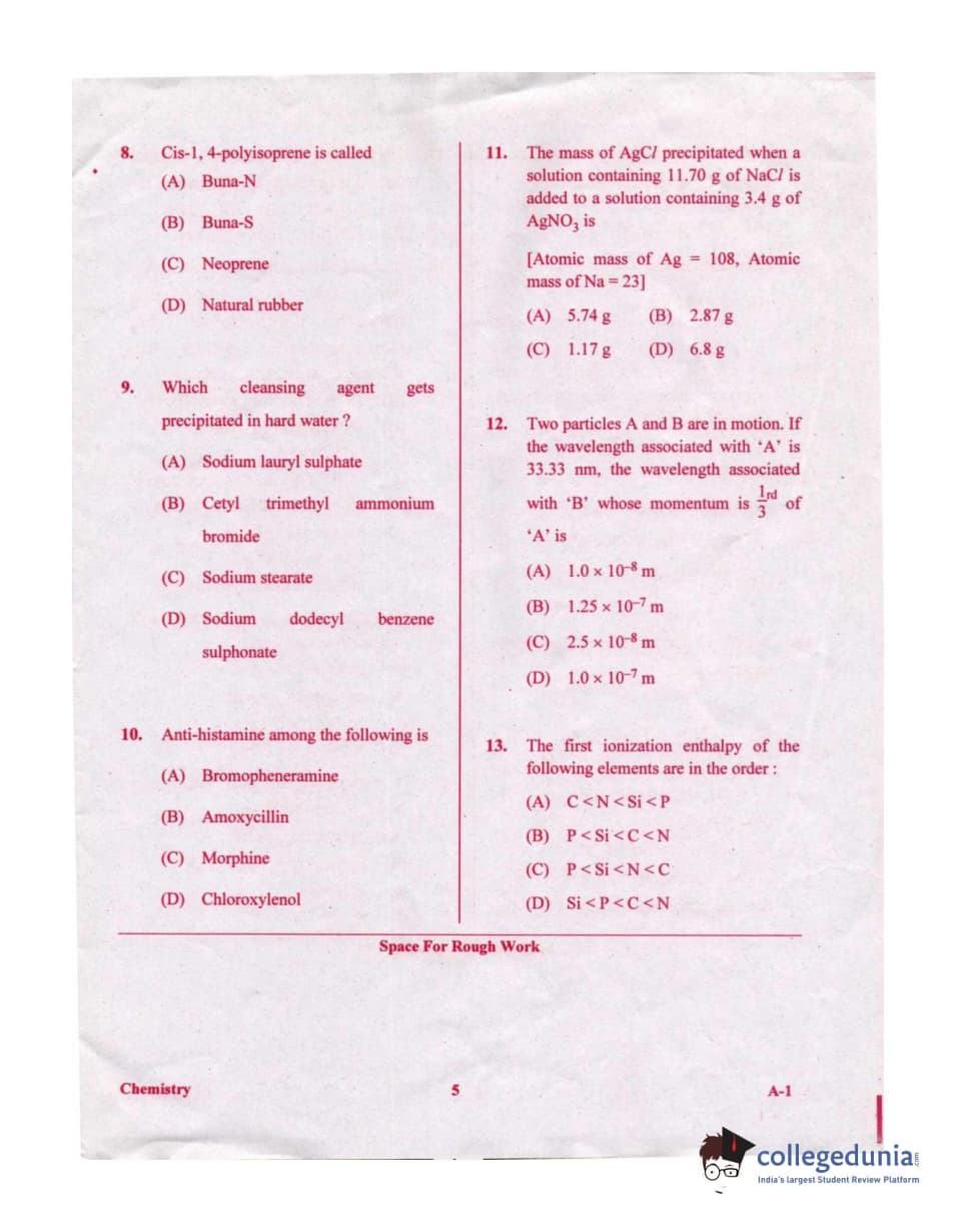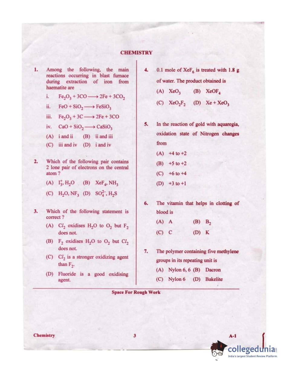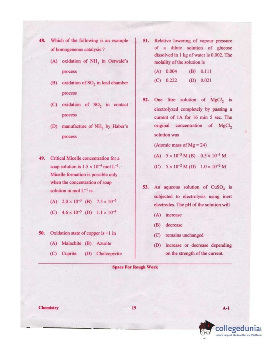 KCET 2019 Chemistry Question Paper with Answer Key PDF for Afternoon Session