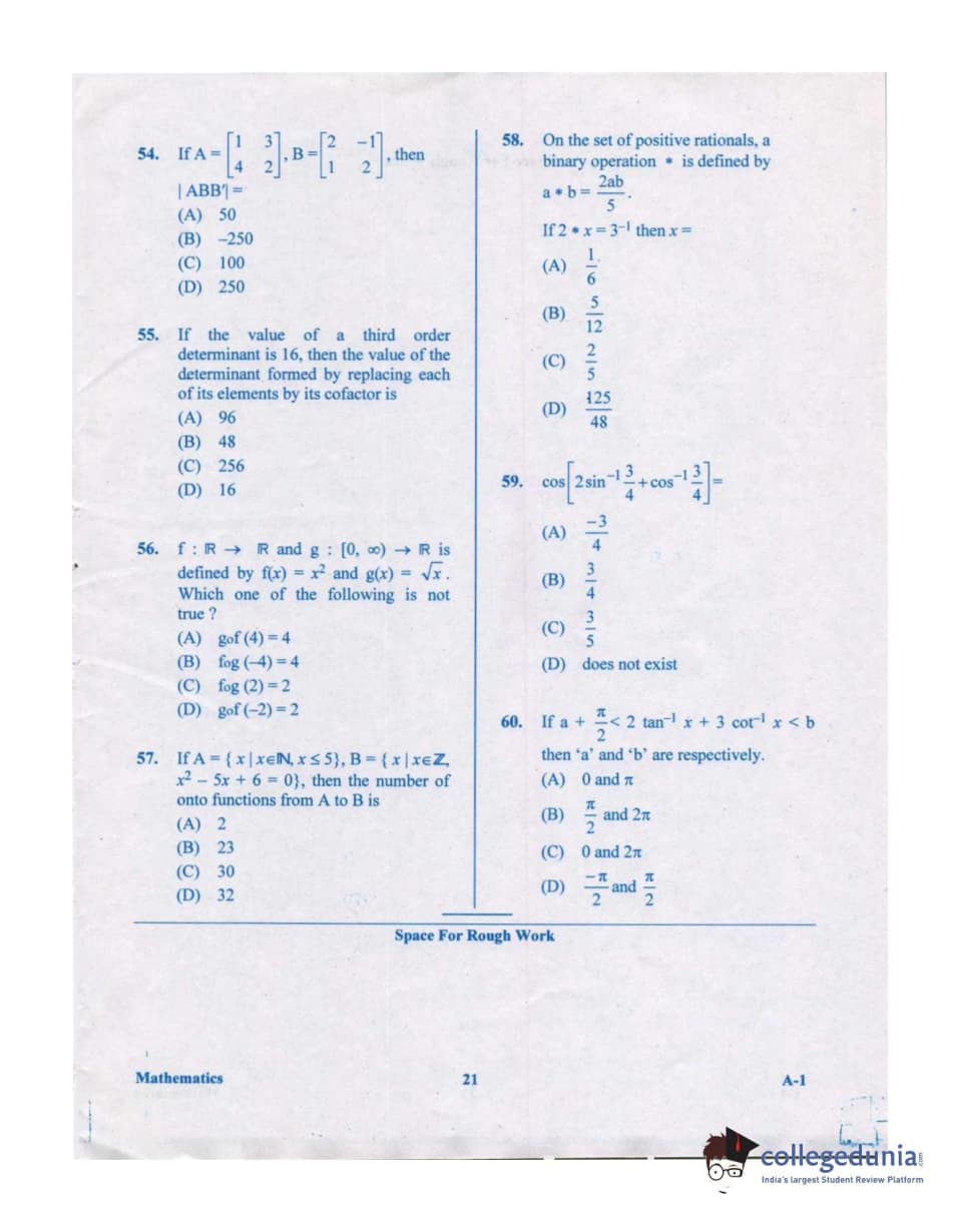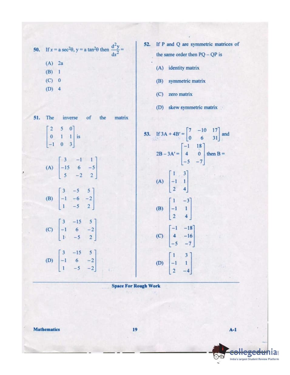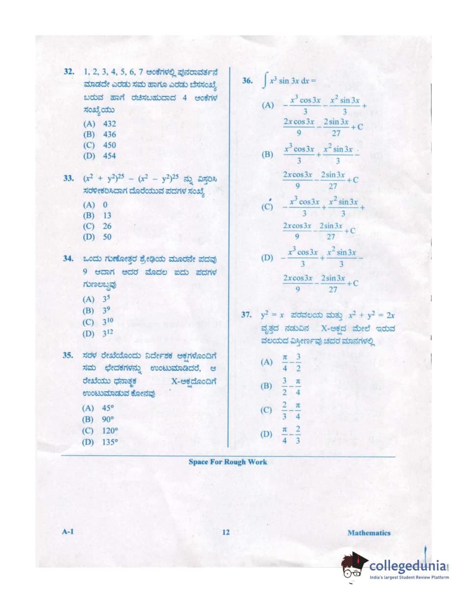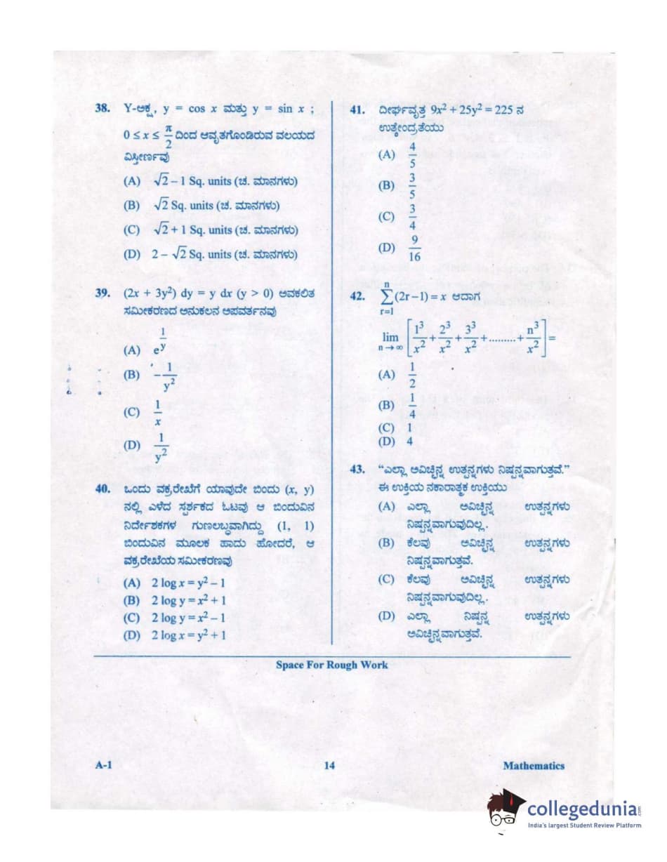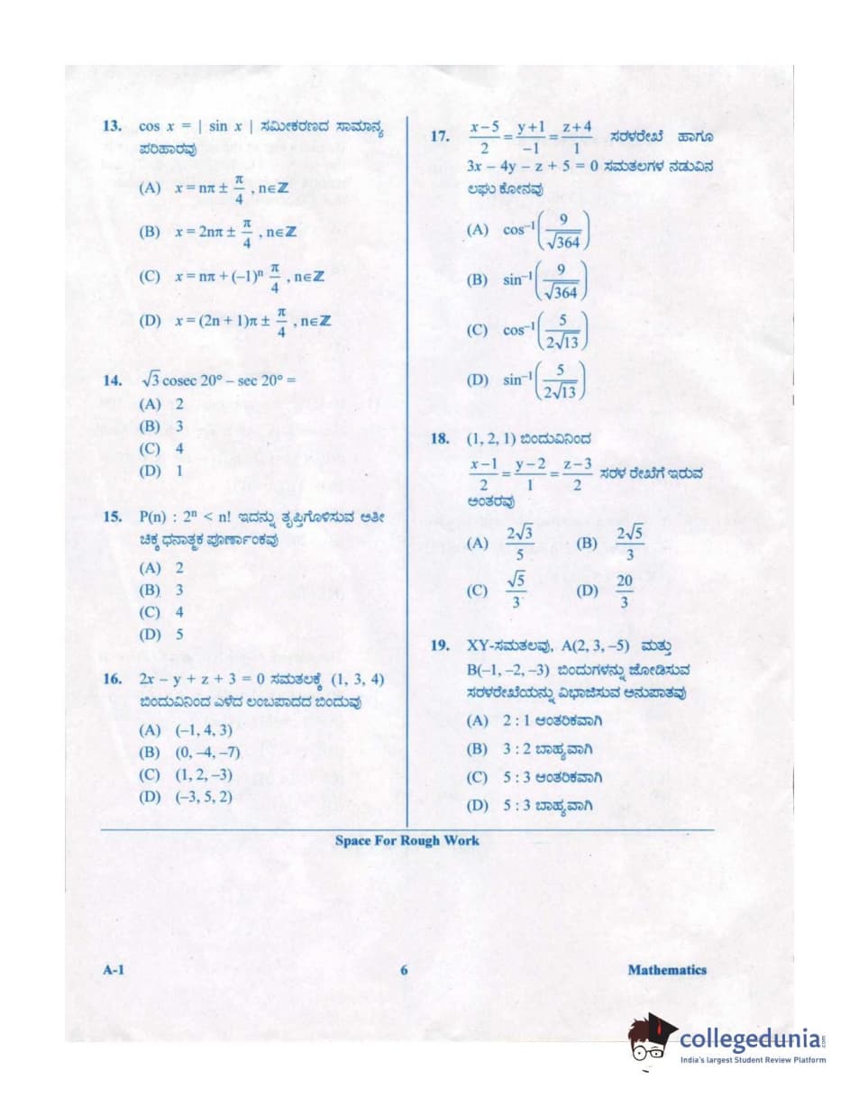 KCET 2019 Mathematics Question paper with answer key pdf conducted on April 29, 2019 in Afternoon Session 2:30 PM to 3:50 PM for A-1 is available for download. The exam was successfully organized by Karnataka Examinations Authority (KEA). In terms of difficulty level, KCET was of Moderate level. The question paper comprised a total of 60 questions.