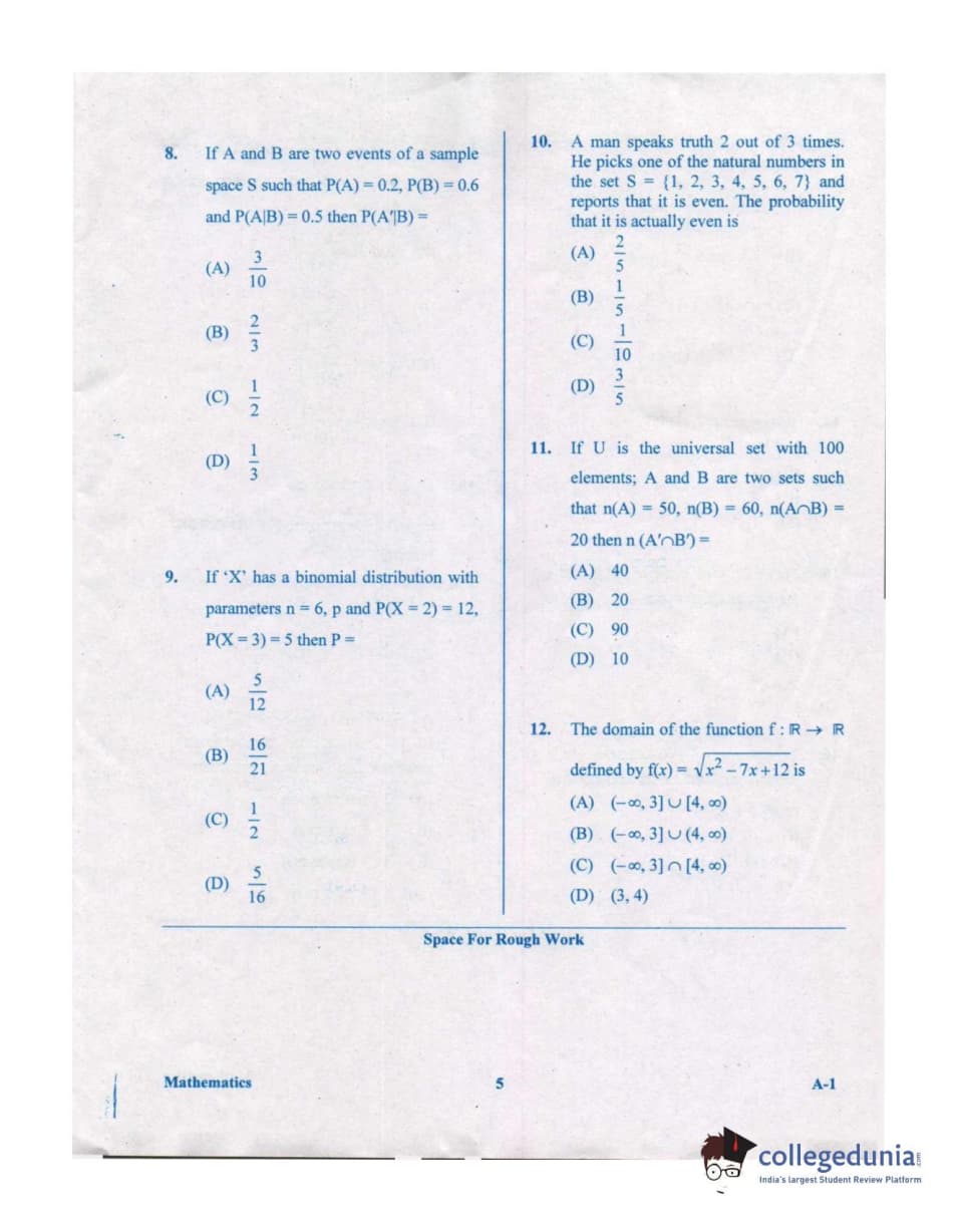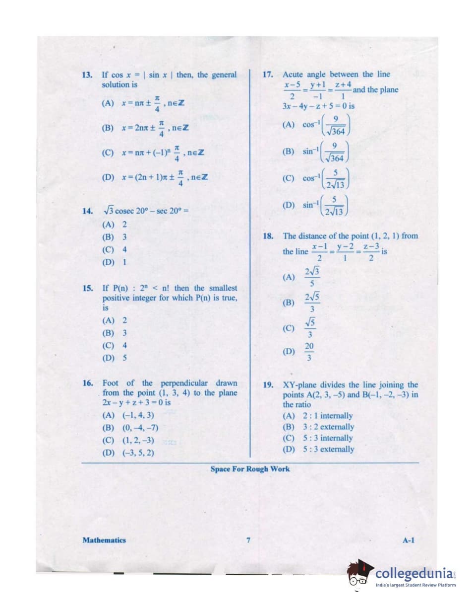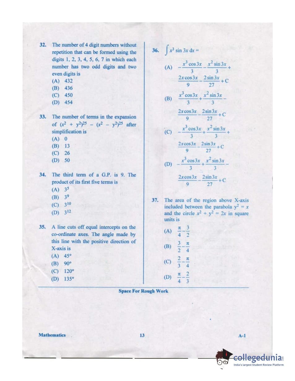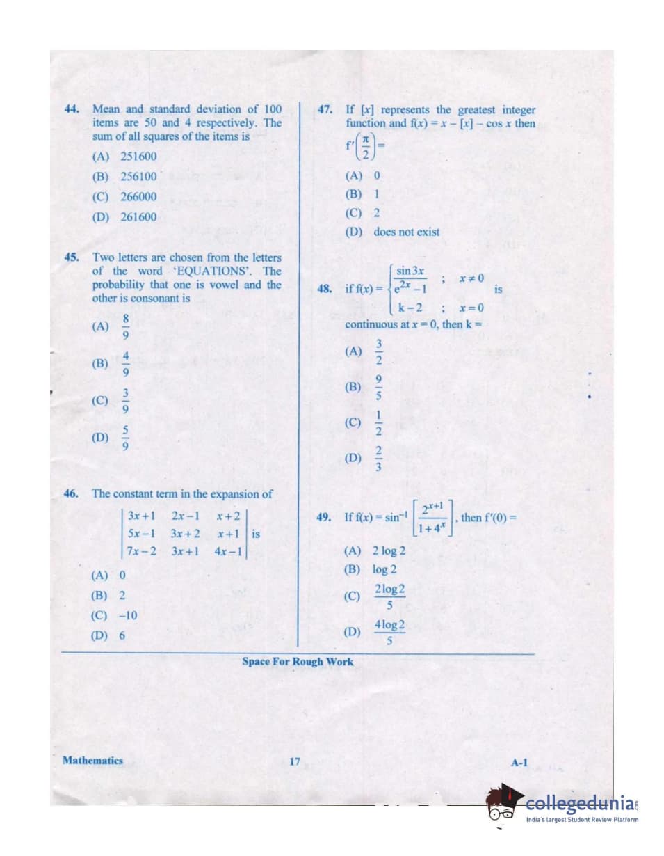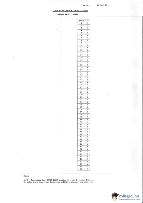 KCET 2019 Mathematics Question paper with answer key pdf conducted on April 29, 2019 in Afternoon Session 2:30 PM to 3:50 PM for A-1 is available for download. The exam was successfully organized by Karnataka Examinations Authority (KEA). In terms of difficulty level, KCET was of Moderate level. The question paper comprised a total of 60 questions.