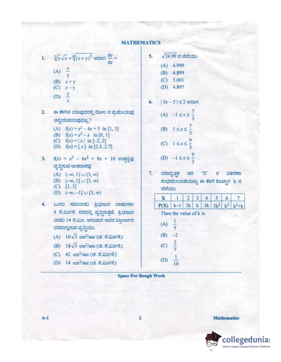 Collegedunia has provided KCET Previous Year Question paper pdf with answer key in the links given below: