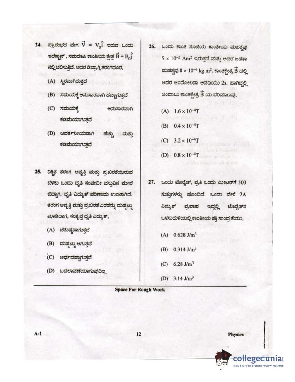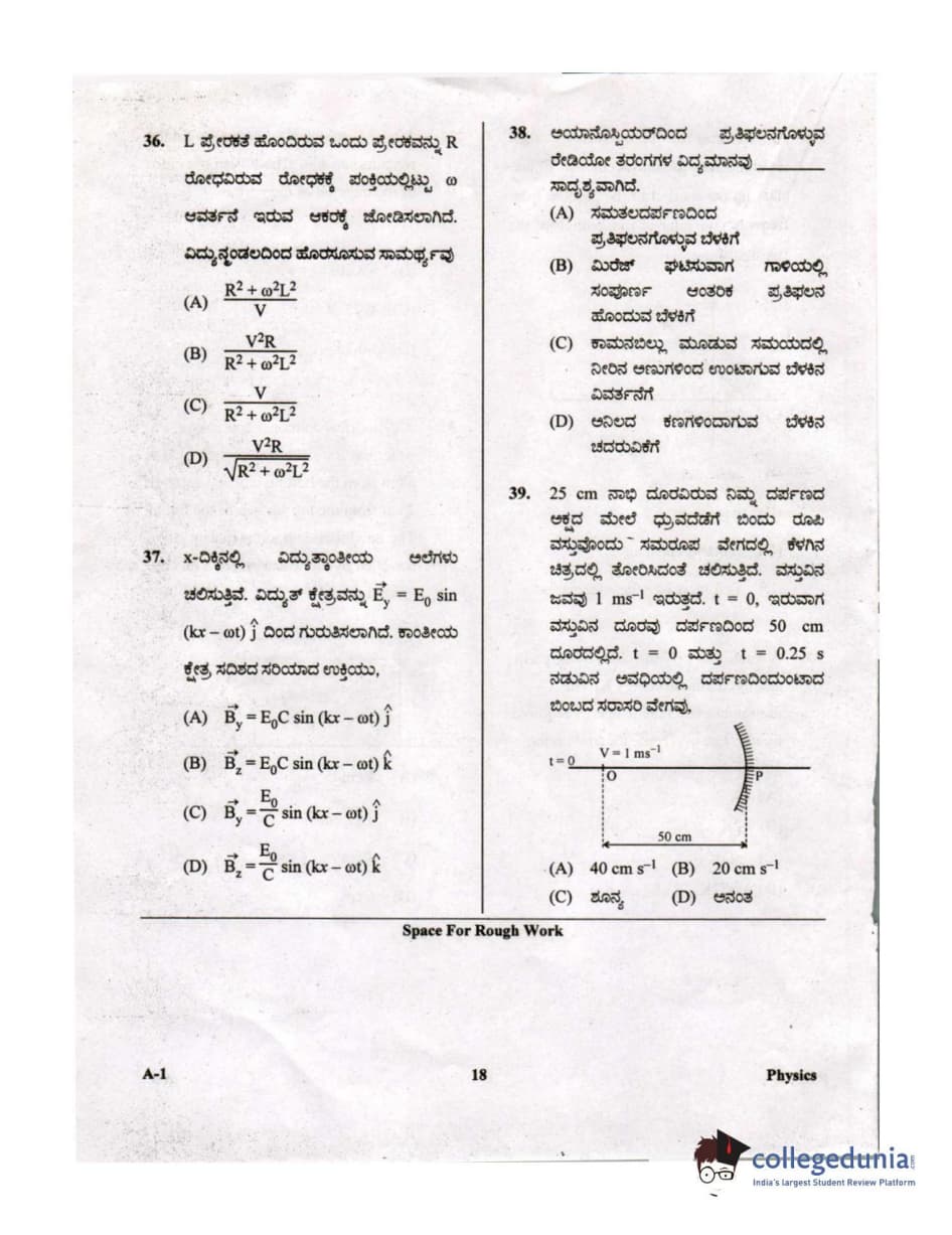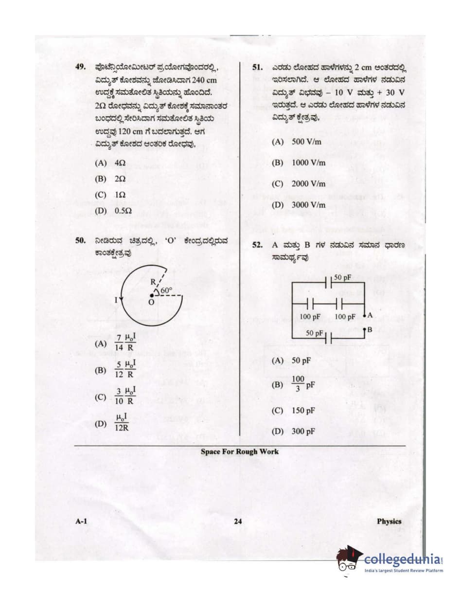 KCET 2019 Physics Question Paper with Answer Key PDF for Morning Session