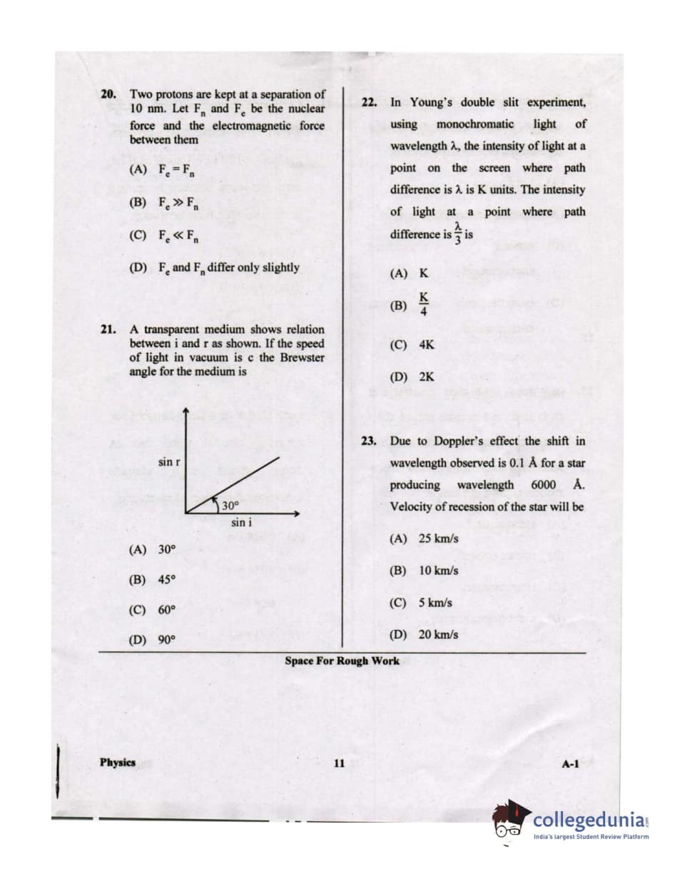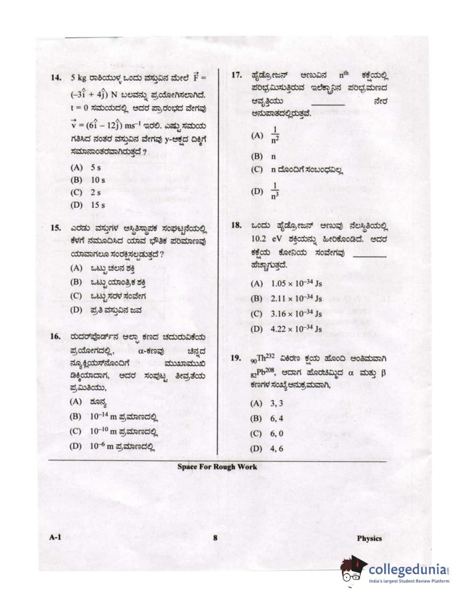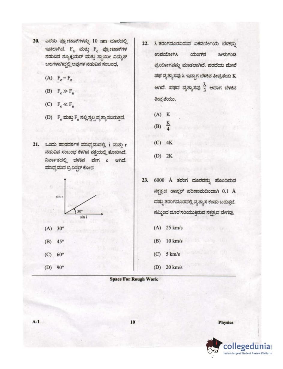 KCET 2019 Physics Question Paper with Answer Key PDF for Morning Session