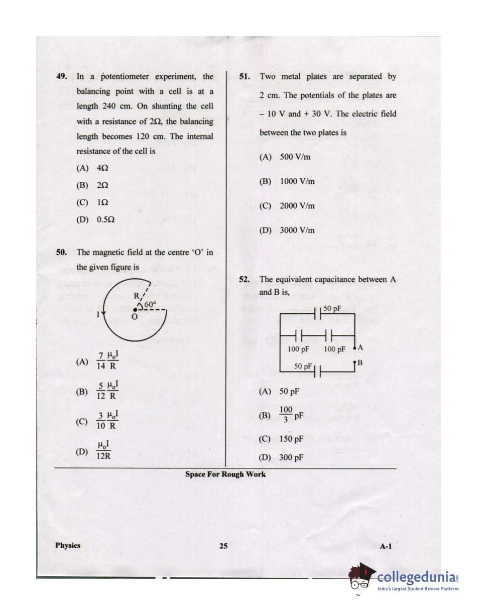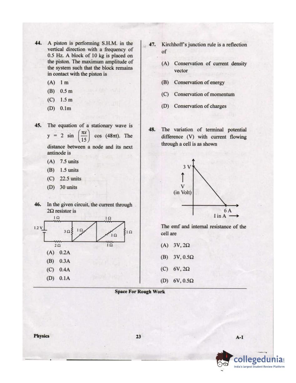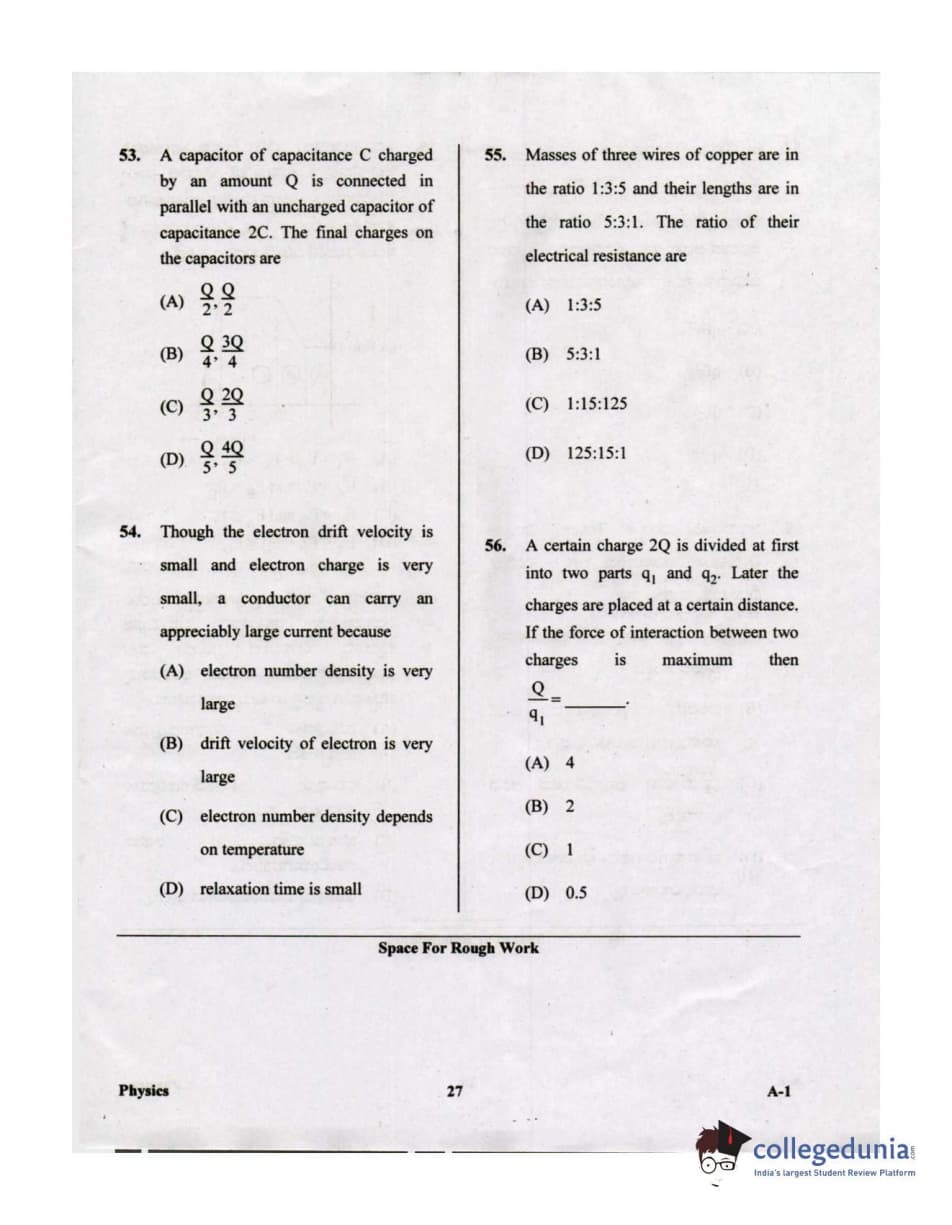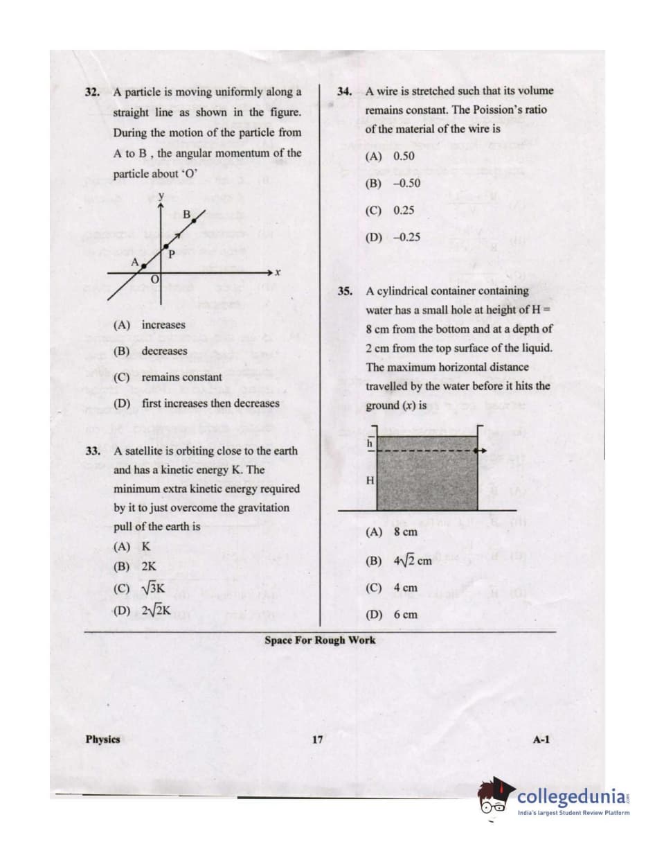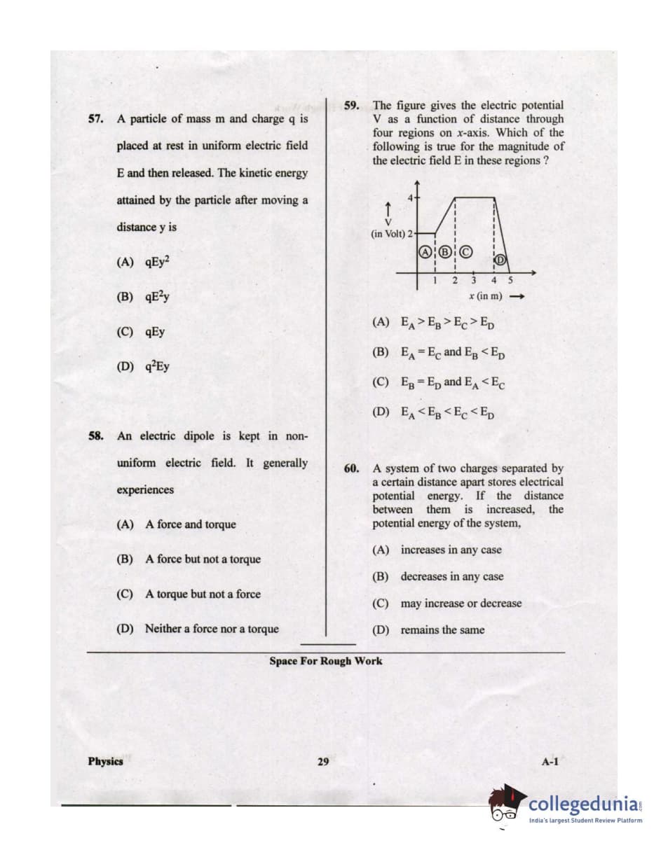 KCET 2019 Physics Question paper with answer key pdf conducted on April 30, 2019 in Morning Session 10:30 AM to 11:50 AM for A-1 is available for download. The exam was successfully organized by Karnataka Examinations Authority (KEA). In terms of difficulty level, KCET was of Moderate level. The question paper comprised a total of 60 questions.