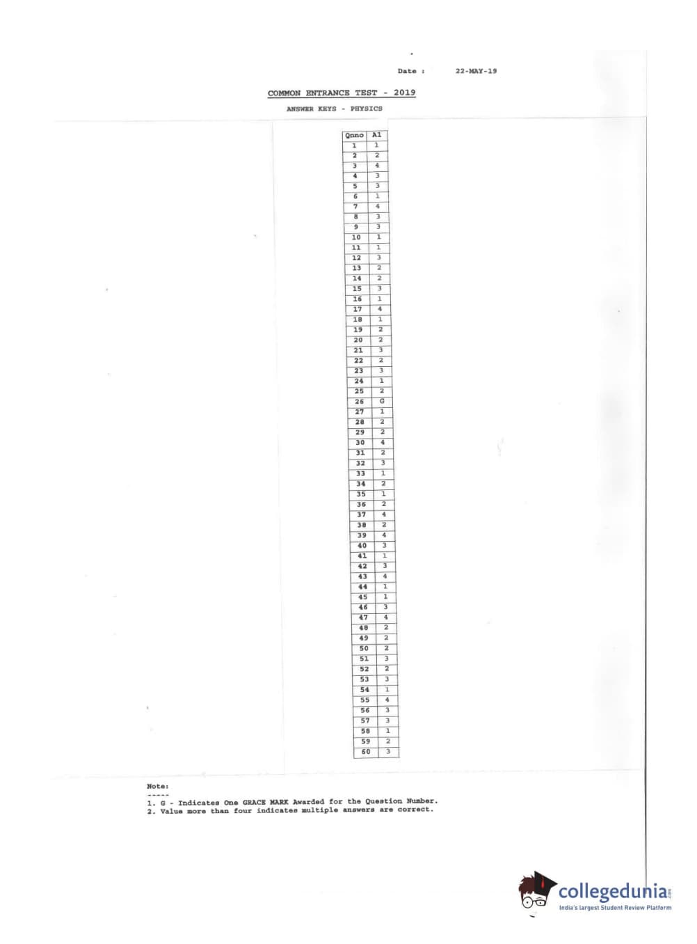| KCET 2019 Physics Question Paper PDF | KCET 2019 Physics Answer Key PDF |