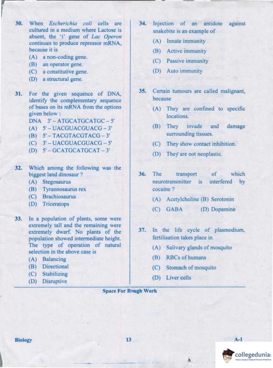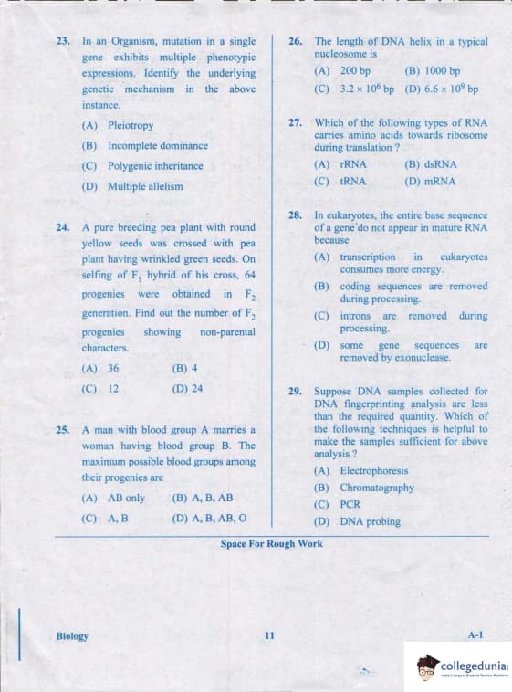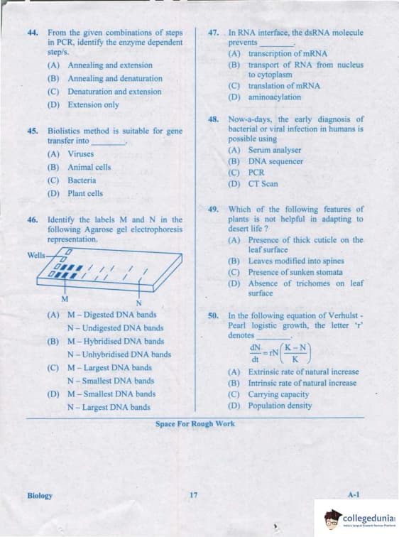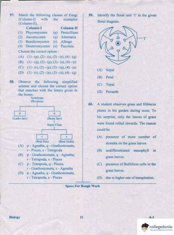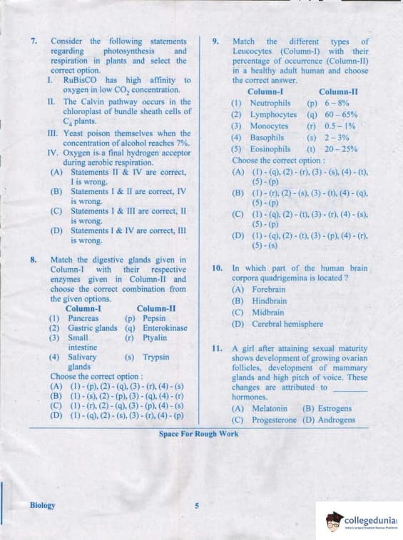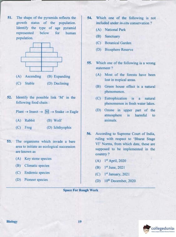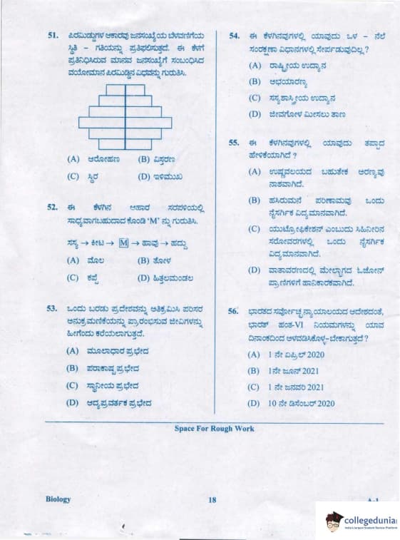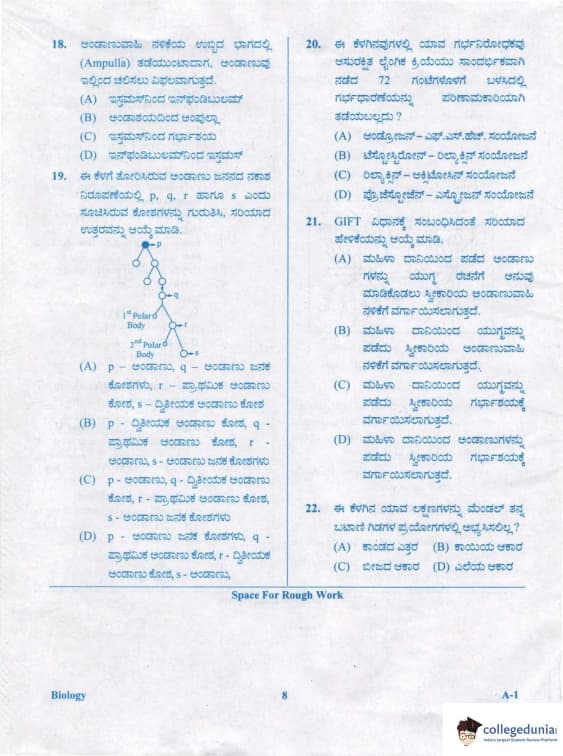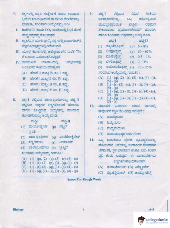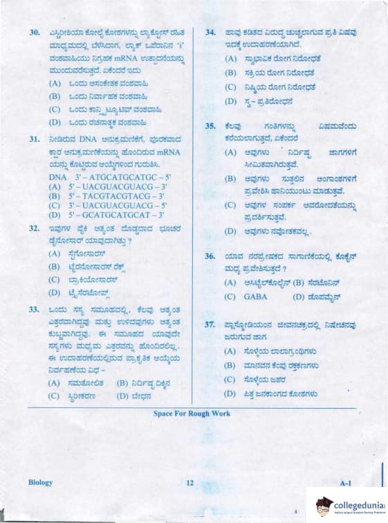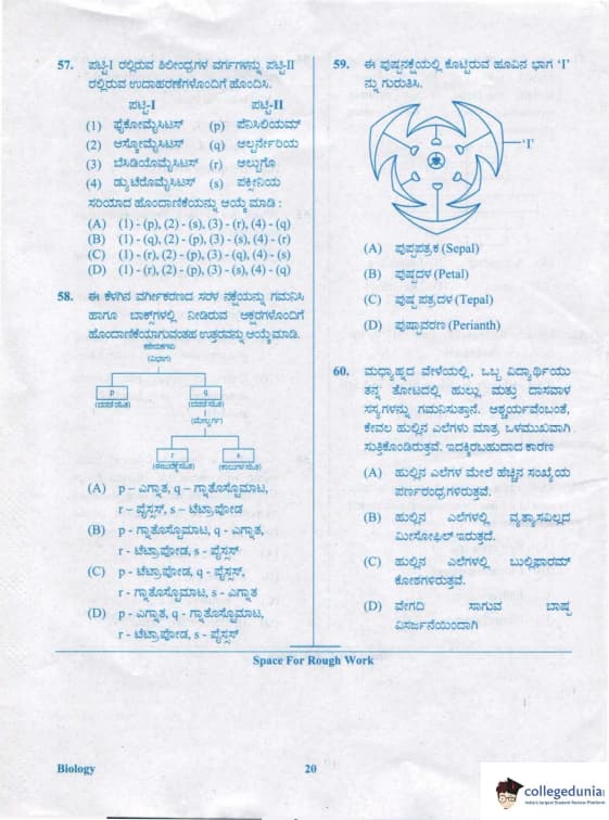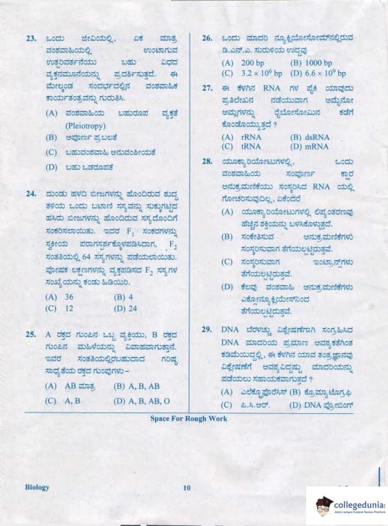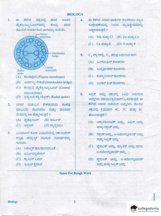 KCET 2020 Biology Question Paper with Answer Key PDFs Morning Session