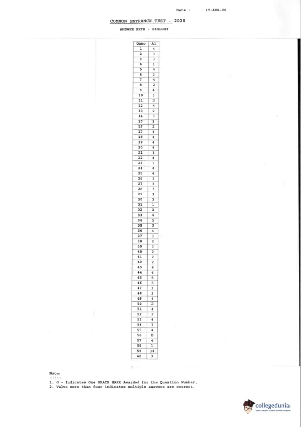 | KCET 2020 Biology Question Paper PDF | KCET 2020 Biology Answer Key PDF |