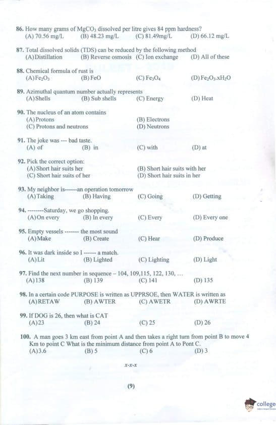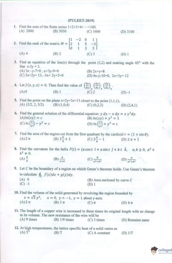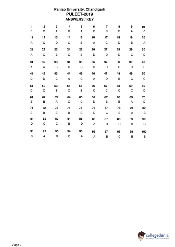 PULEET 2019 Question paper with answer key pdf conducted on July 14, 2019 is available for download. The exam was successfully organized by Panjab University. The question paper comprised a total of 100 questions.