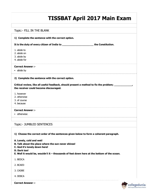 | TISS BAT 2017 Question Paper PDF | TISS BAT 2017 Answer Key PDF |