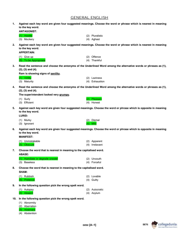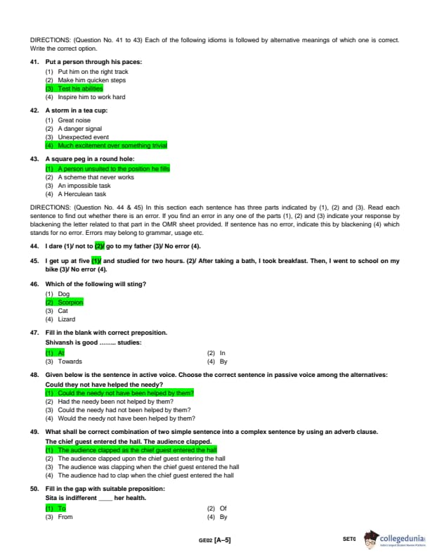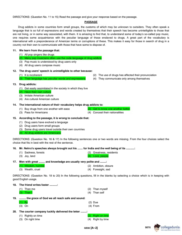 ACJ Entrance Exam 2018 Question Paper with Answer Key PDFs