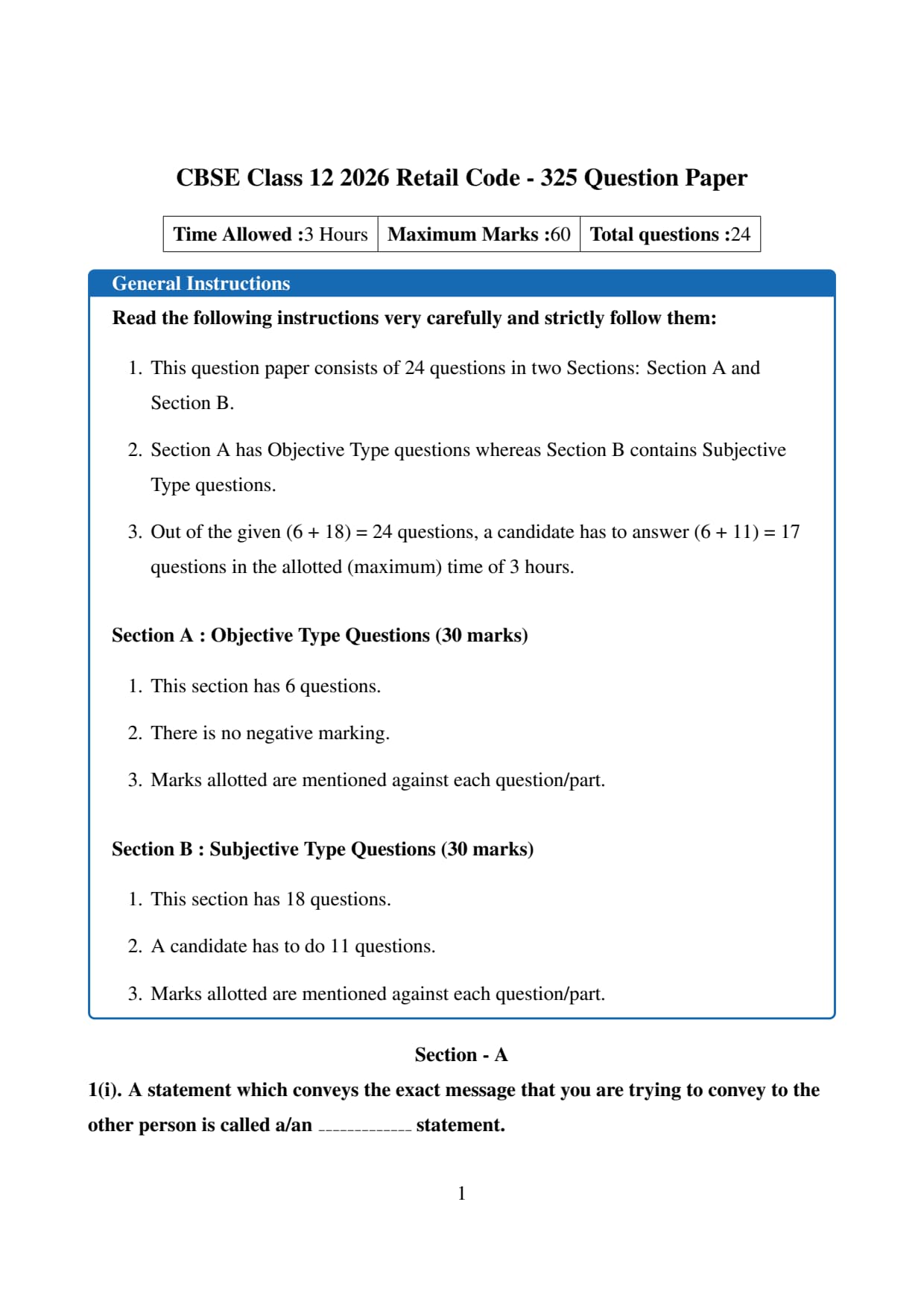 | CBSE Class 12 Retail Question Paper 2026 | Download PDF | Check Solution |