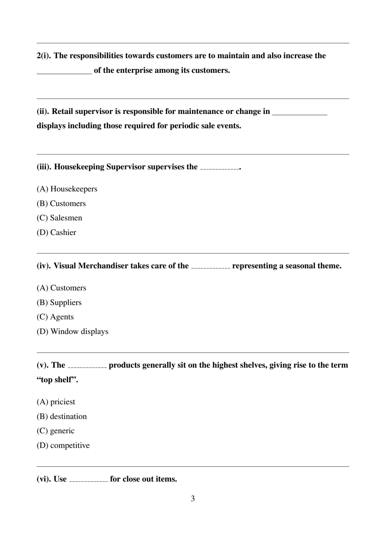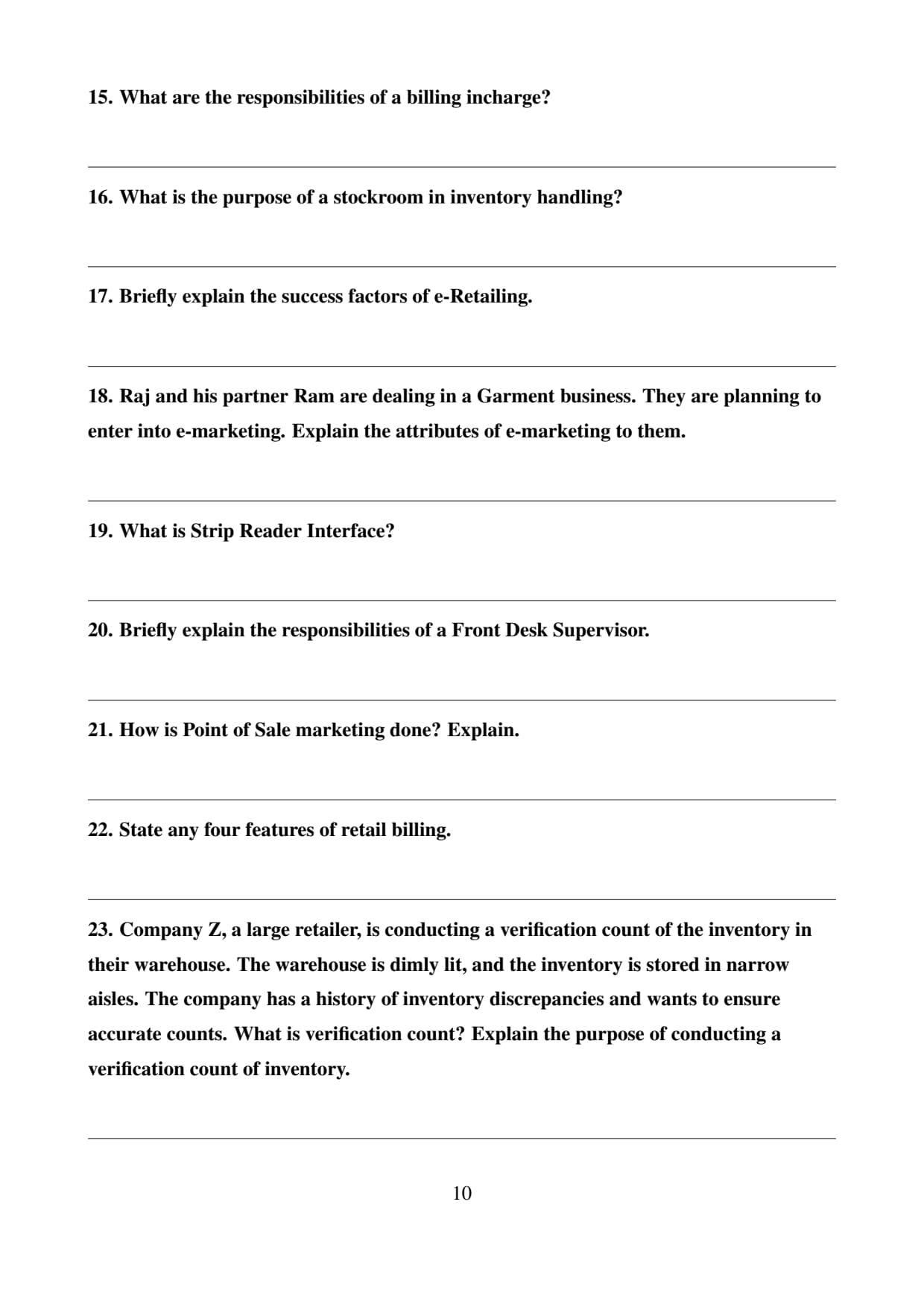 The CBSE Class 12 Retail paper covered key topics from retail management, customer service, merchandising, and sales techniques. Students should focus on understanding retail operations, customer handling, and sales strategies. The exam is marked out of 100, with 60 marks for the theory paper and 40 for internal assessment.