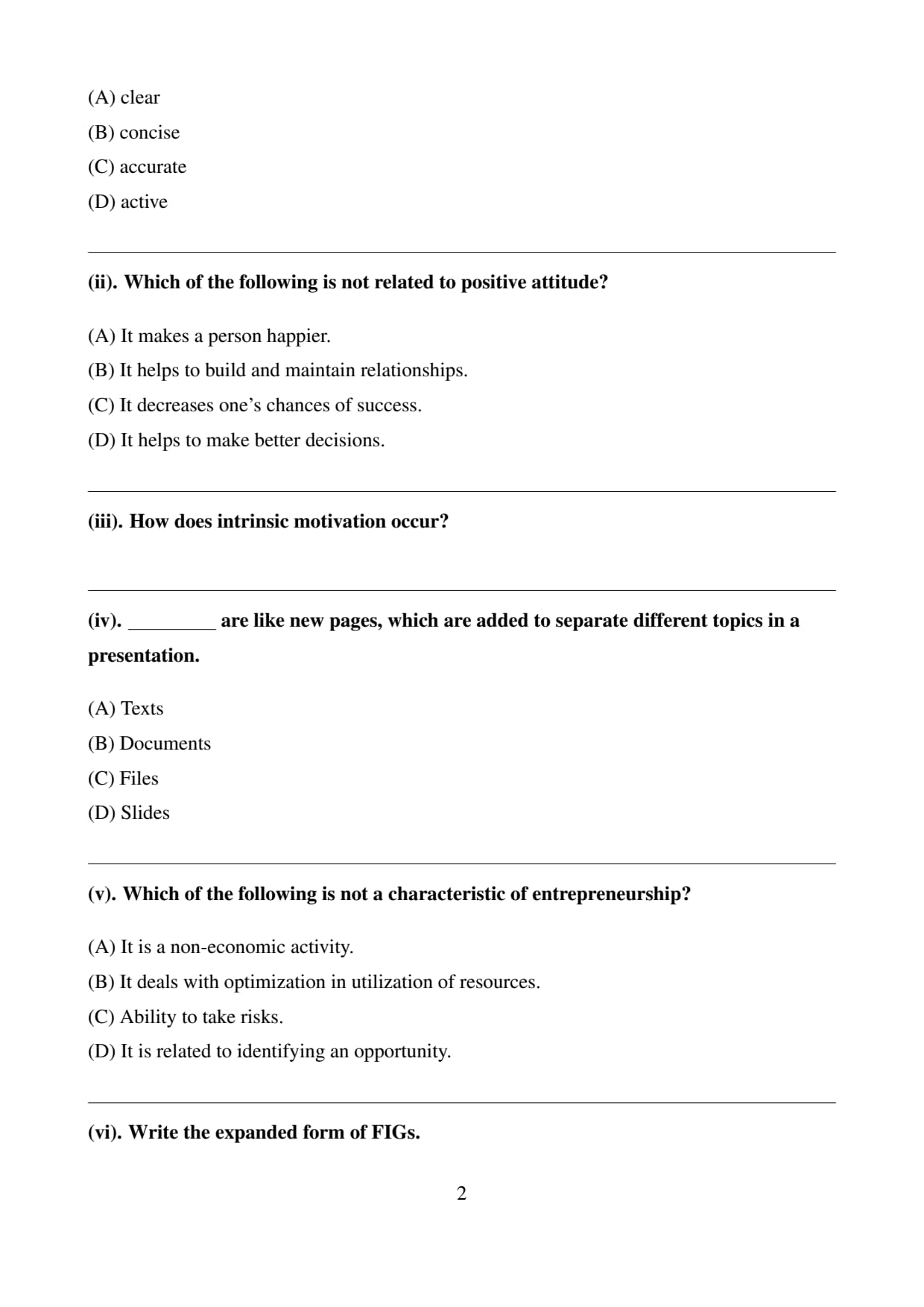 Isliye option (A) hi aisa statement hai jo entrepreneurship ka characteristic nahi hai.