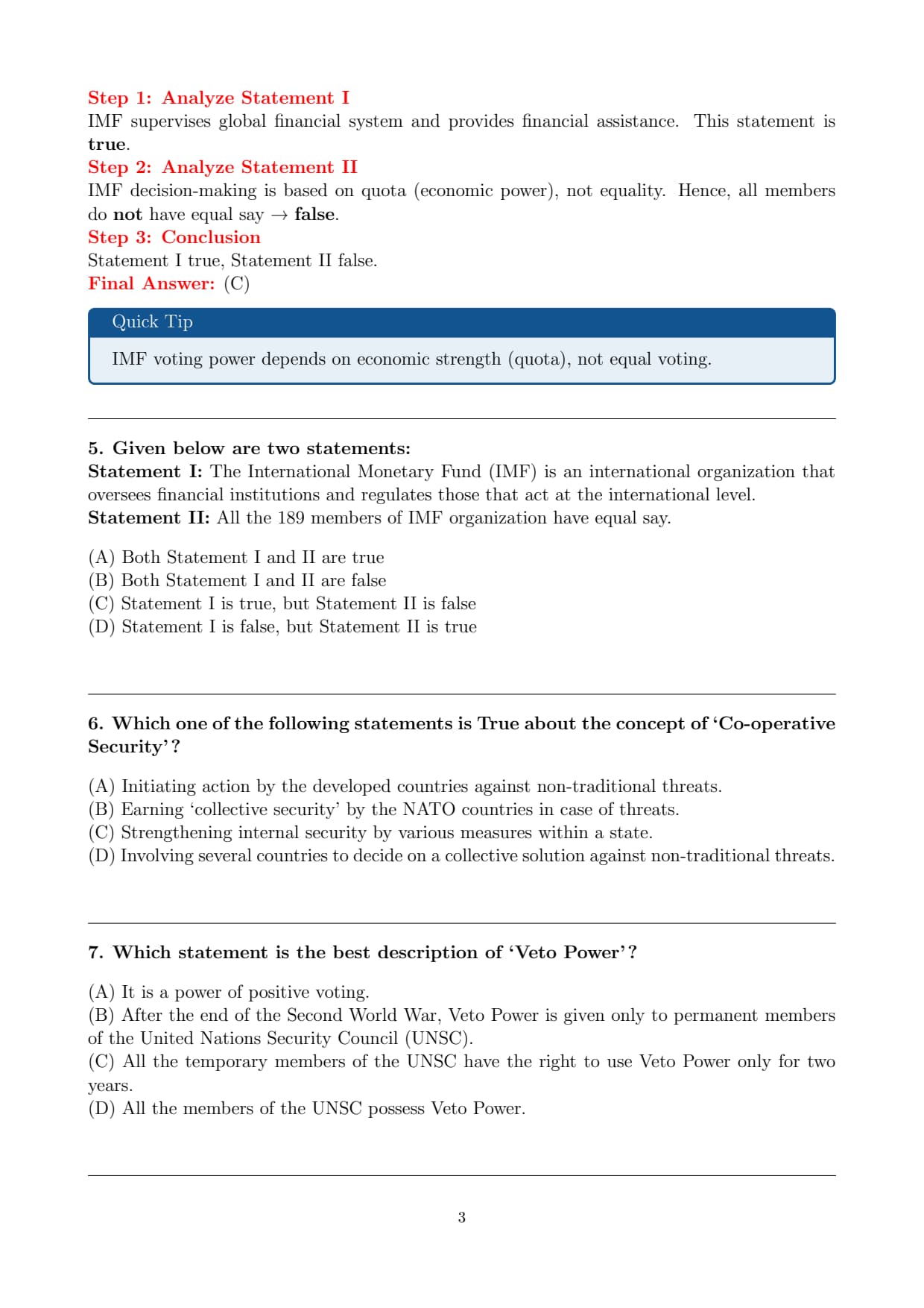 Final Answer: (D) Quick Tip: Co-operative security means countries working together to address shared global threats.