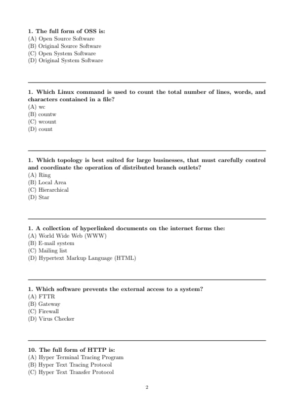 - \texttt{E-mail system, \texttt{Mailing list, and \texttt{HTML are related to communication and web development, but they do not describe a collection of hyperlinked documents on the internet. Quick Tip: The World Wide Web uses the HTTP (Hypertext Transfer Protocol) to access web pages, and HTML is used to create and structure the content of those pages.
