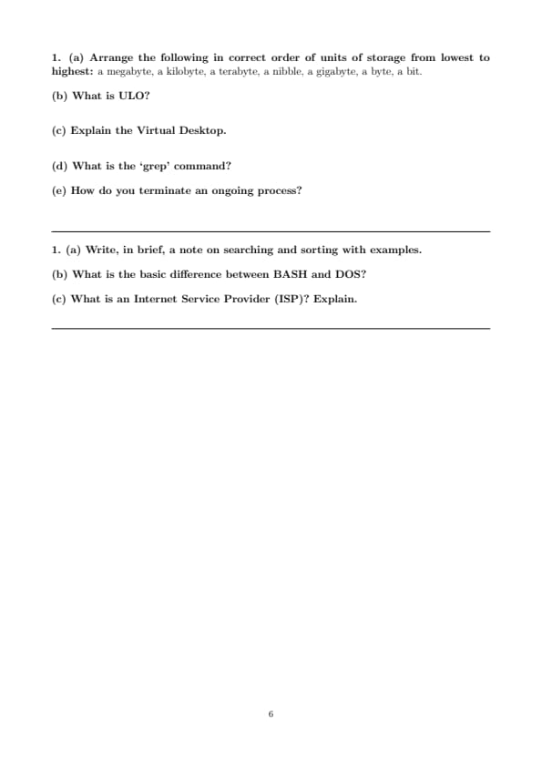 - Time Complexity: \(O(n \log n)\) where \(n\) is the number of elements. Quick Tip: Searching and Sorting are essential operations in computer science. 1. \textbf{Searching Algorithms}: - \texttt{Linear Search}: Checks each element sequentially, \(O(n)\) time complexity. - \texttt{Binary Search}: Works on sorted data, repeatedly divides the list in half, \(O(\log n)\) time complexity. 2. \textbf{Sorting Algorithms}: - \texttt{Bubble Sort}: Compares and swaps adjacent elements until sorted, \(O(n^2)\) time complexity. - \texttt{Merge Sort}: Divides the list, recursively sorts, and merges, \(O(n \log n)\) time complexity.