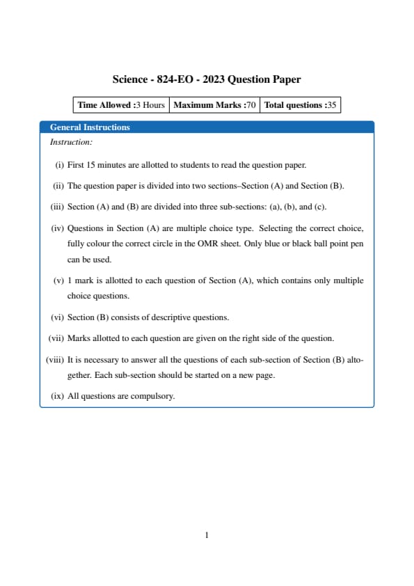 UP Board Class 10 Science Question Paper 2023 PDF (Code 824 EO) with Answer Key and Solutions PDF is available for download here. UP Board Class 10 exams were conducted between February 24th to March 12th 2023. The total marks for the theory paper were 70. Students reported the paper to be easy to moderate.