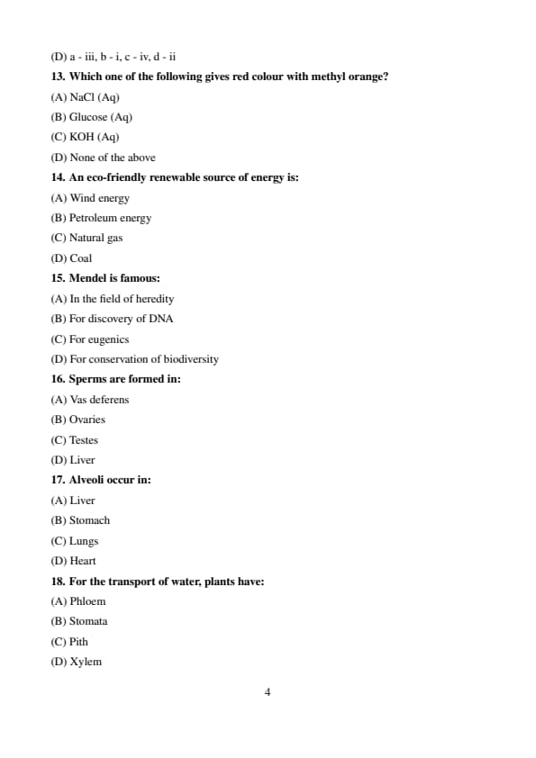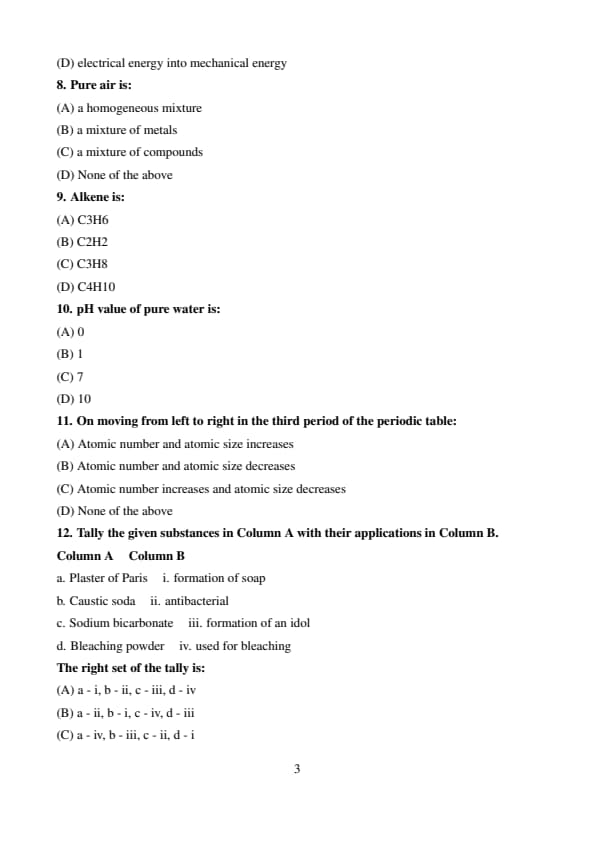 a - iii, b - i, c - iv, d - ii. Quick Tip: Plaster of Paris is used in construction and making sculptures, while caustic soda is crucial for soap-making. - Sodium bicarbonate has a variety of uses, including as a deodorizer and in cleaning, while bleaching powder is often used for its disinfectant properties.