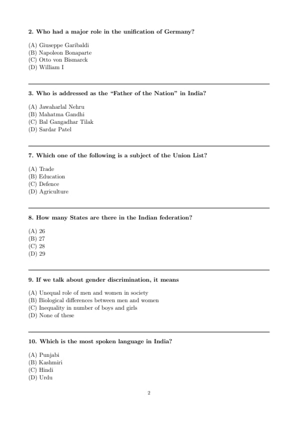 - Sardar Patel played a significant role in the integration of princely states post-independence but is not called the “Father of the Nation.” Quick Tip: Mahatma Gandhi is revered as the "Father of the Nation" due to his leadership in India’s non-violent struggle for independence and his profound impact on the moral and political fabric of the country.