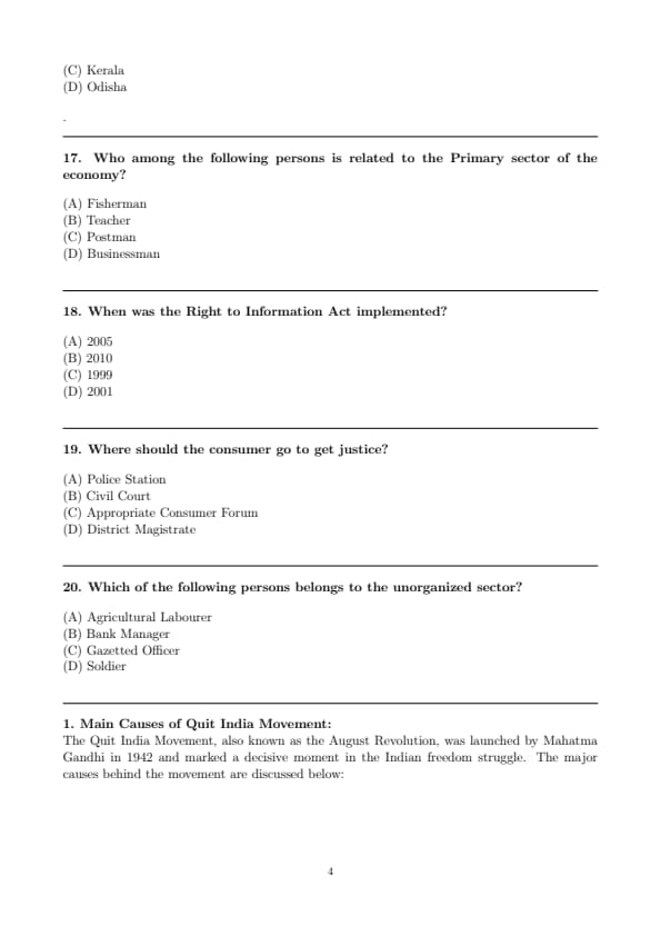 The Great Depression of 1929 had far-reaching consequences worldwide. It not only impacted the economies of the United States and Europe but also significantly affected colonial economies like India's. It highlighted the need for economic reforms and contributed to the growing unrest that ultimately played a role in the Indian independence movement. Quick Tip: The Great Economic Depression began in 1929, triggered by the Stock Market Crash. It led to global unemployment, reduced trade, and economic hardship, influencing political movements around the world, including India’s struggle for independence.