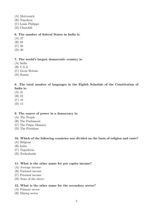 India is a federal union comprising 28 states and 8 Union Territories. As of recent amendments, however, the total number of states is 29 following the inclusion of Jammu and Kashmir as a union territory. This federal structure, defined by the Constitution of India, allocates powers between the central government and individual states. Quick Tip: The number of federal states in India can change with the reorganization of states, like the bifurcation of Jammu and Kashmir in 2019. Keep in mind that federal structures can evolve over time.