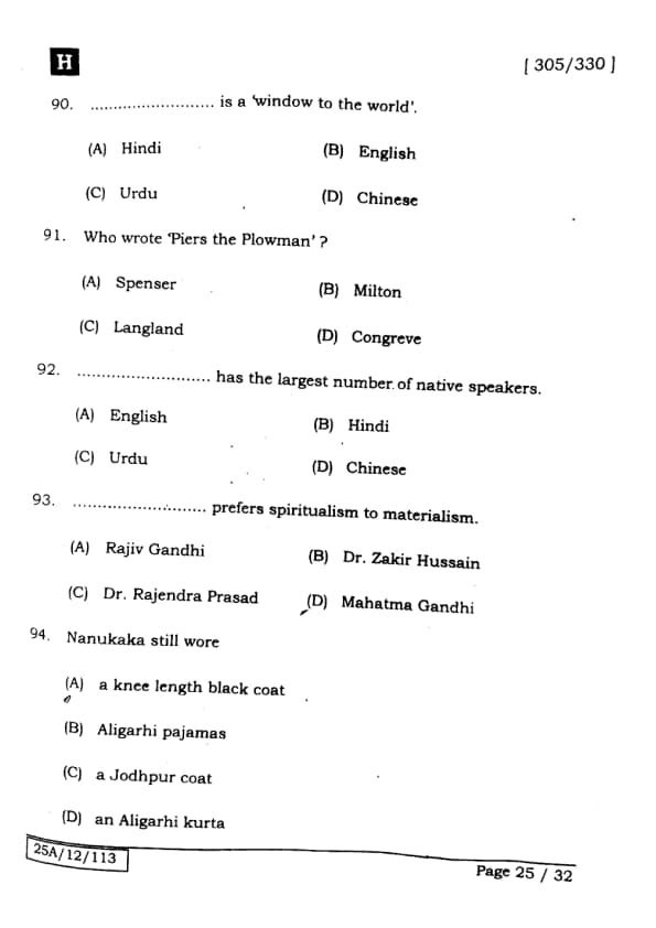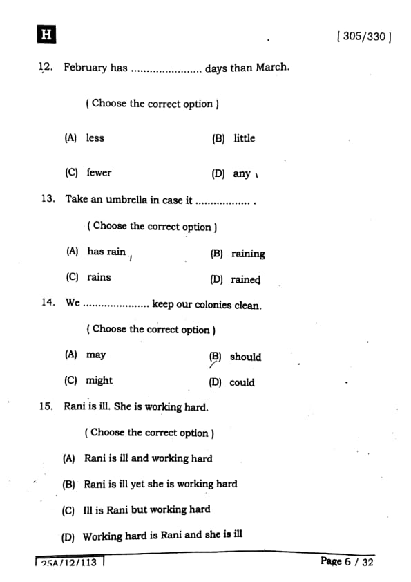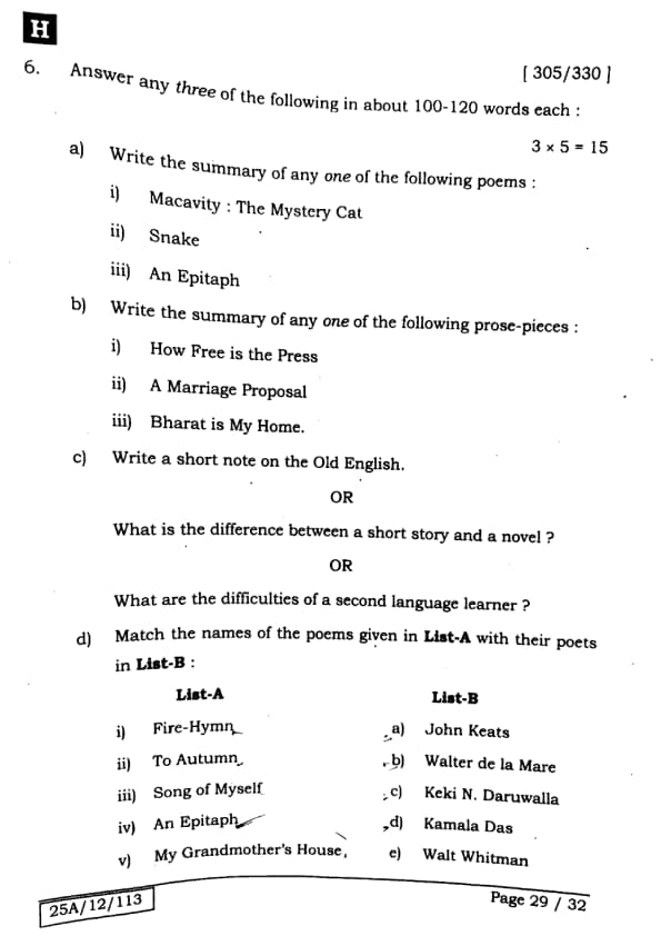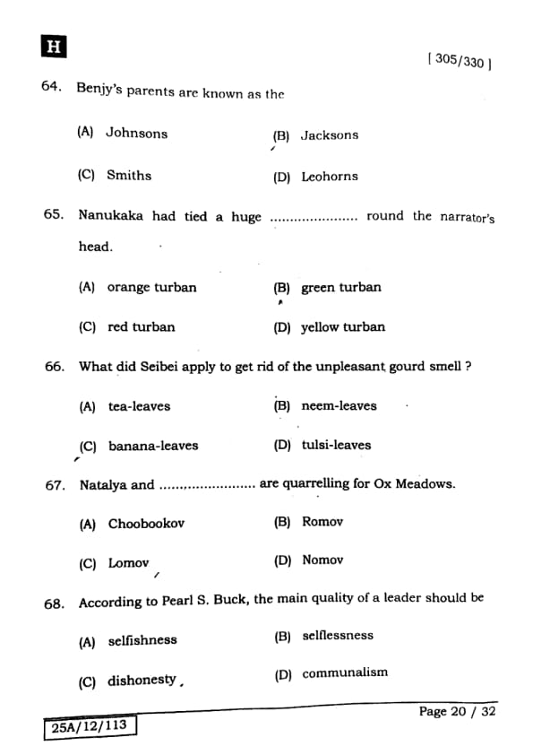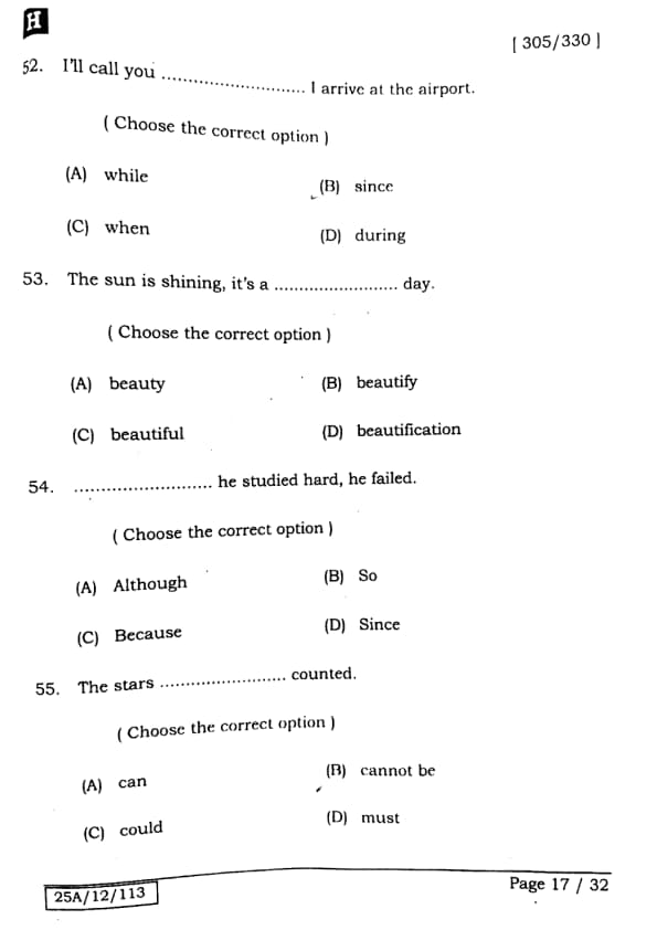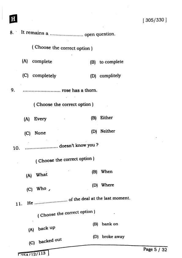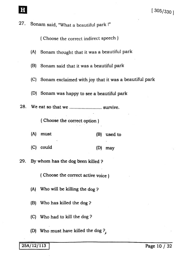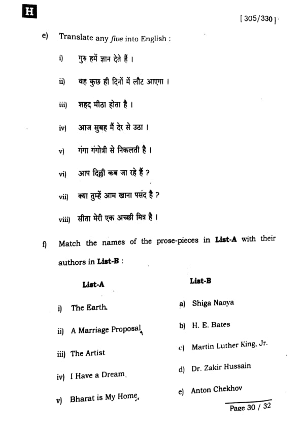 Bihar Board Class 12 English - 305-330 - Set-H Question Paper 2025 PDF with Answer Key and Solutions PDF is available for download here.The exam was successfully organized by IIT Bombay. The question paper comprised a total of 140 questions.