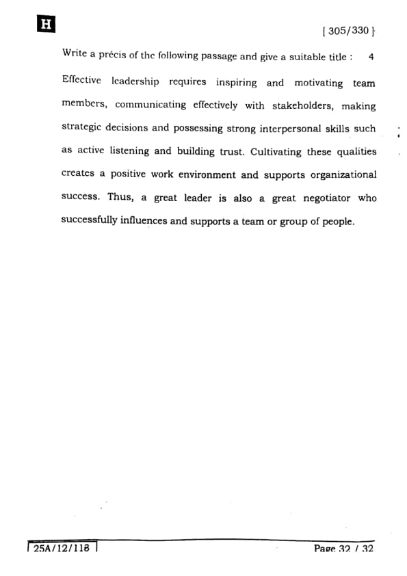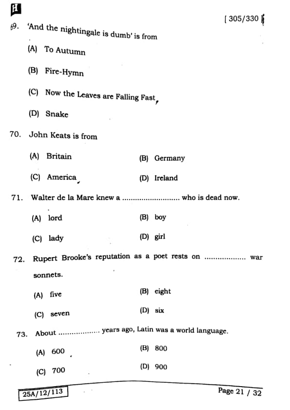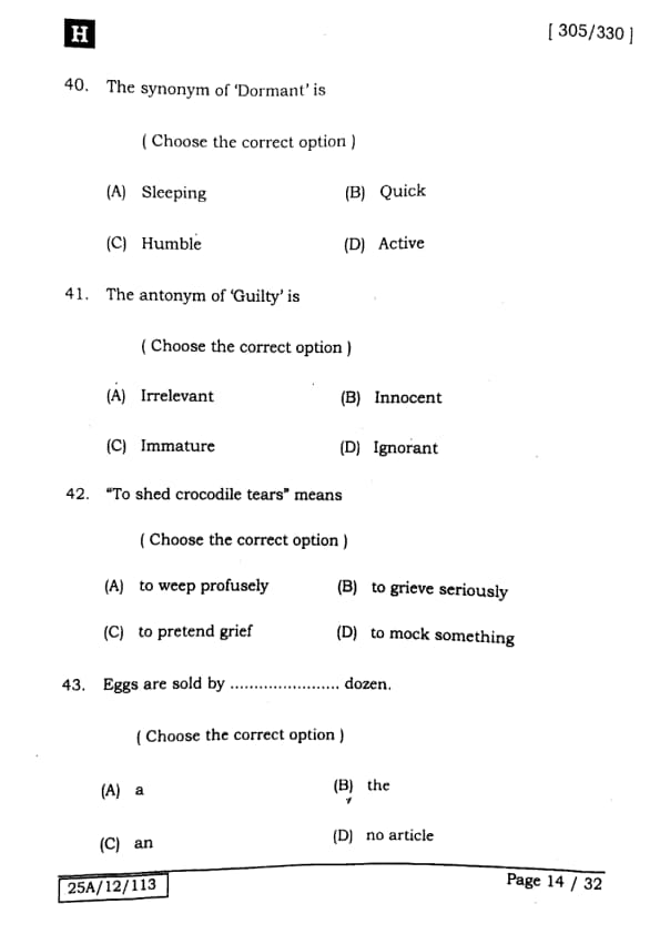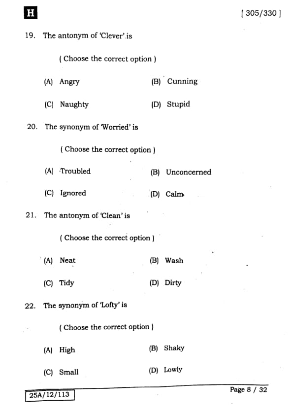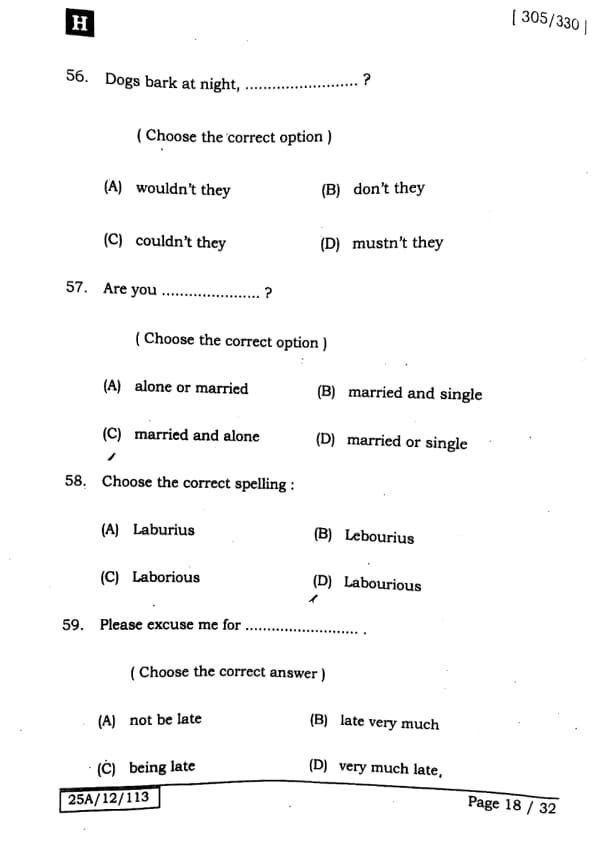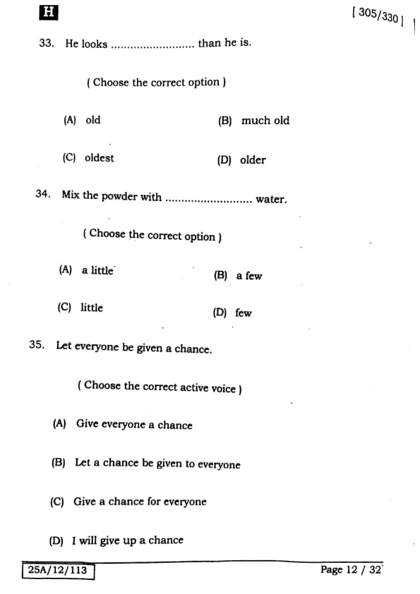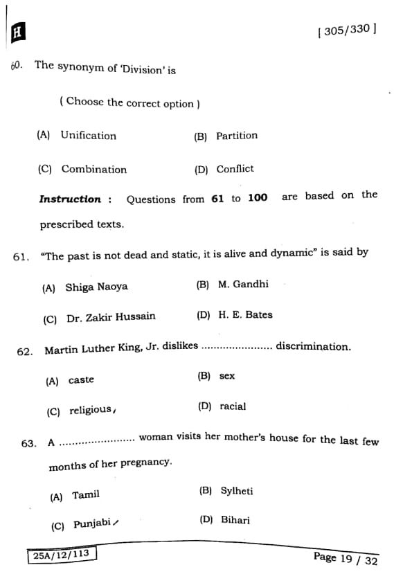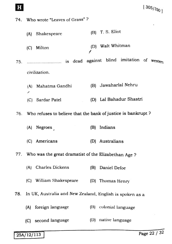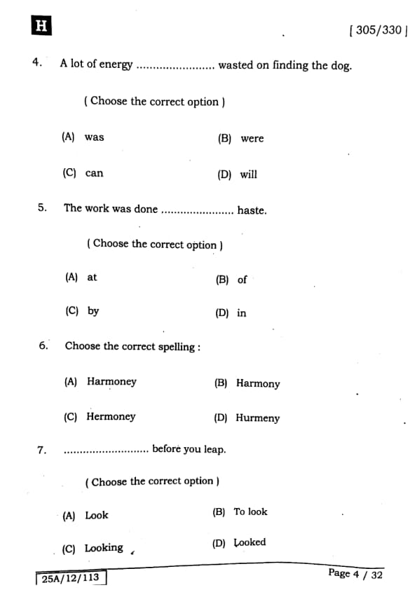 Bihar Board Class 12 English - 305-330 - Set-H Question Paper 2025 PDF with Answer Key and Solutions PDF is available for download here.The exam was successfully organized by IIT Bombay. The question paper comprised a total of 140 questions.