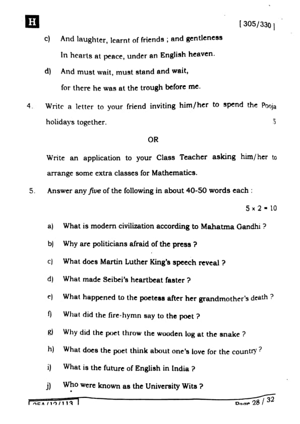 Bihar Board Class 12 English - 305-330 - Set-H Question Paper 2025 with Solutions PDF