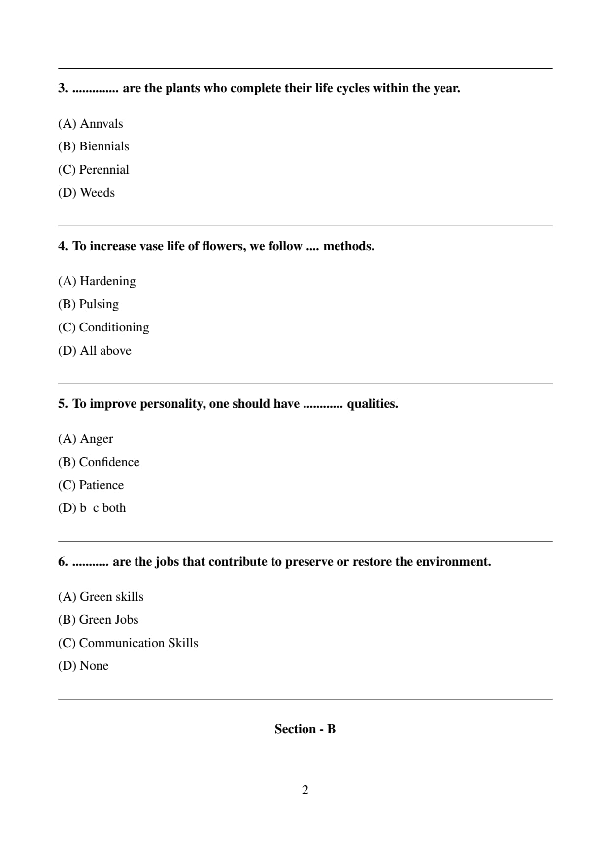(D) All above: Correct. All of the mentioned methods (hardening, pulsing, conditioning) help in increasing the vase life of flowers.