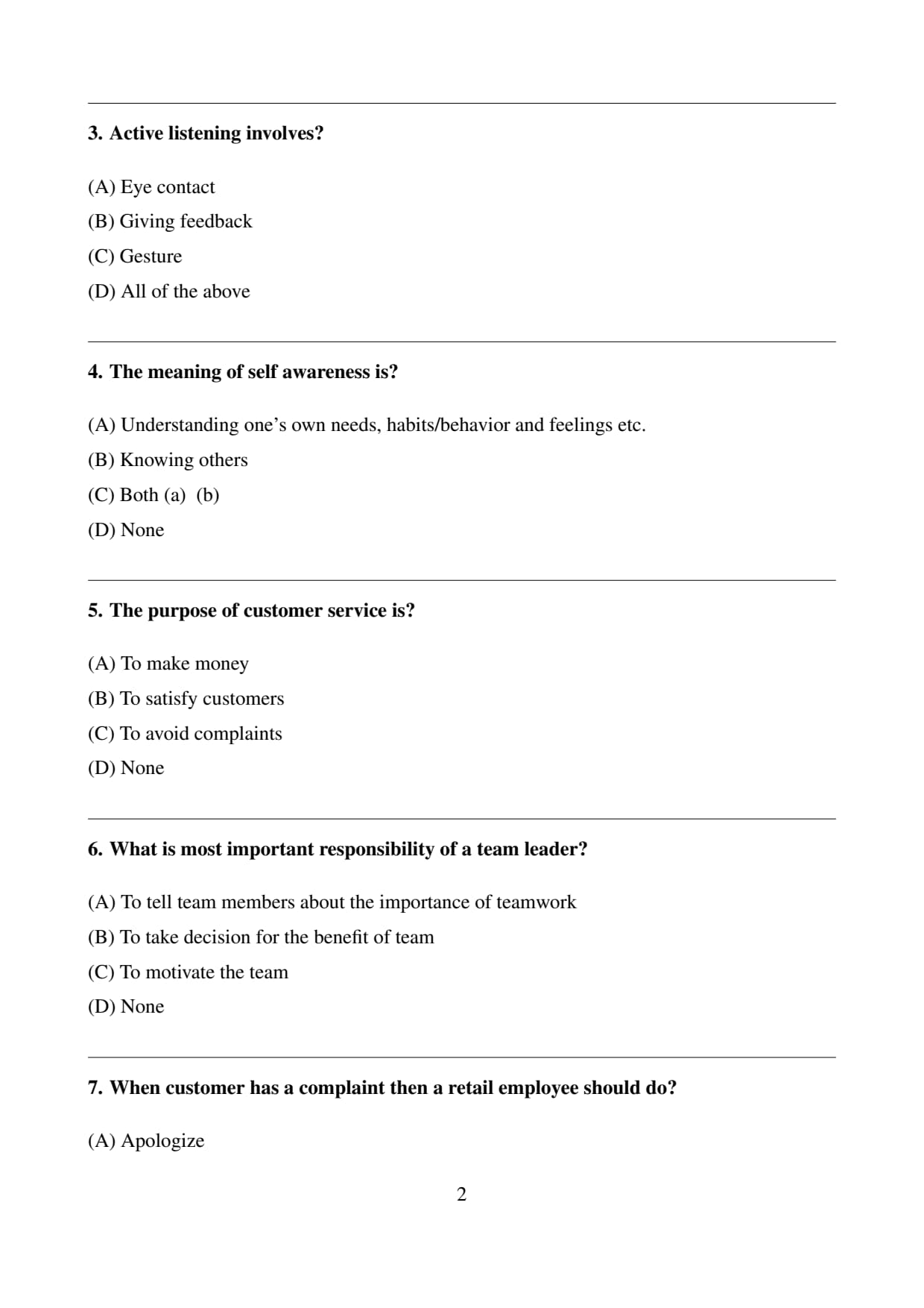 Final Answer: All of the above. Quick Tip: Active listening involves being fully present in a conversation, showing attentiveness through eye contact, gestures, and providing feedback.