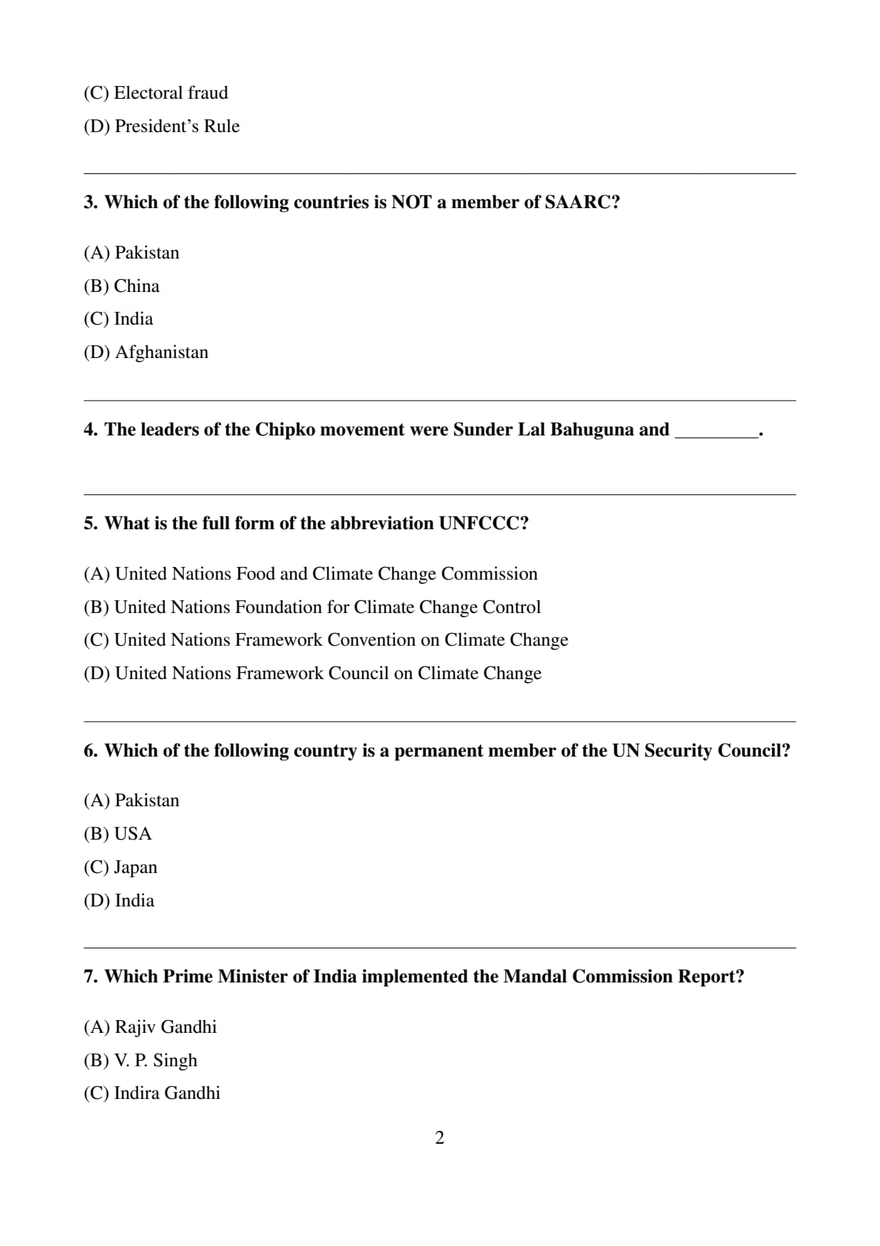 (A), (C), (D): Members of SAARC.
