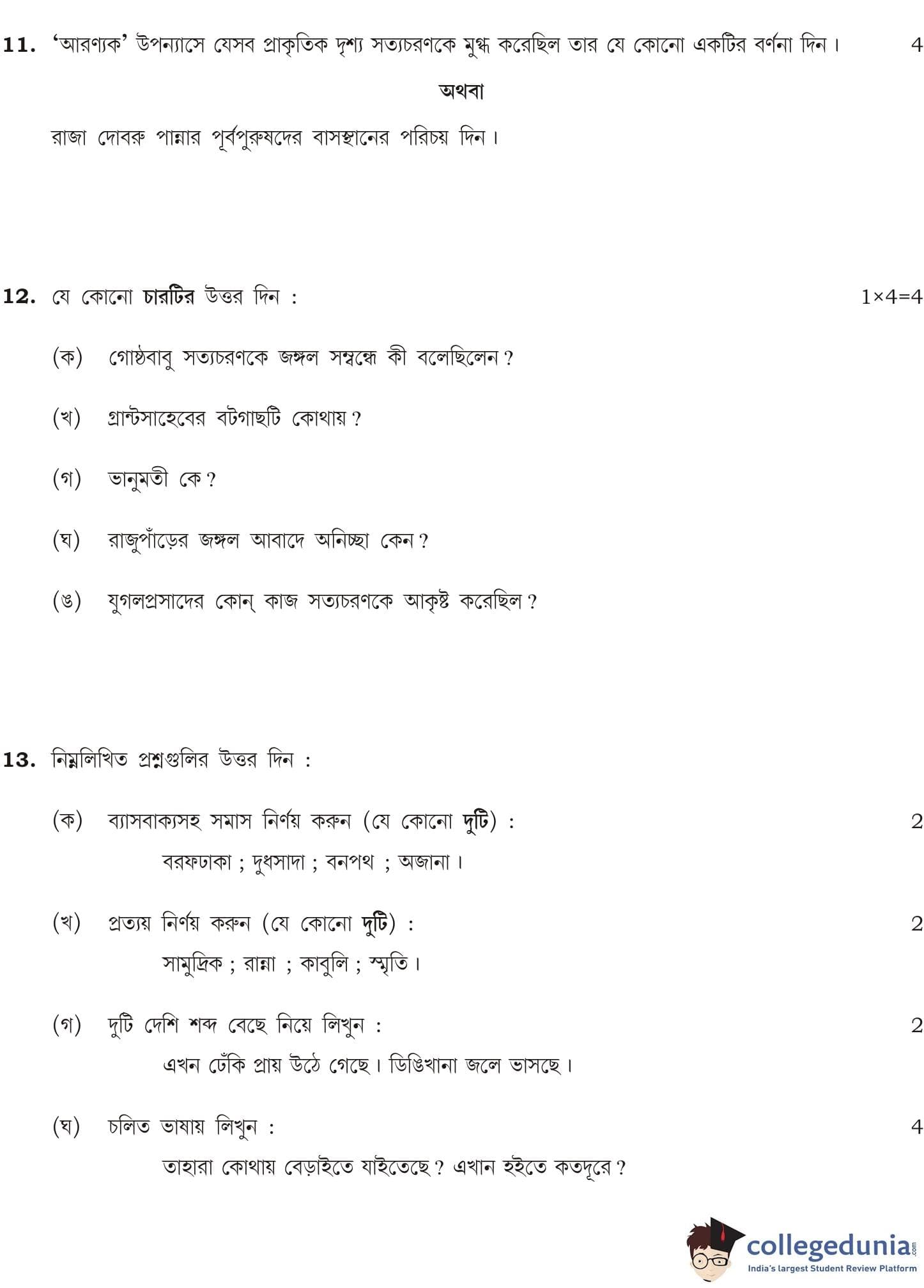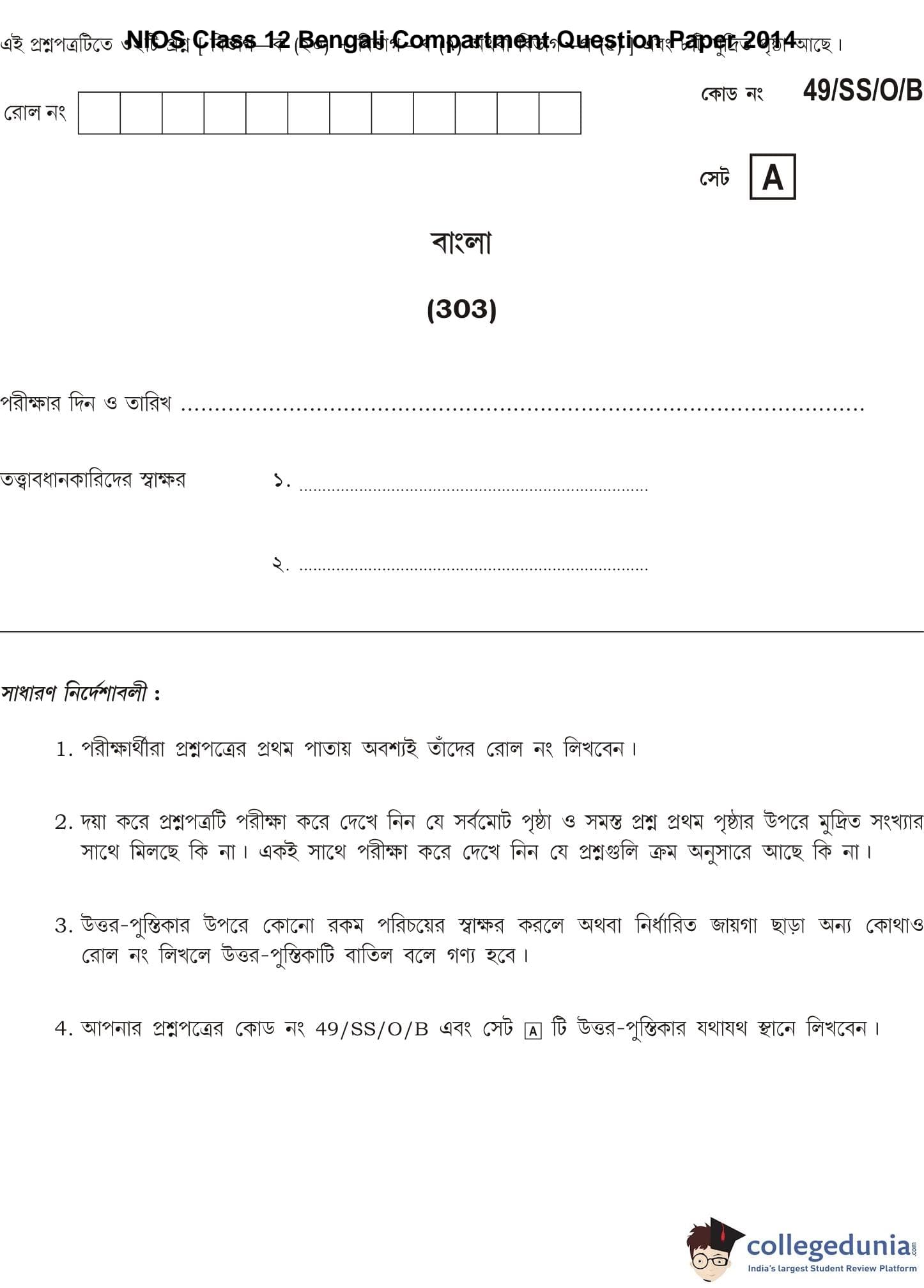 NIOS Class 12 Bengali Compartment Question Paper 2014 with Answer Key