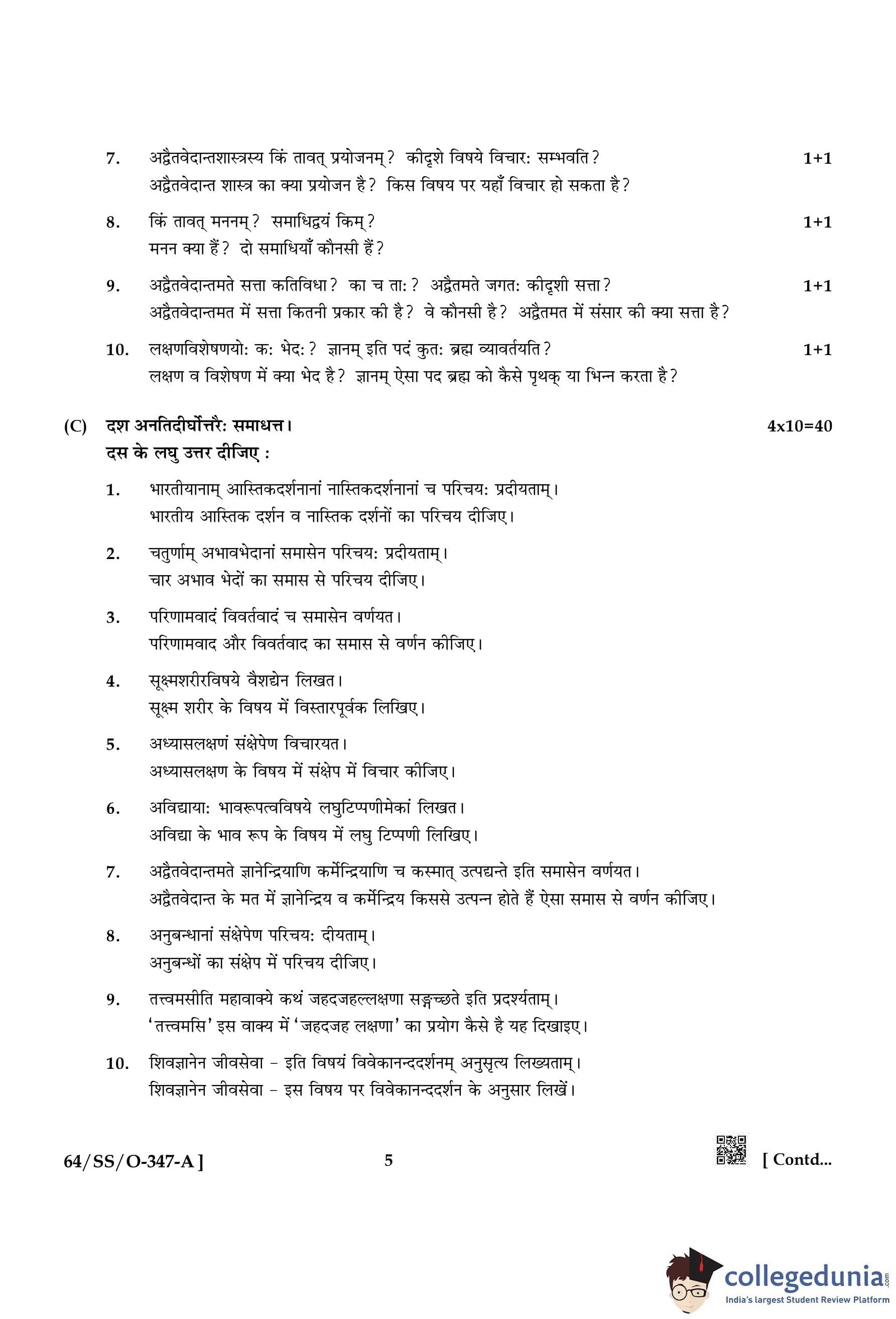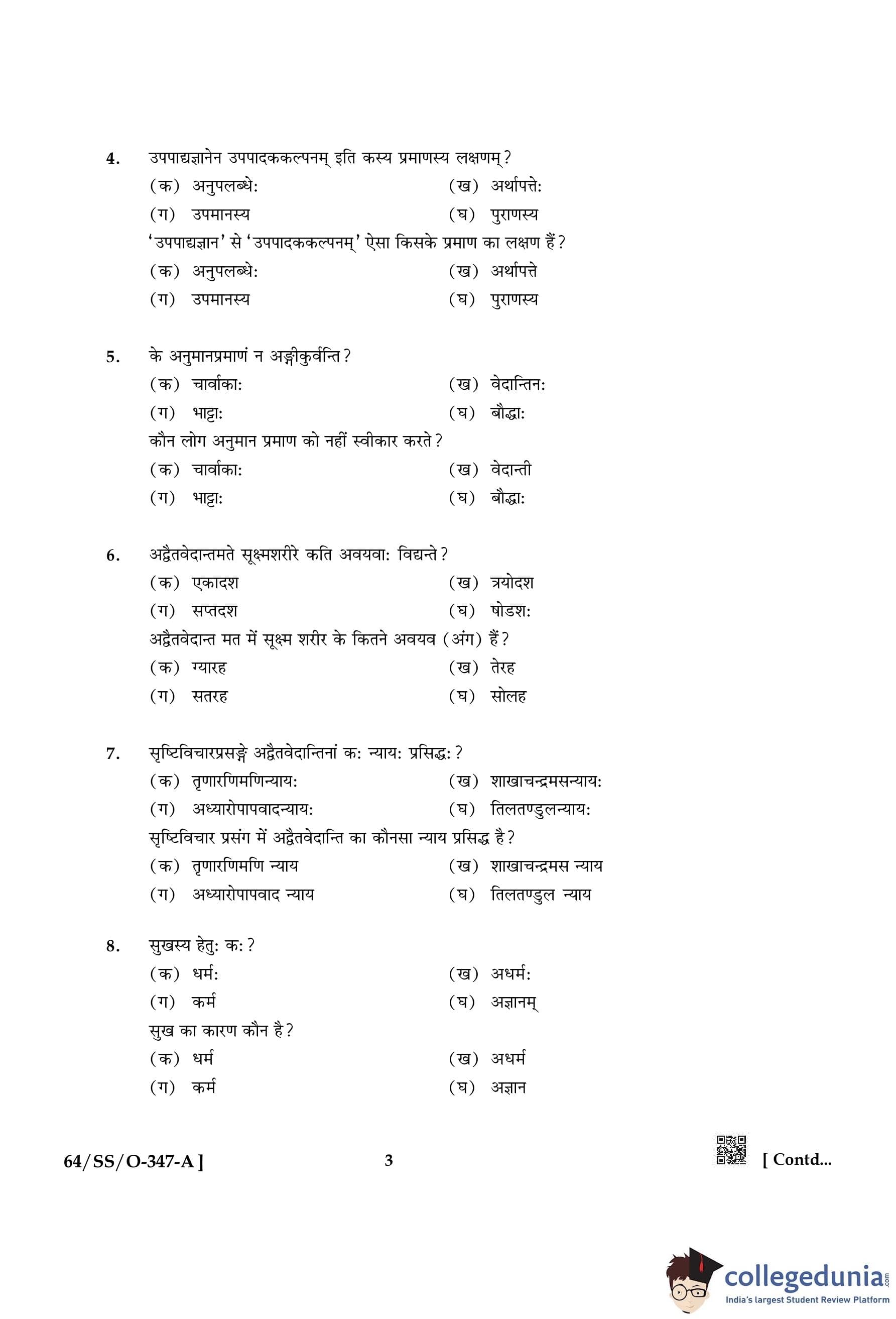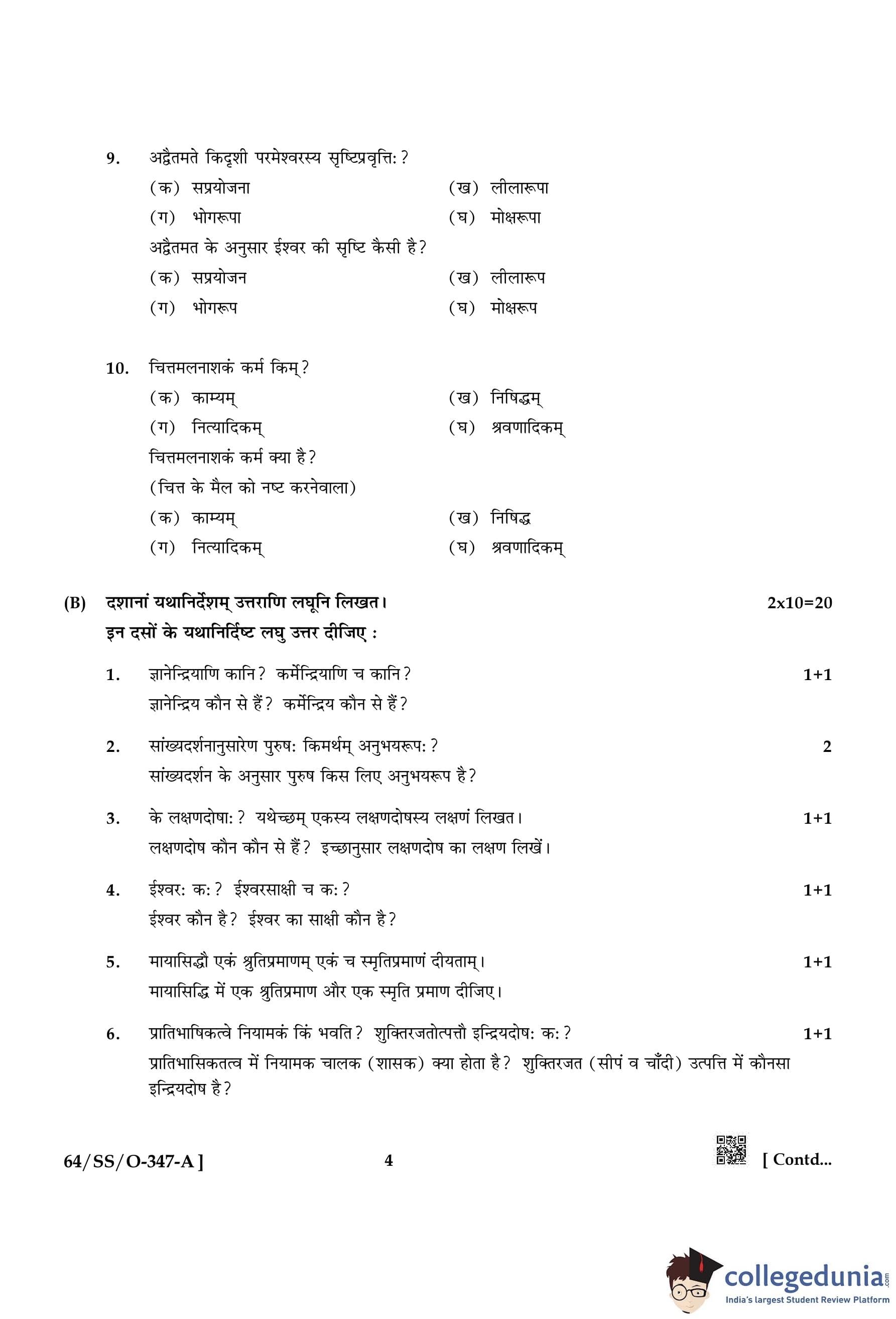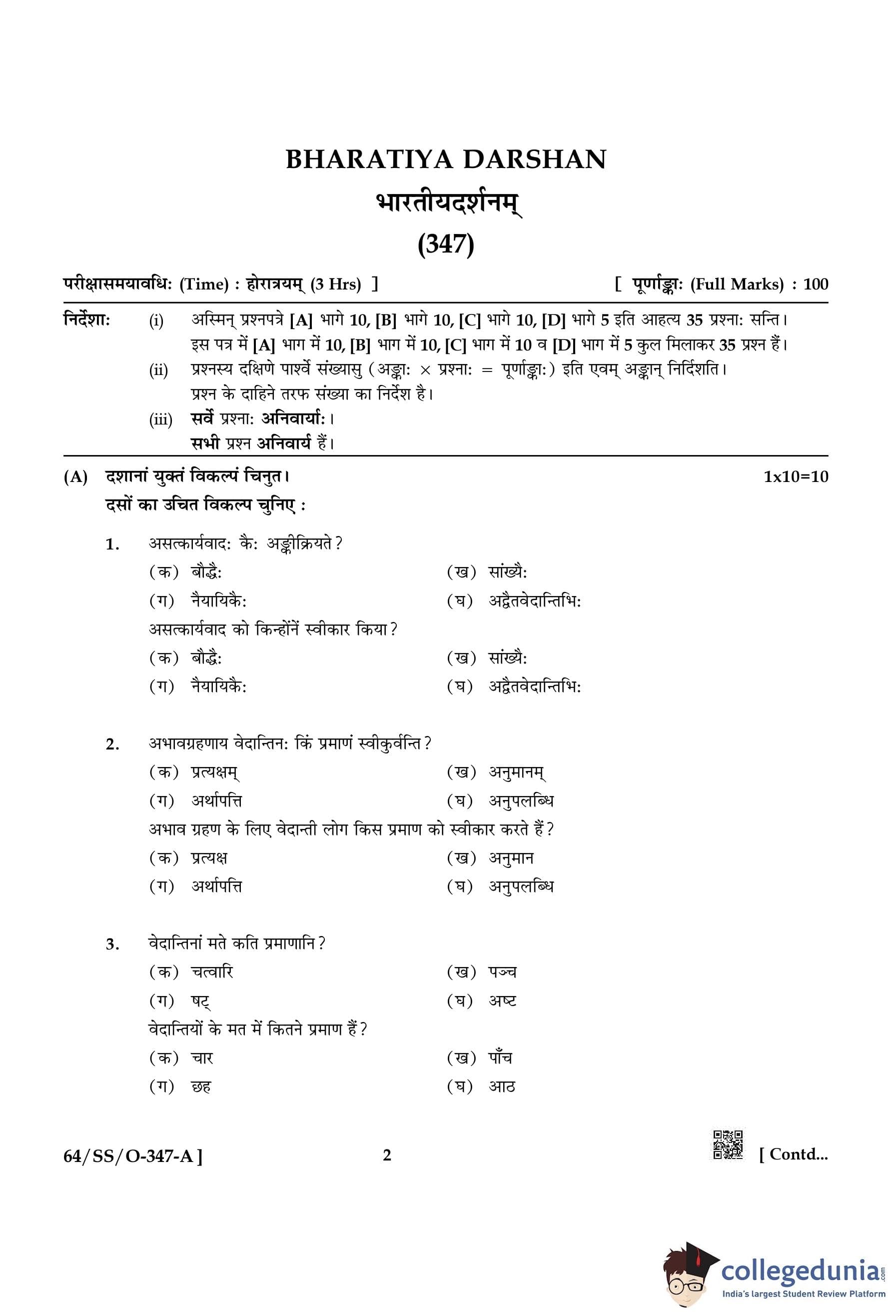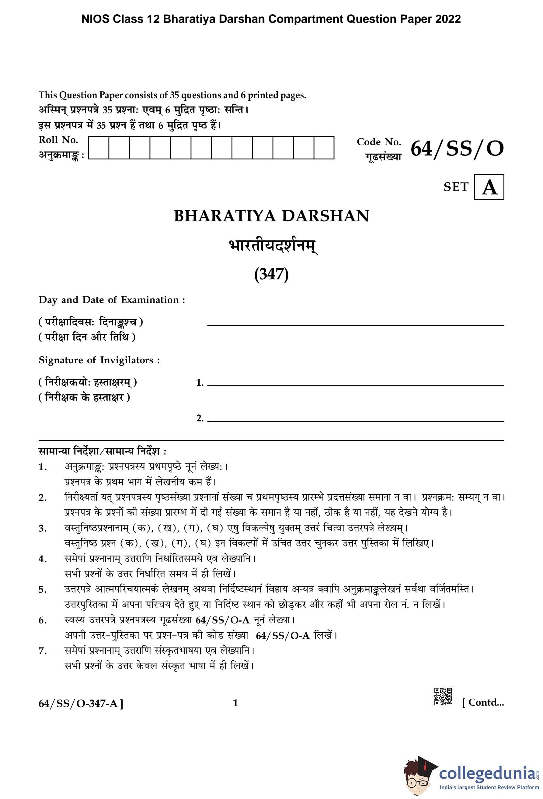 NIOS Class 12 Bharatiya Darshan Compartment Question Paper 2022 with Answer Key pdf is available for download here. The exam was conducted by National Institute of Open Schooling on November 19, 2022 in the Afternoon Session 2:30 PM to 5:30 PM. The question paper comprised a total of 4 questions.
