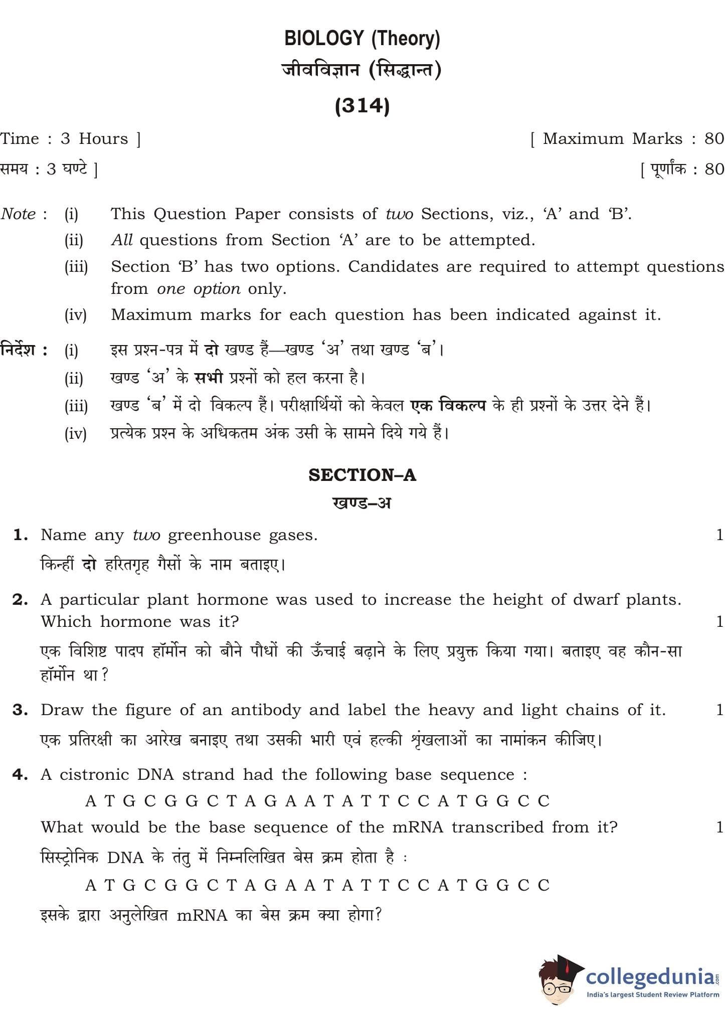 NIOS Class 12 Biology Compartment Question Paper 2014 with Answer Key pdf is available for download here. The exam was conducted by National Institute of Open Schooling on October 17, 2014 in the Afternoon Session 2:30 PM to 5:30 PM. The question paper comprised a total of 26 questions divided among 2 sections.
