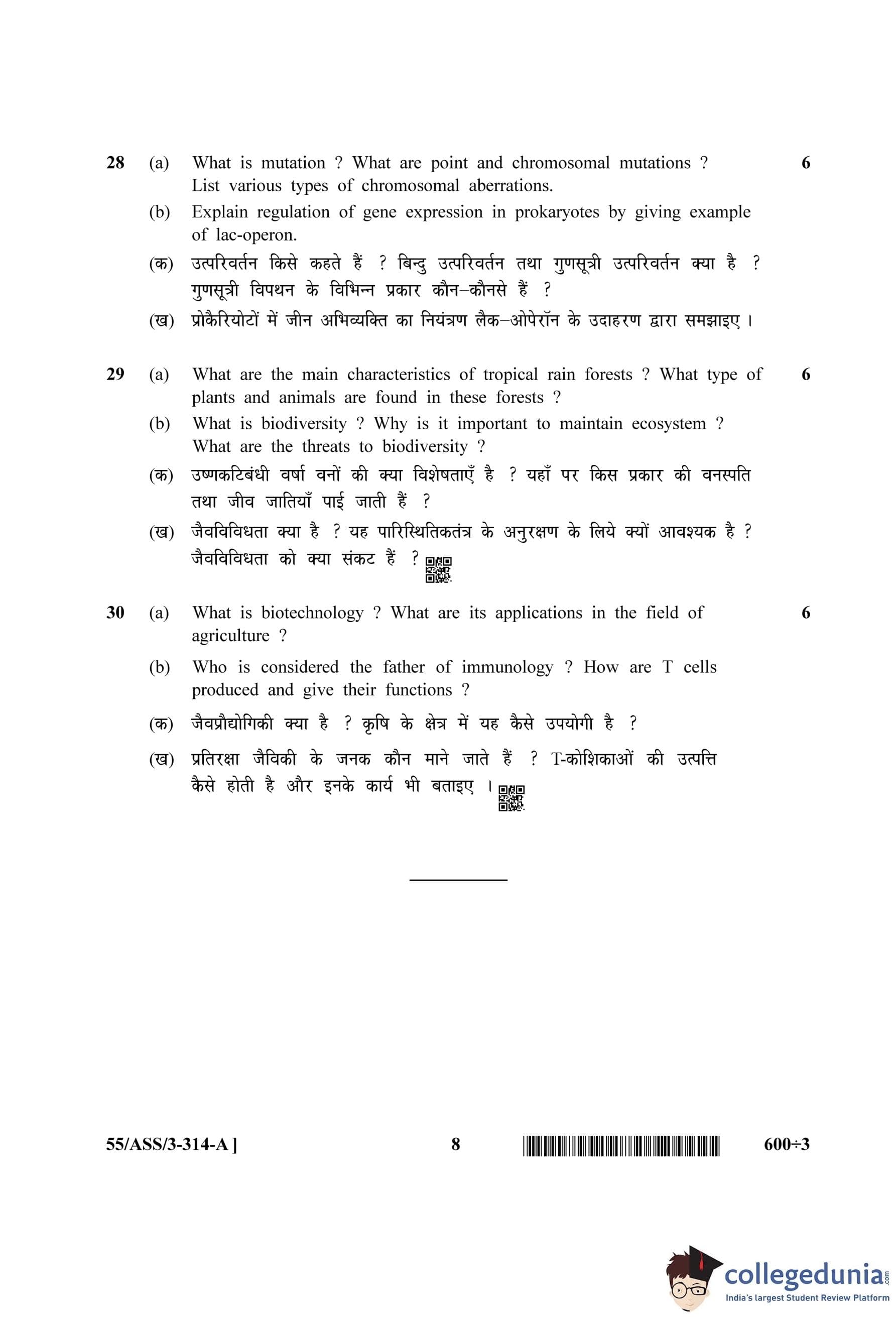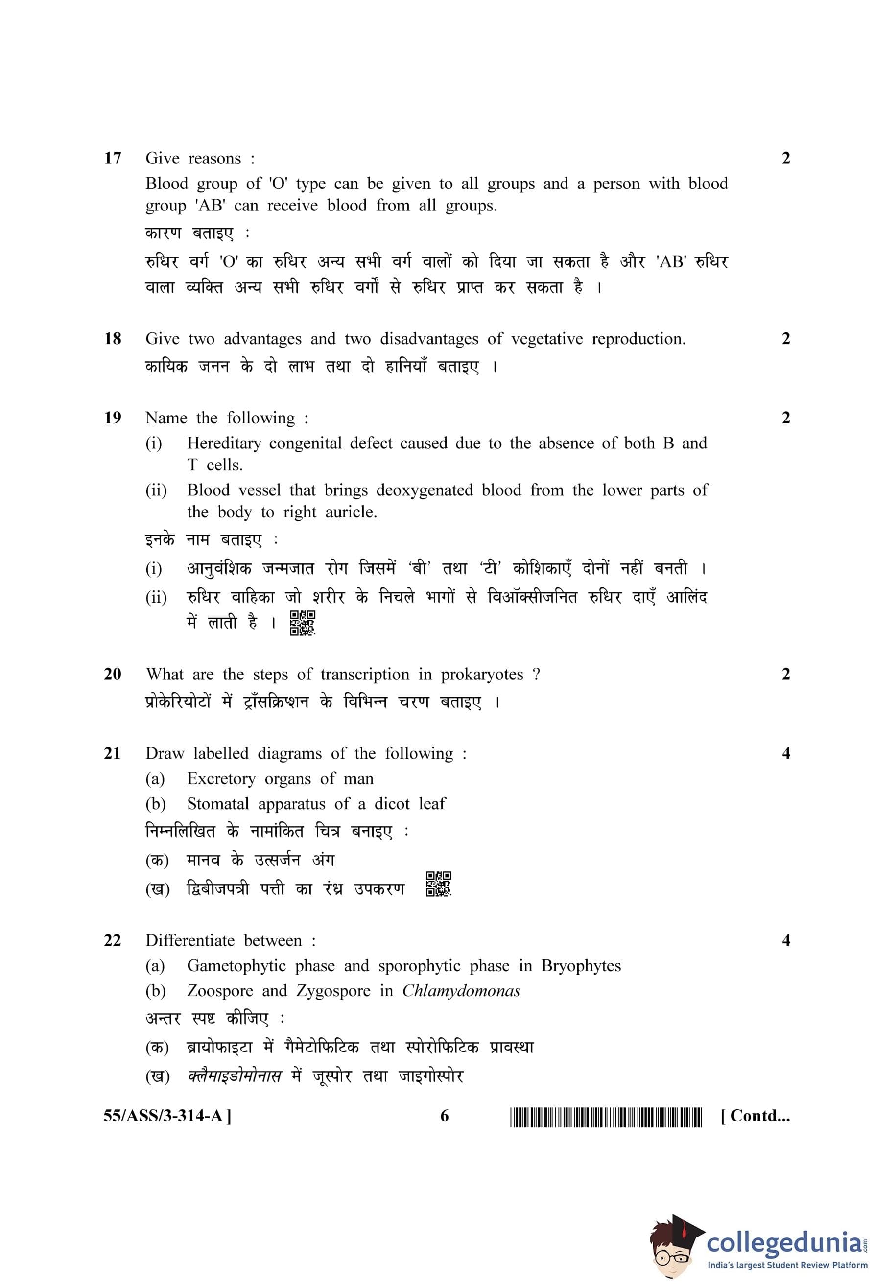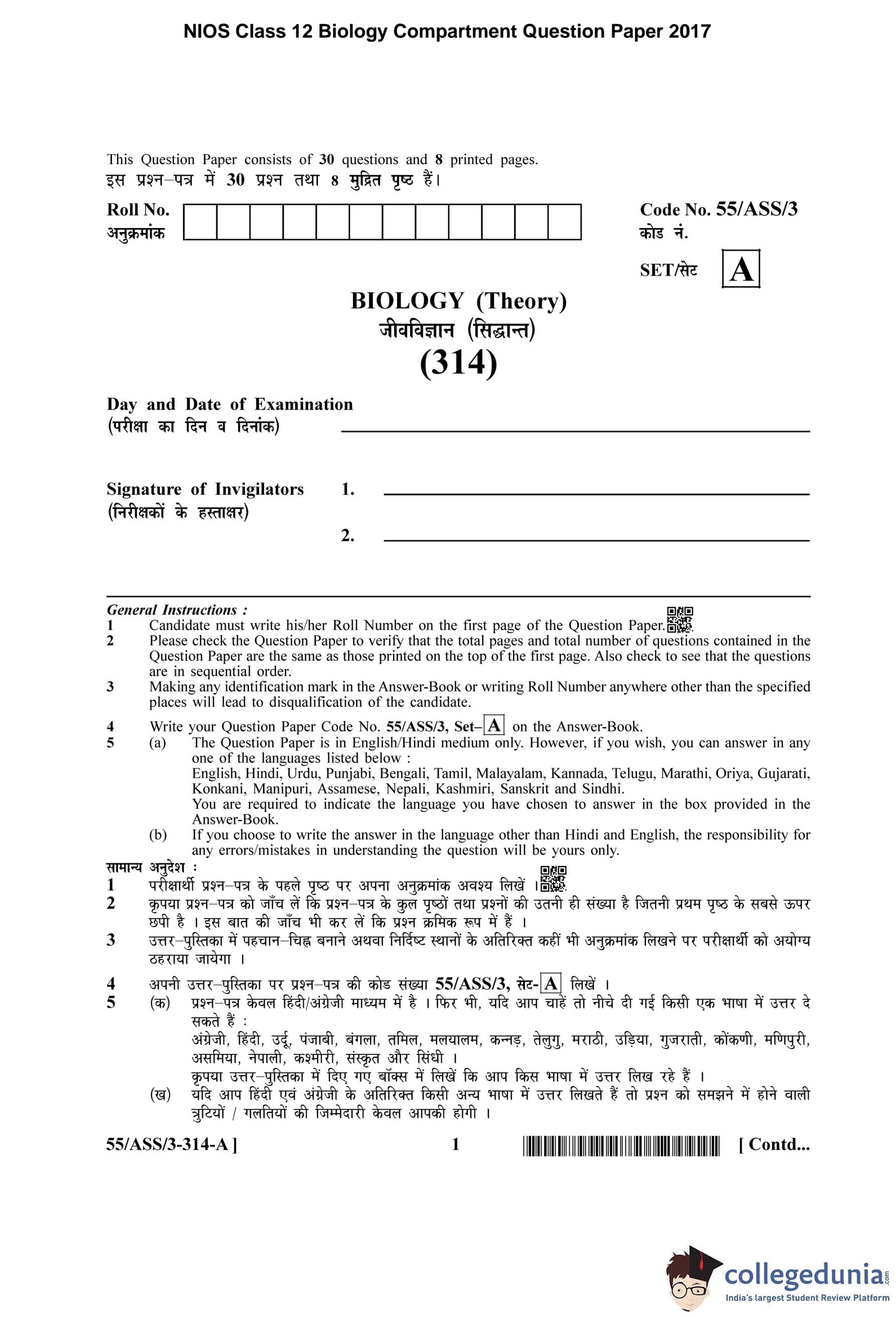 NIOS Class 12 Biology Compartment Question Paper 2017 with Answer Key