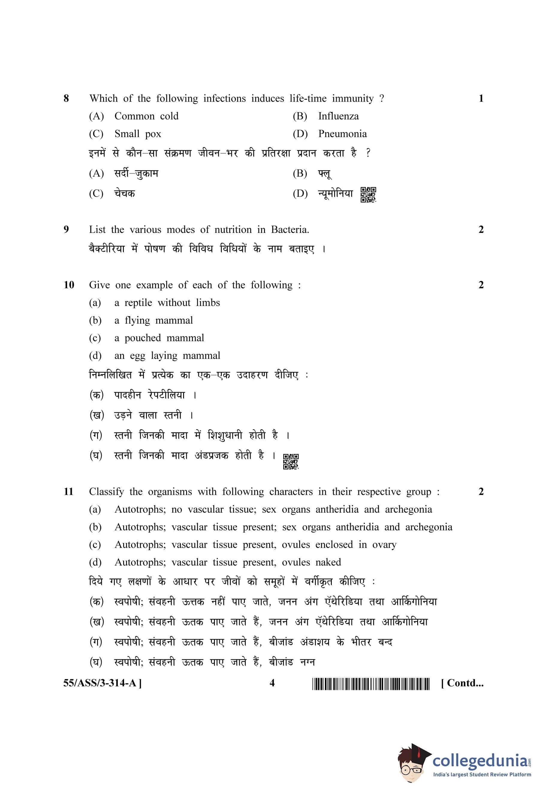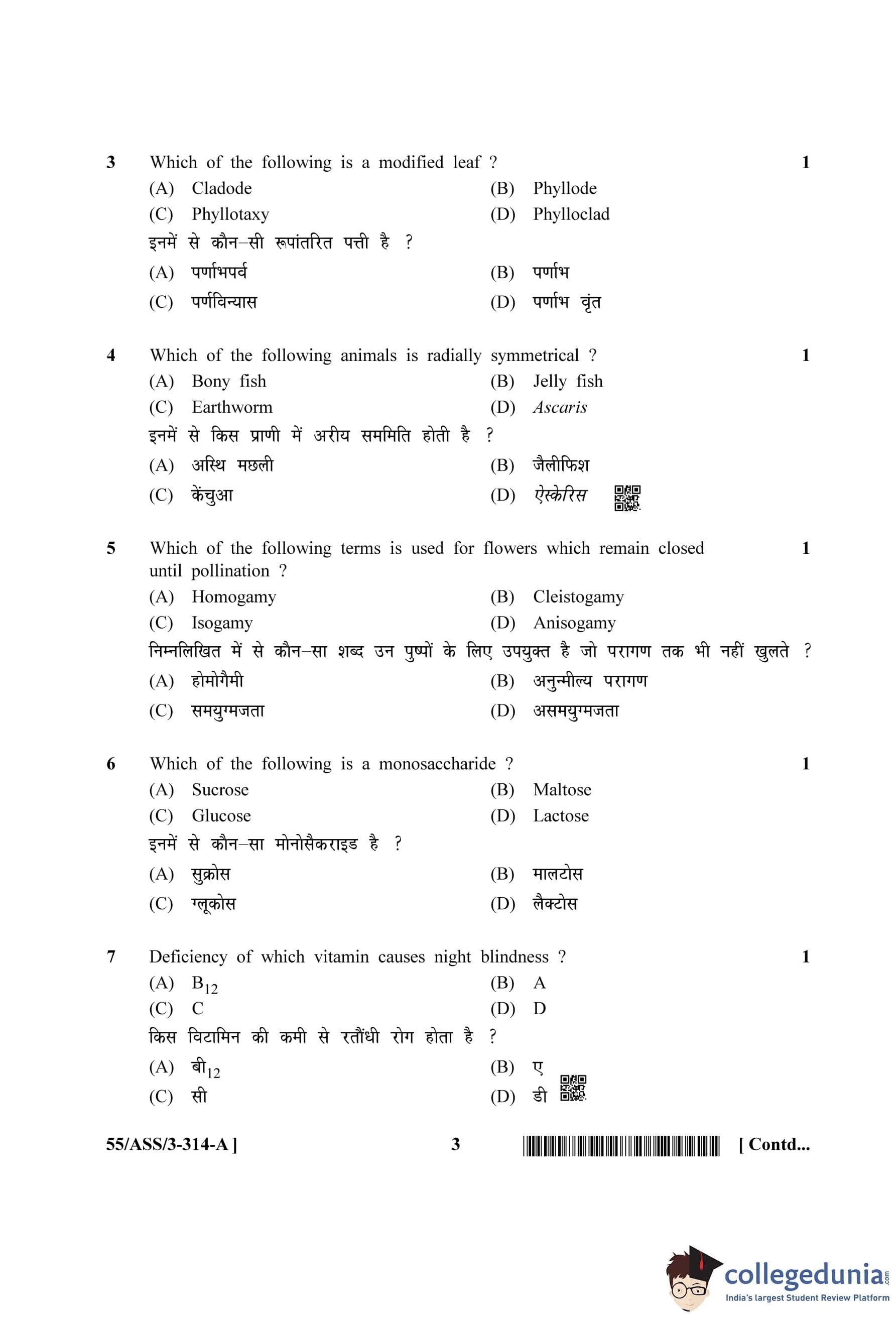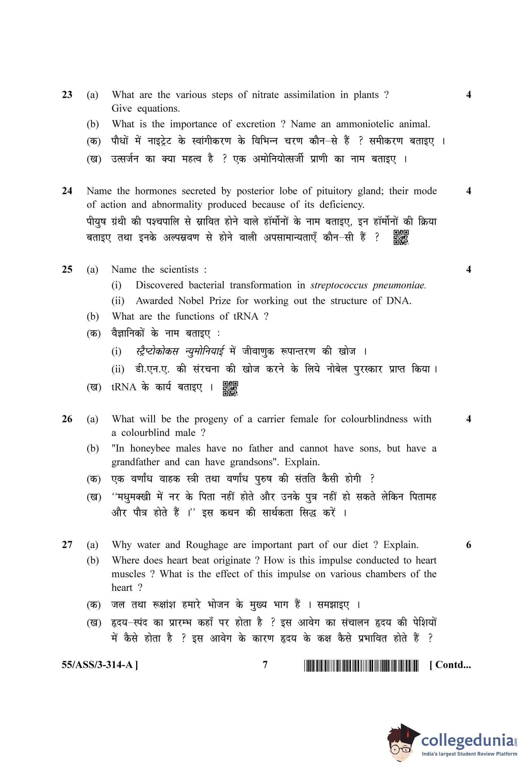 NIOS Class 12 Biology Compartment Question Paper 2017 with Answer Key