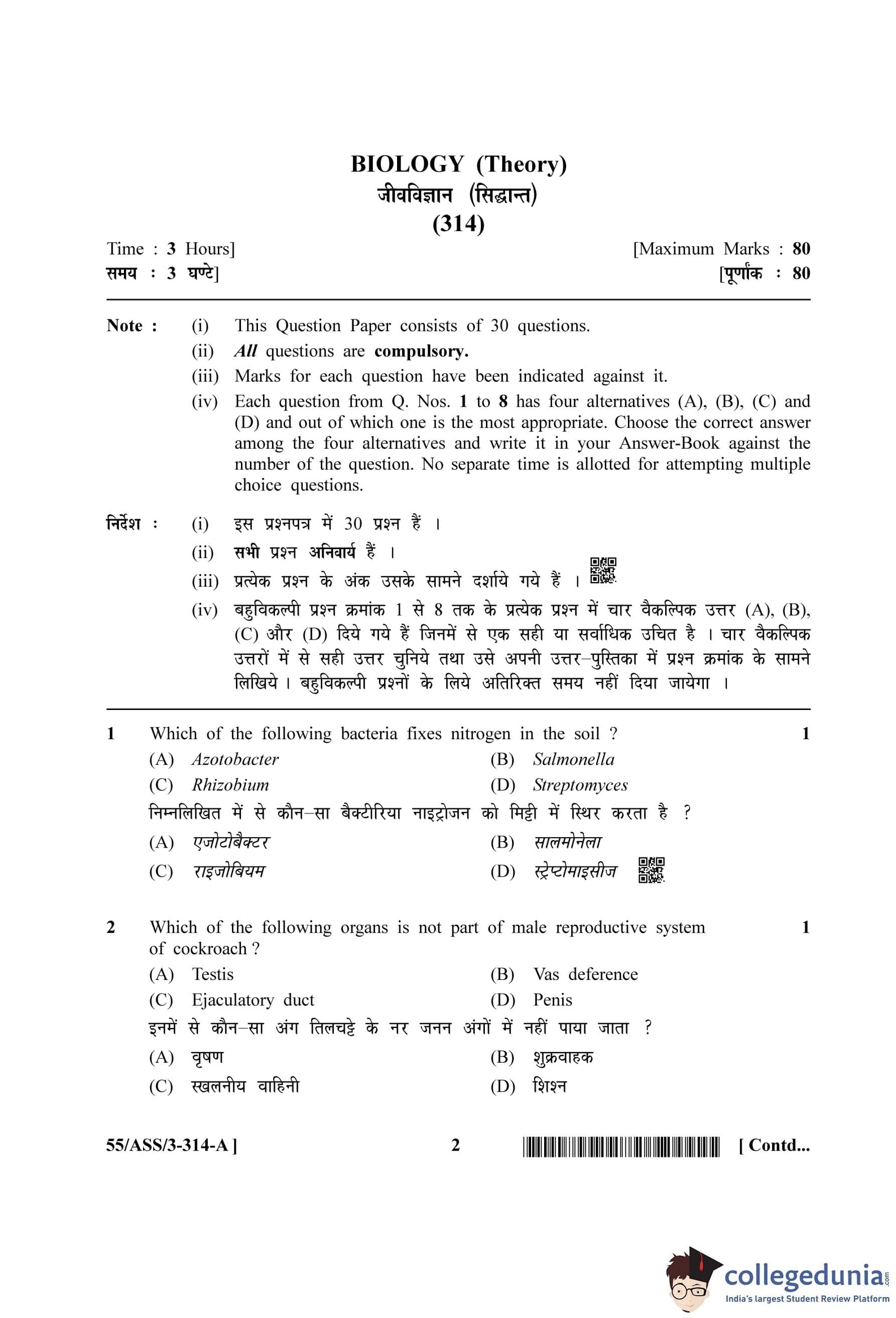 NIOS Class 12 Biology Compartment Question Paper 2017 with Answer Key pdf is available for download here. The exam was conducted by National Institute of Open Schooling on October 25, 2017 in the Afternoon Session 2:30 PM to 5:30 PM. The question paper comprised a total of 30 questions.