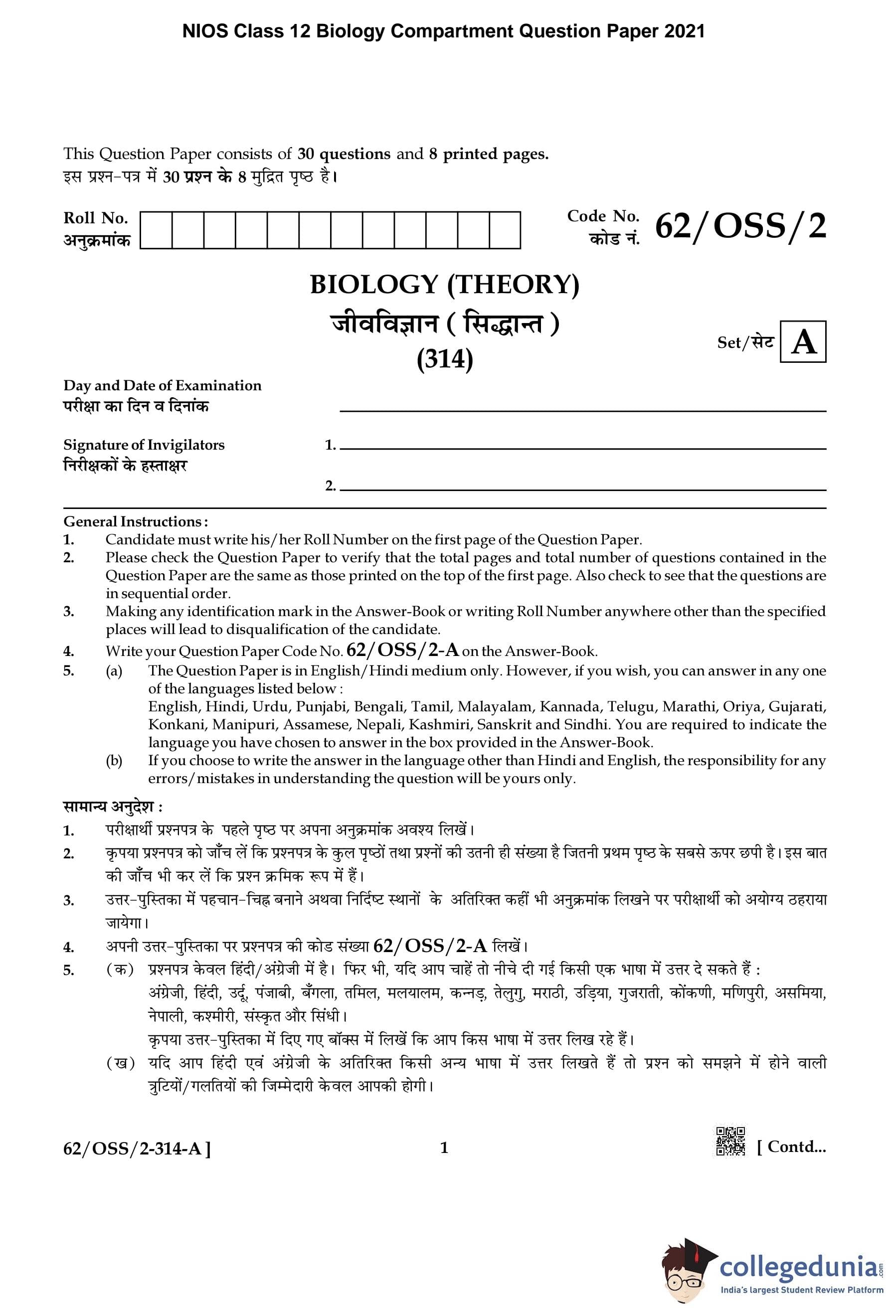 | NIOS Class 12 Biology Question Paper 2021 PDF | NIOS Class 12 Biology Answer Key 2021 PDF |