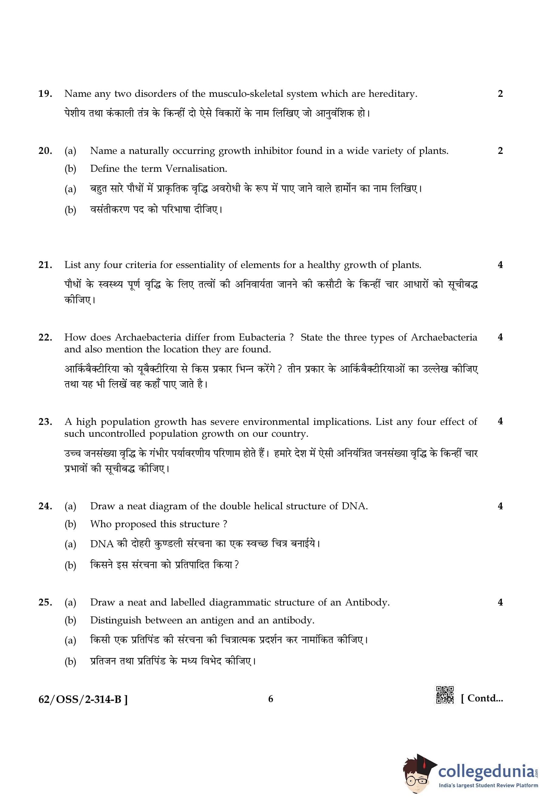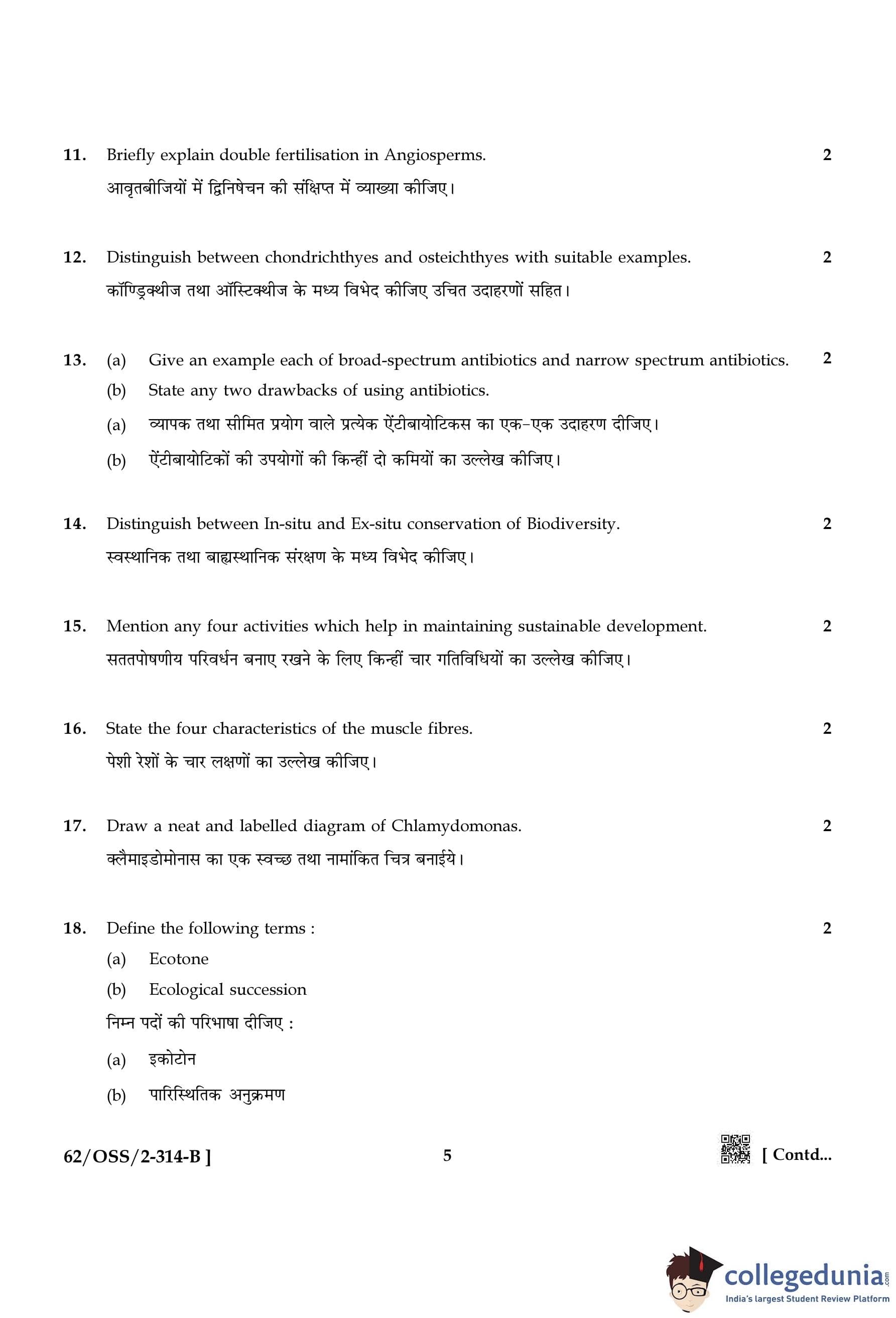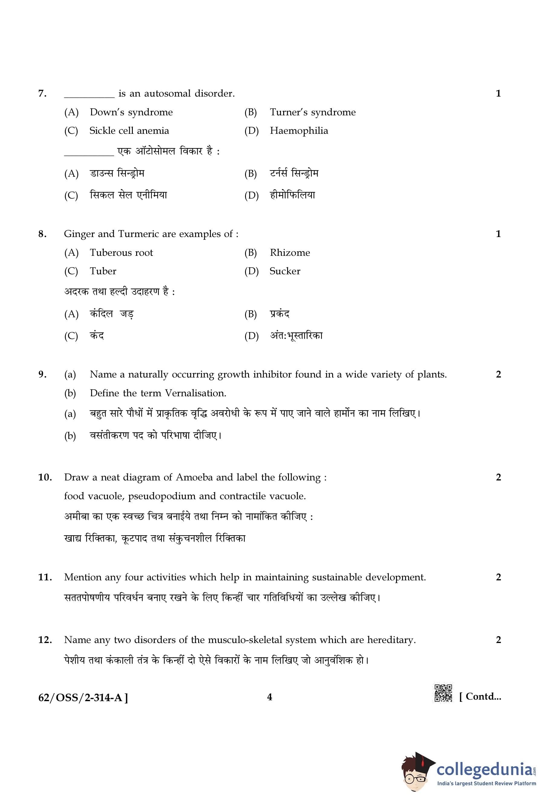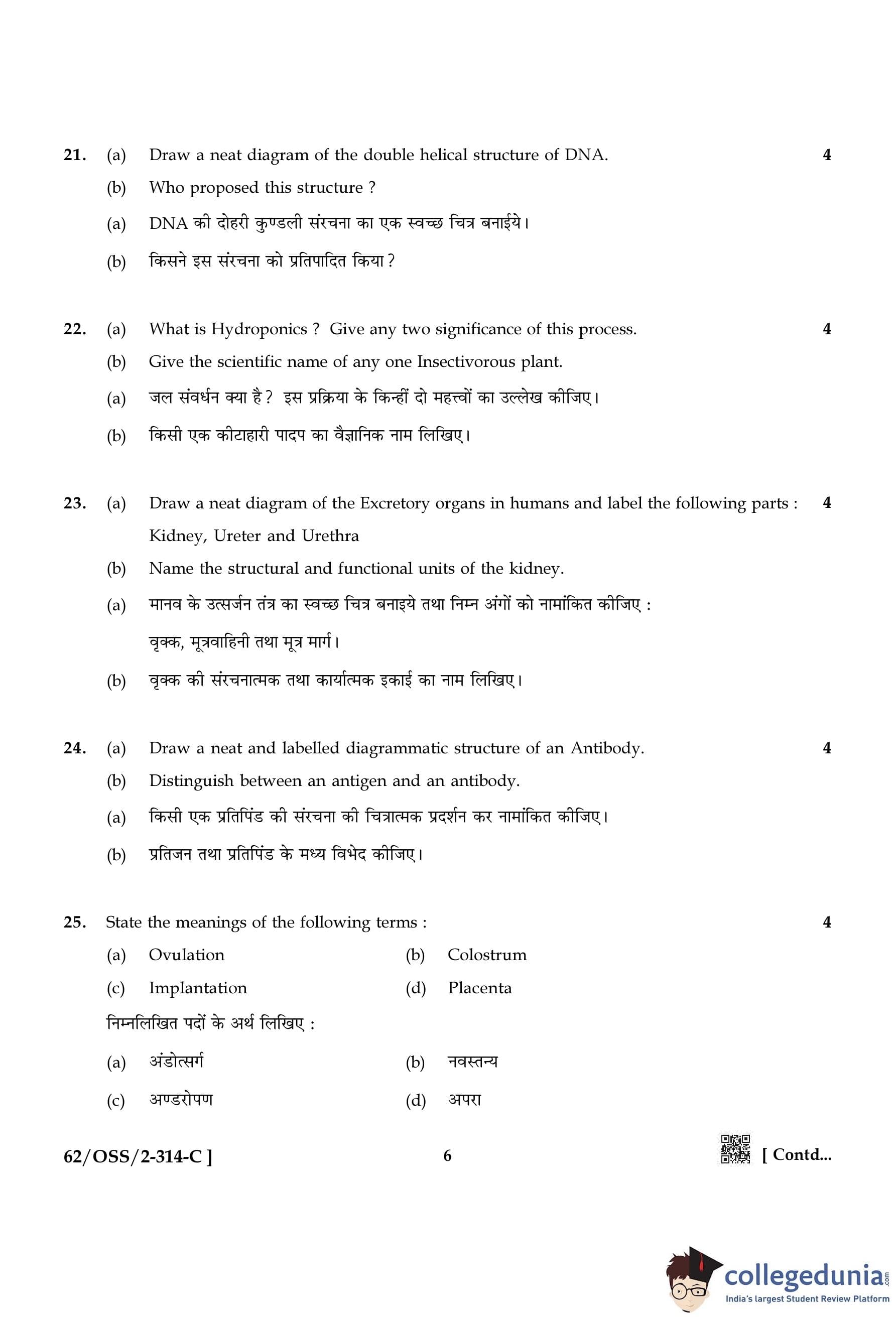 NIOS Class 12 Biology Compartment Question Paper 2021 with Answer Key
