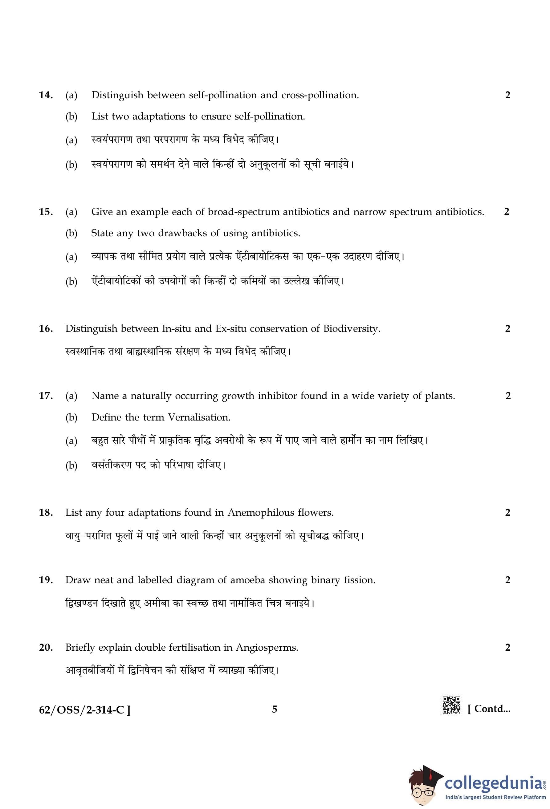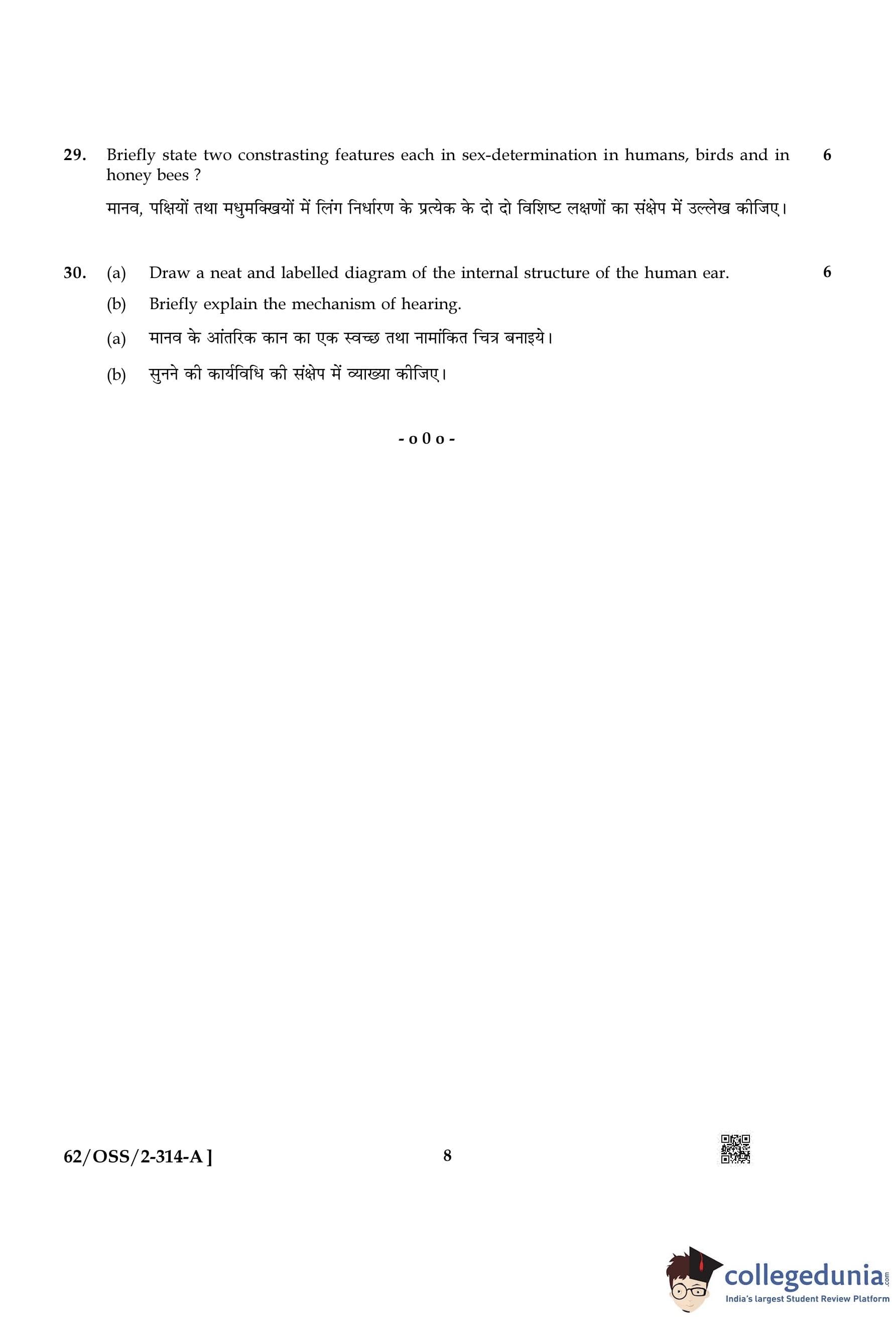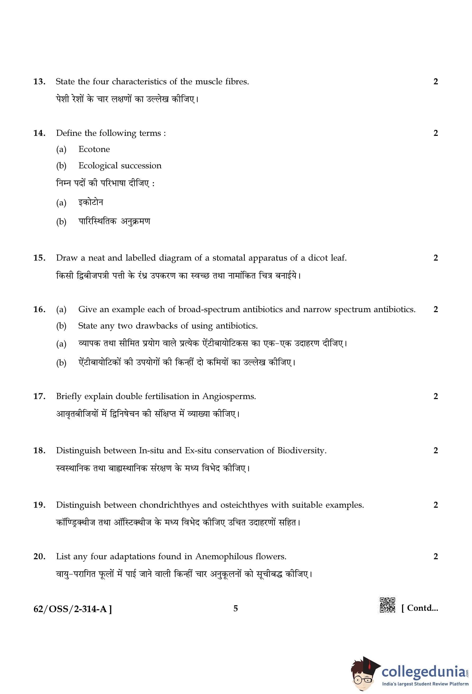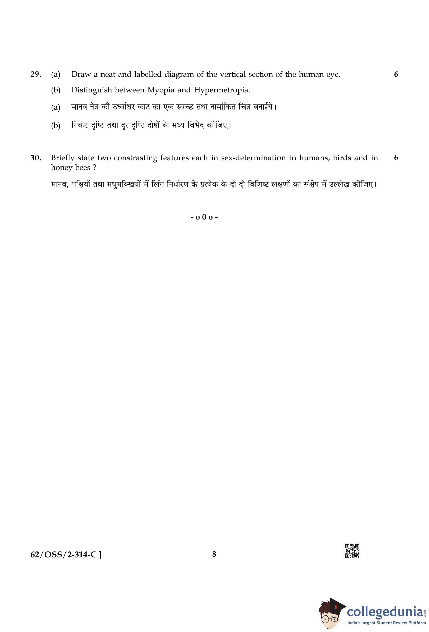 NIOS Class 12 Biology Compartment Question Paper 2021 with Answer Key