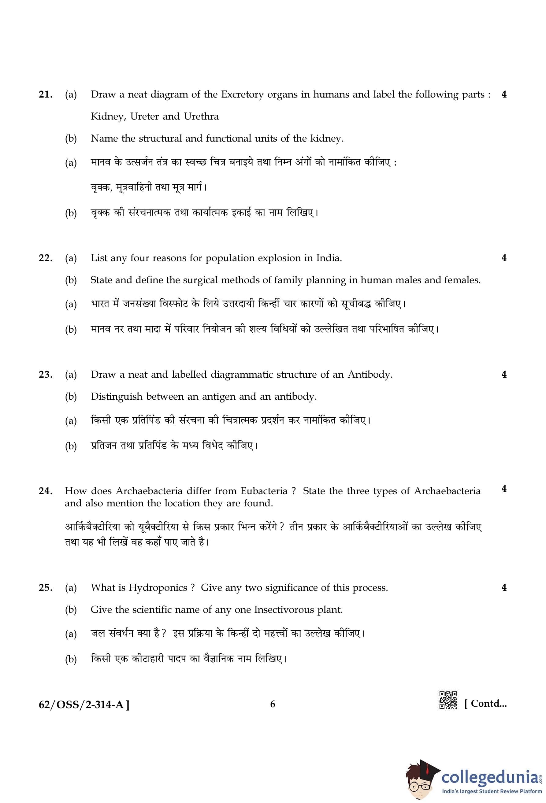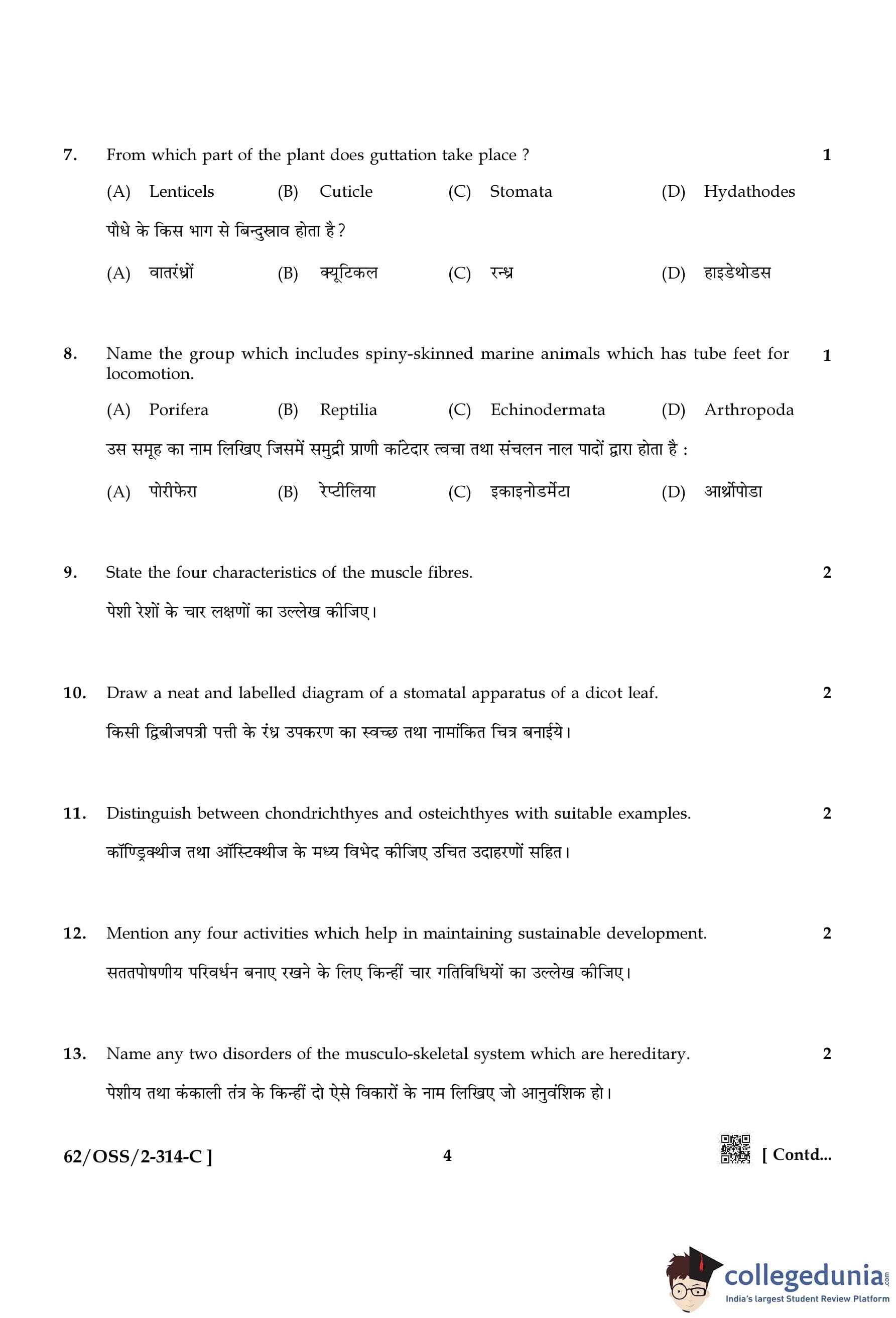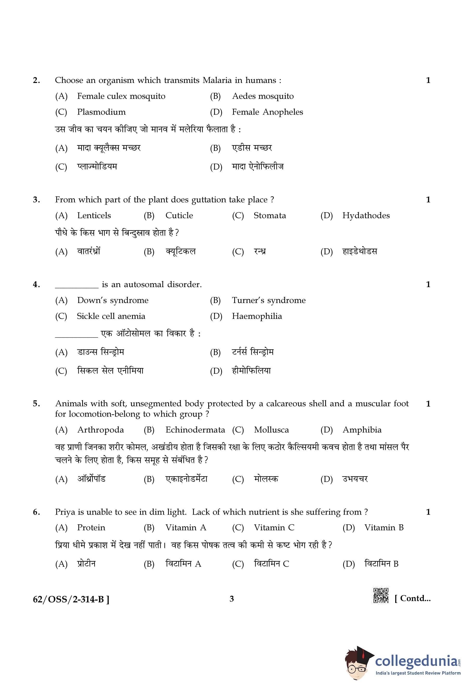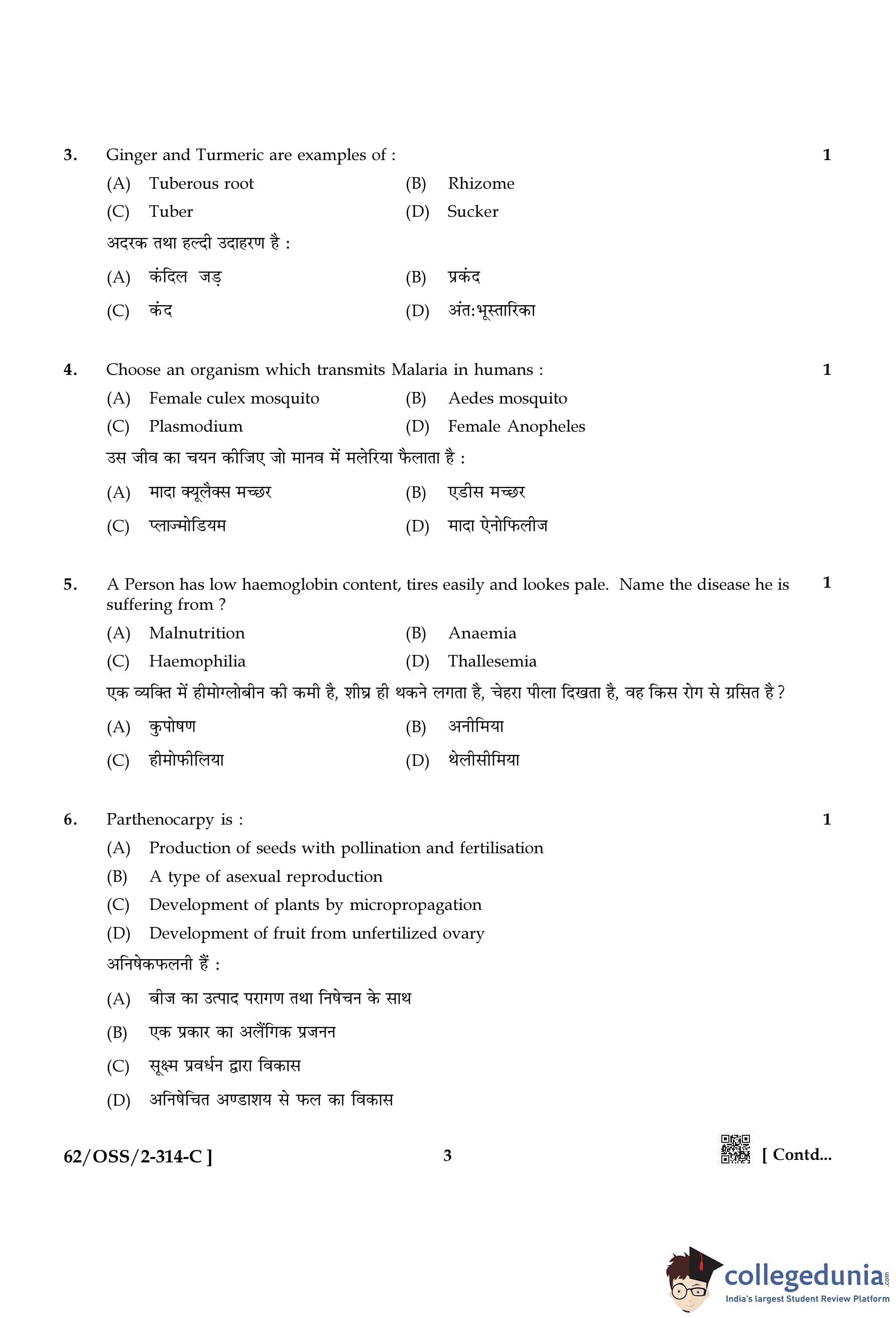 NIOS Class 12 Biology Compartment Question Paper 2021 with Answer Key