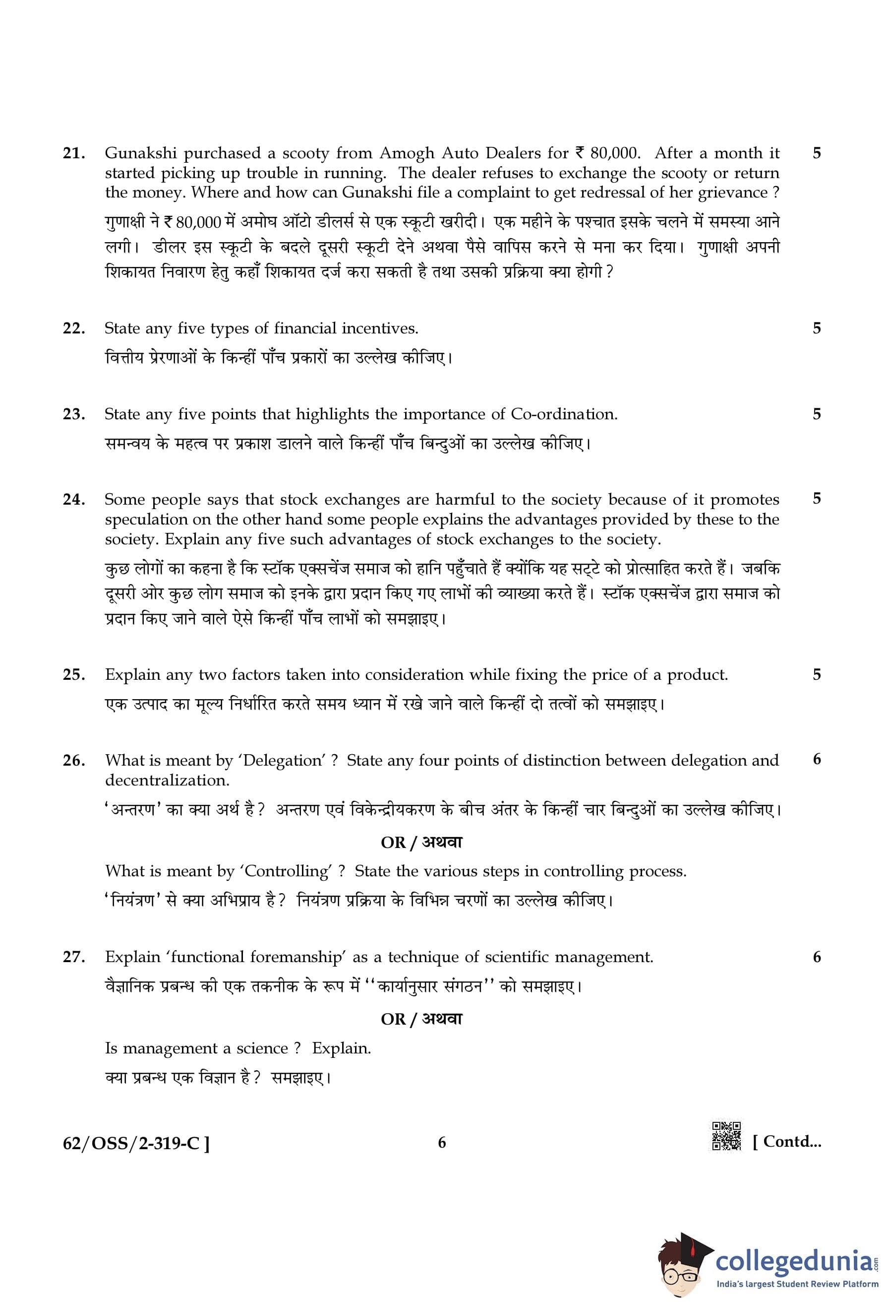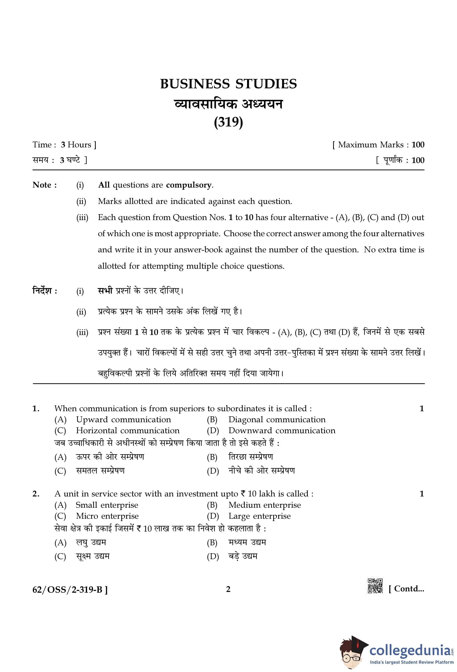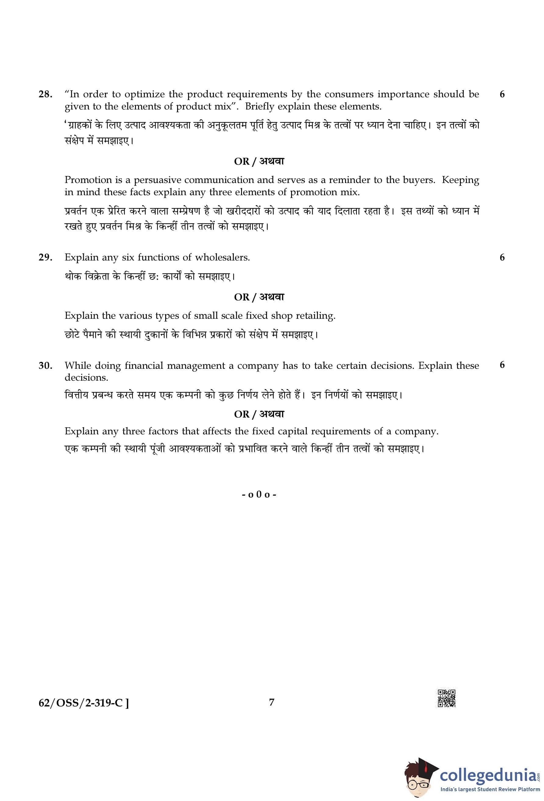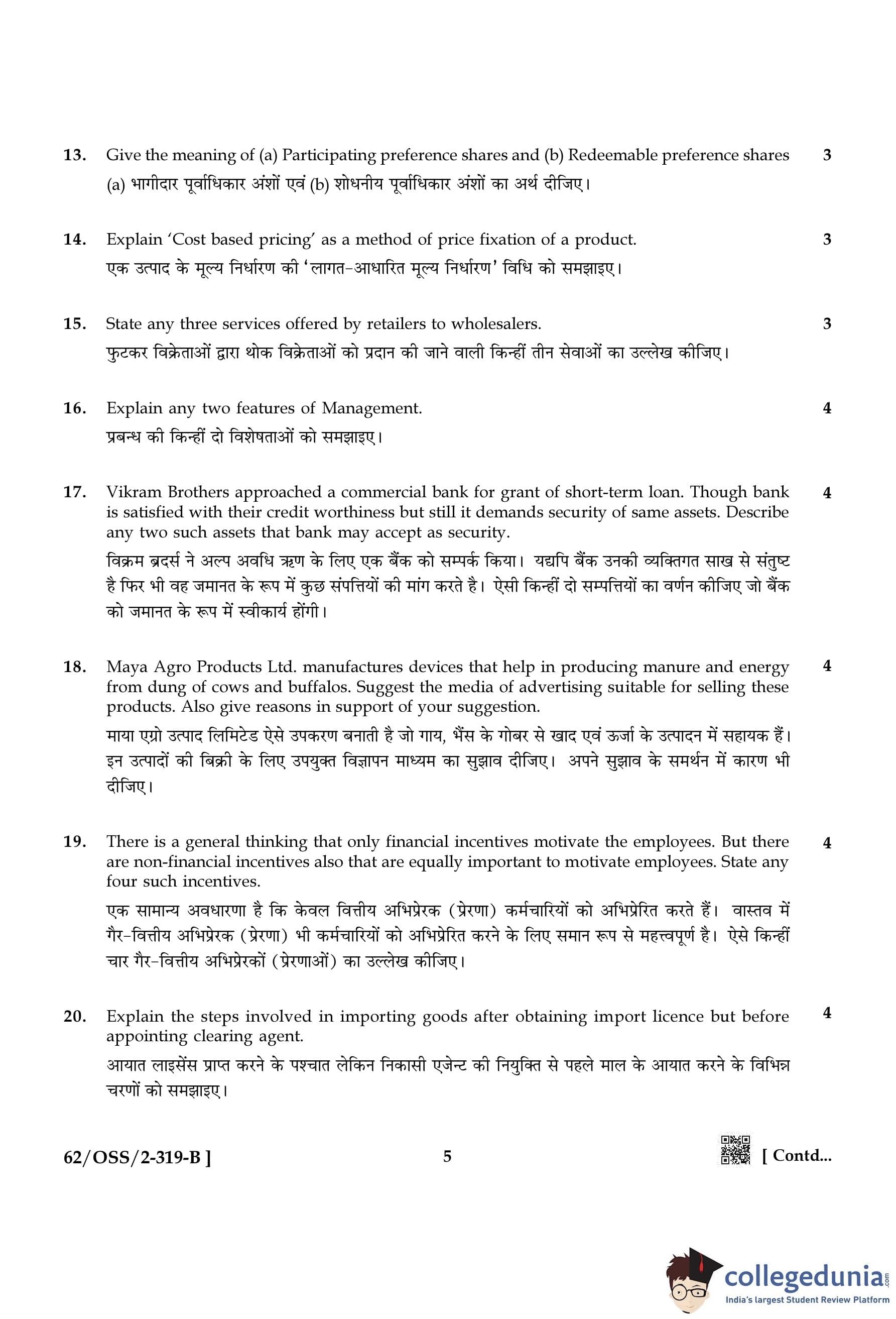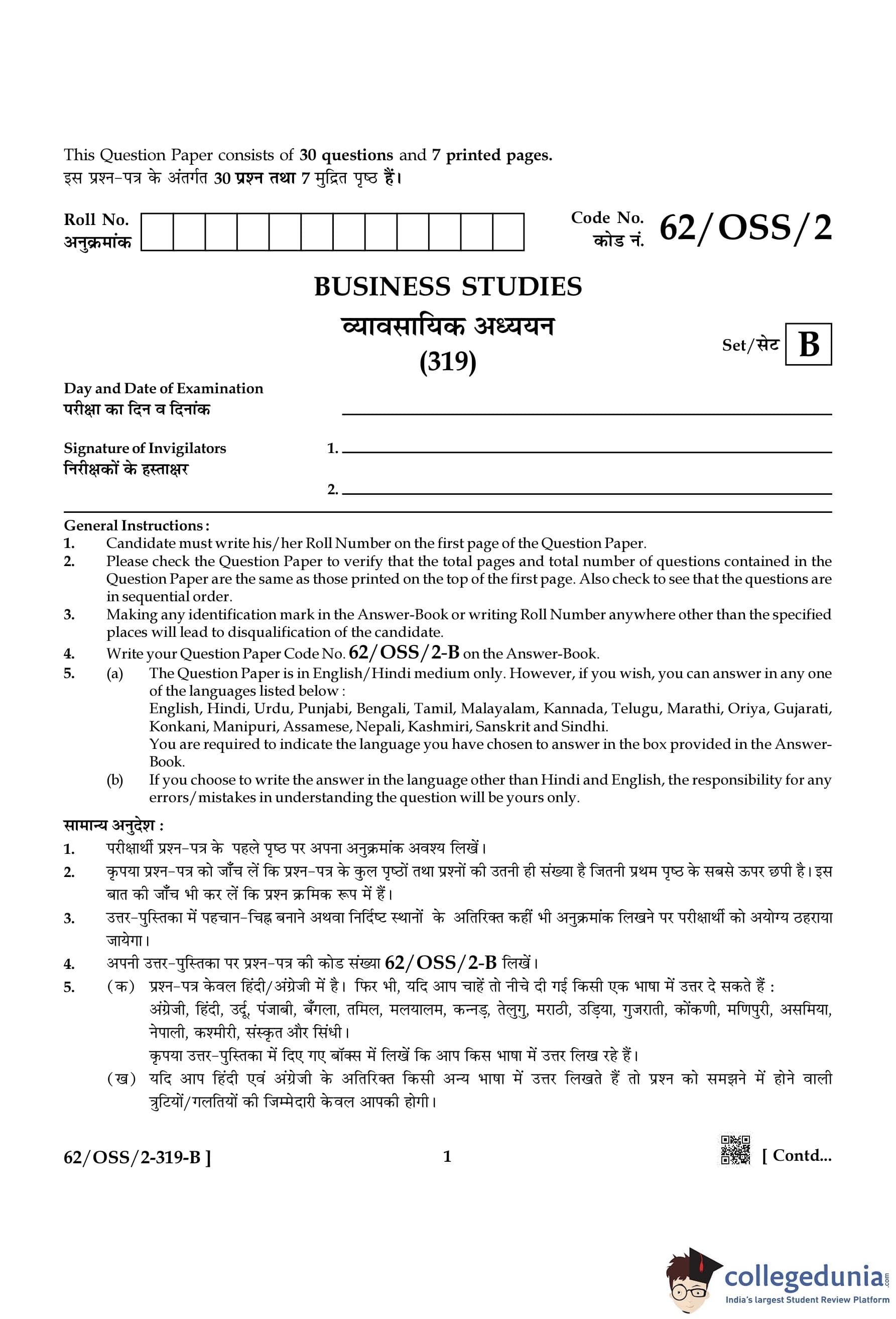 NIOS Class 12 Business Studies Compartment Question Paper 2021 with Answer Key