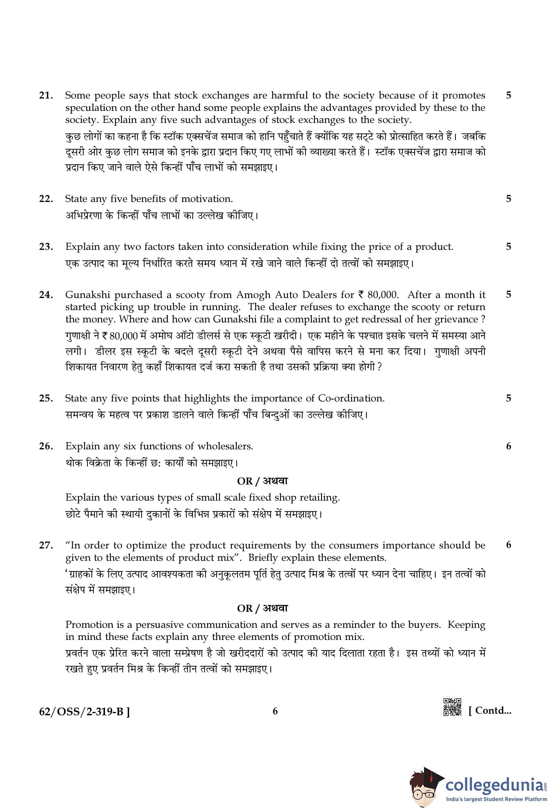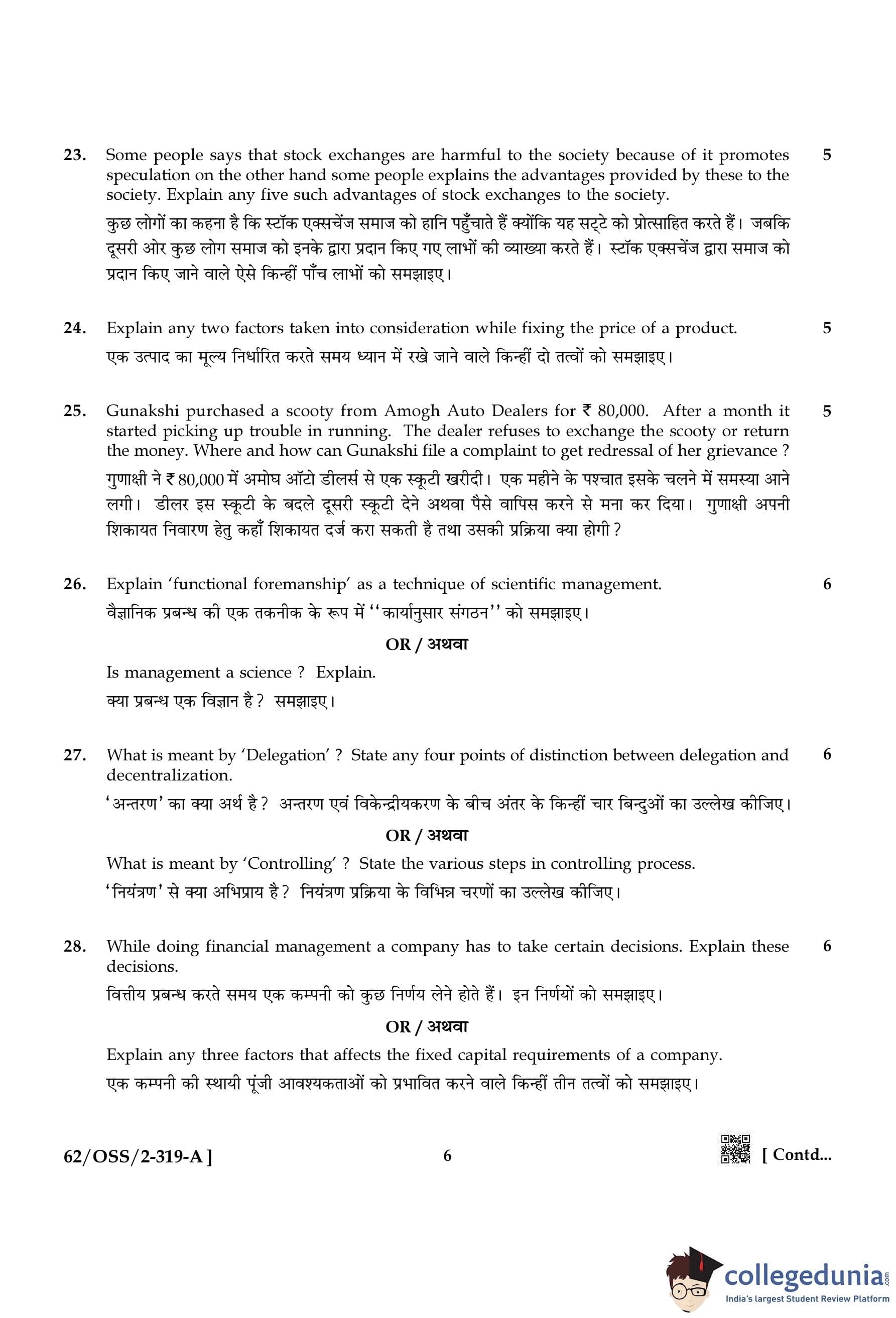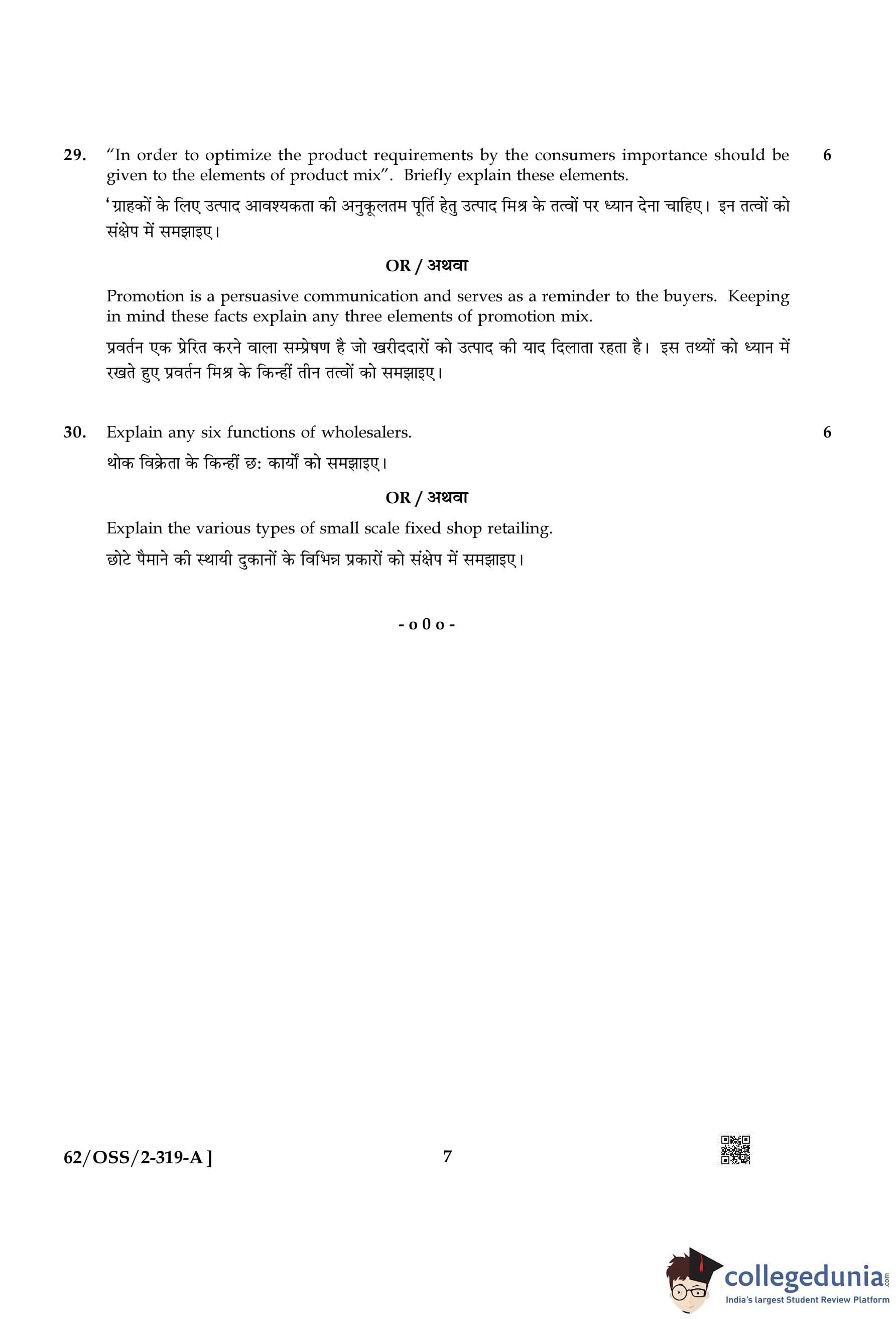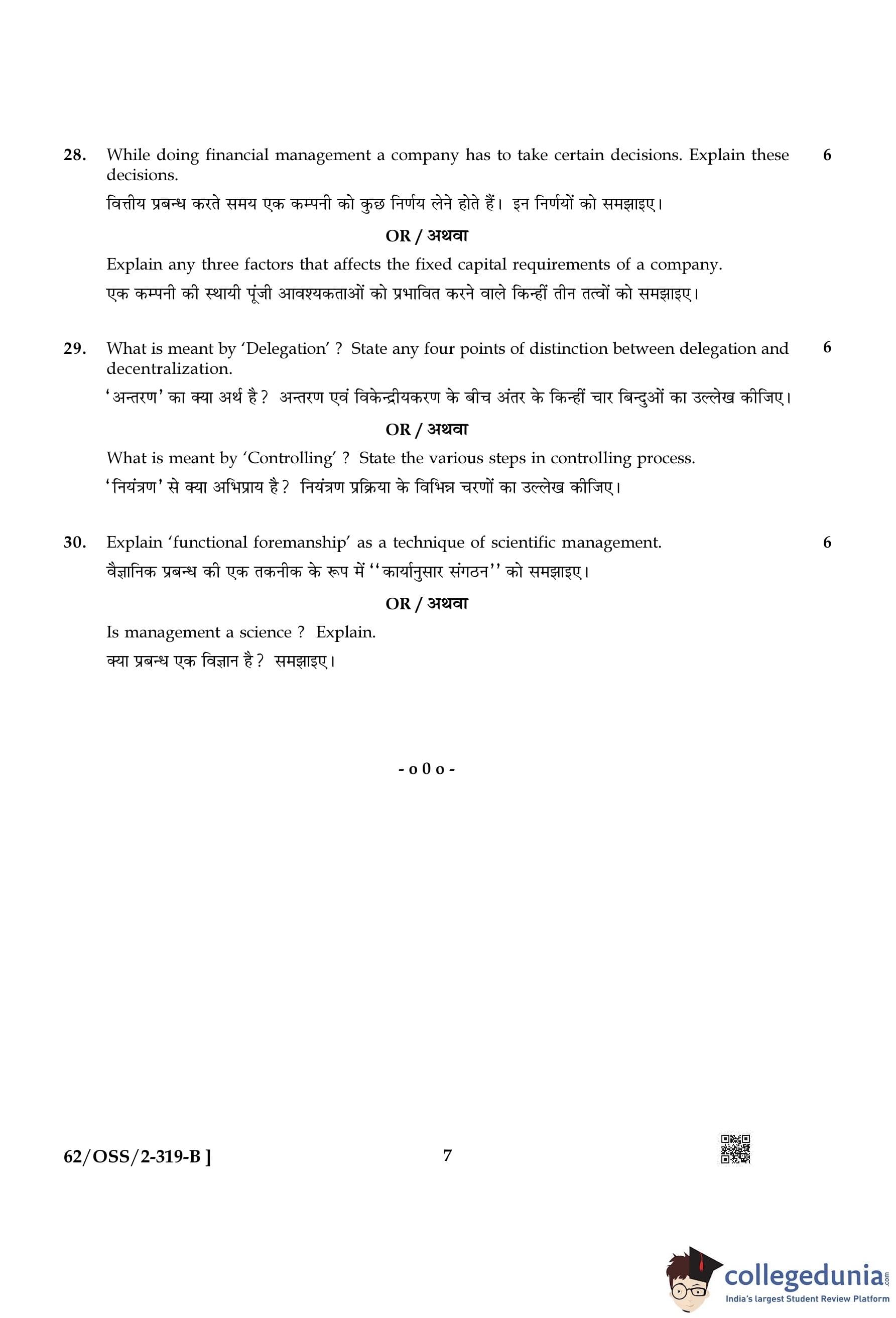 NIOS Class 12 Business Studies Compartment Question Paper 2021 with Answer Key